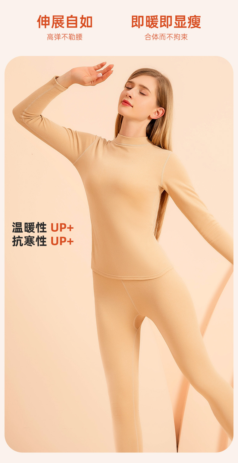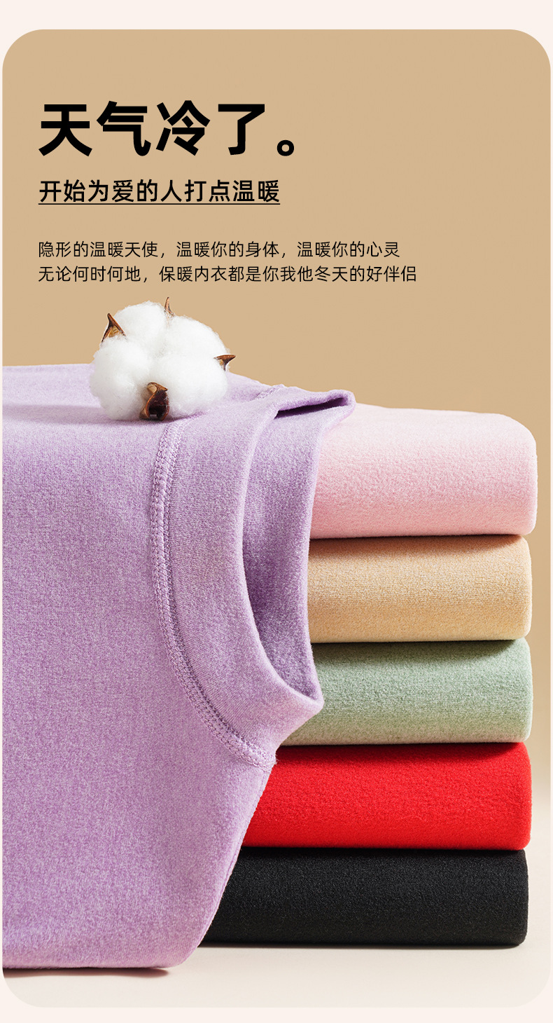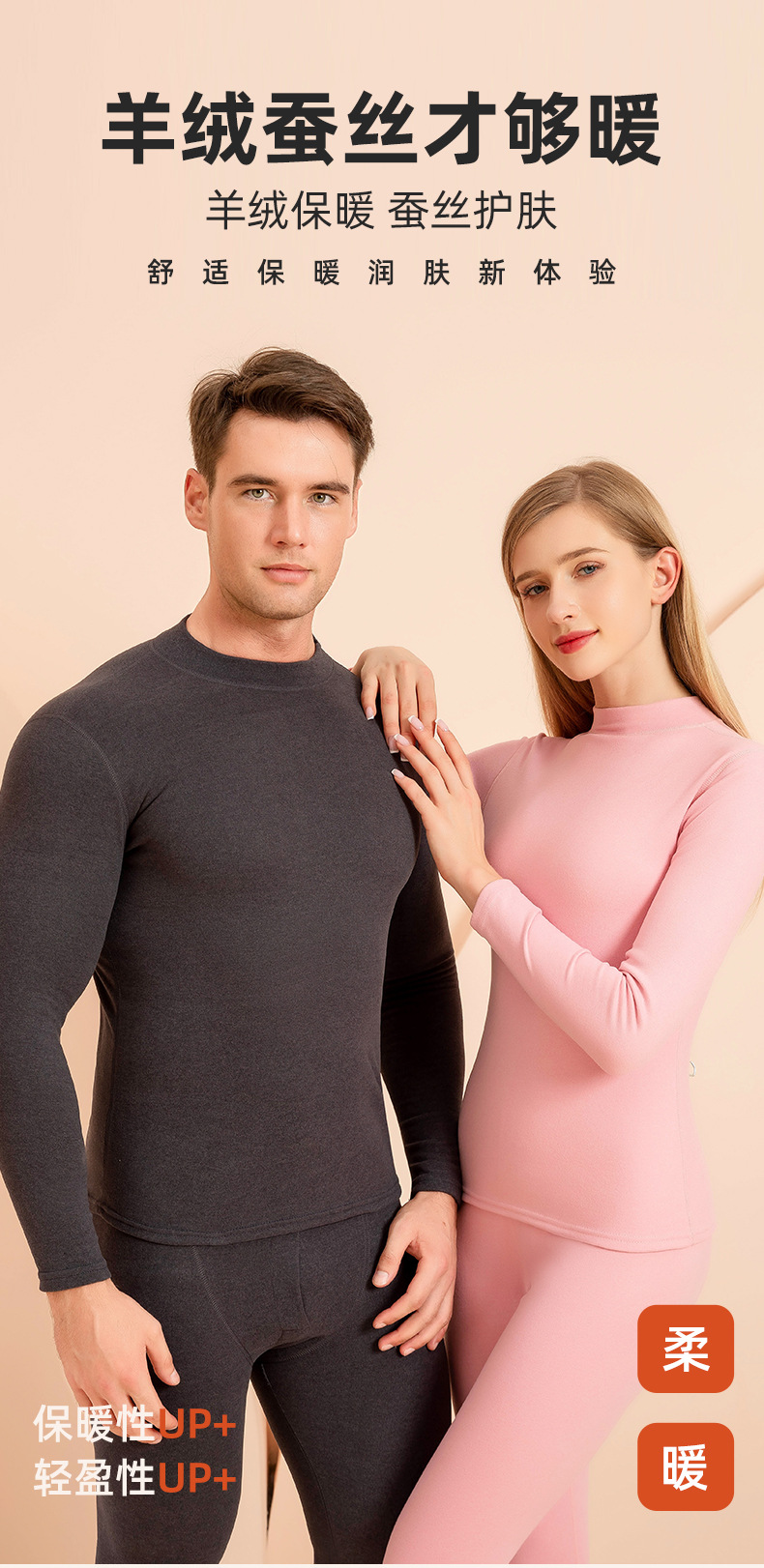 【限时特惠49.9/一套❗️羊绒蚕丝中领保暖套装】羊绒蚕丝才够暖,舒适保暖润肤新体验,轻薄修身无痕舒适,发热磨毛打底内衣,德绒加厚薄绒秋衣秋裤L