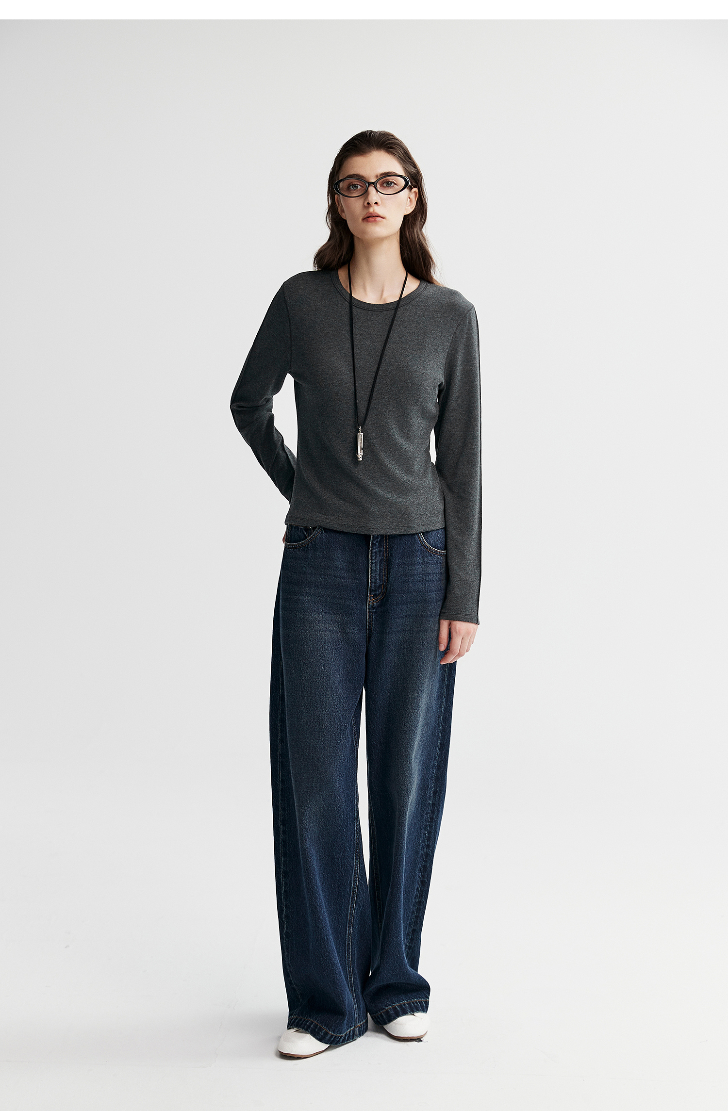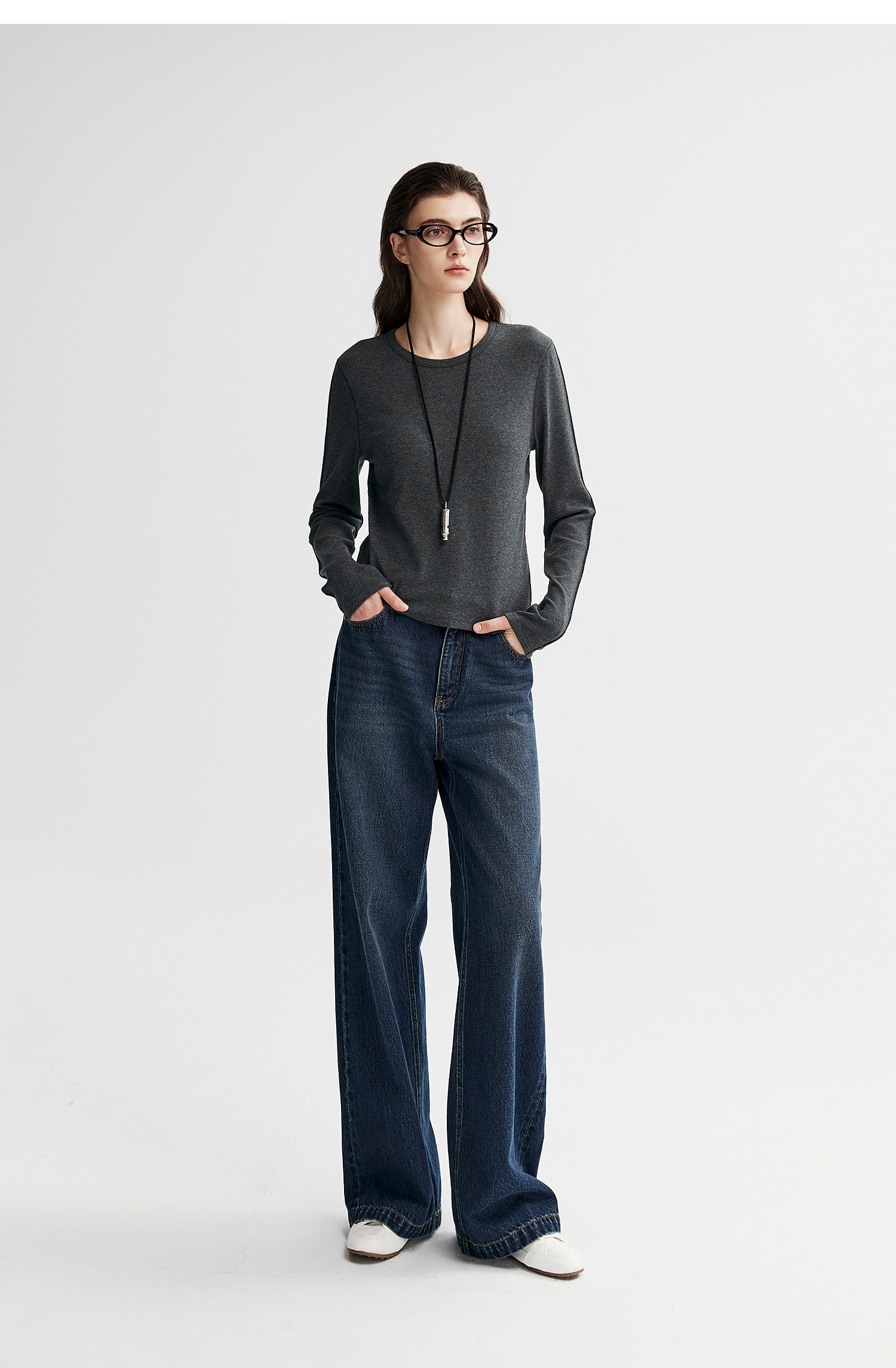 棉仓356601003-奶霜棉100%长绒棉打底衫女24秋微宽松高阶航海刺绣内搭T恤女