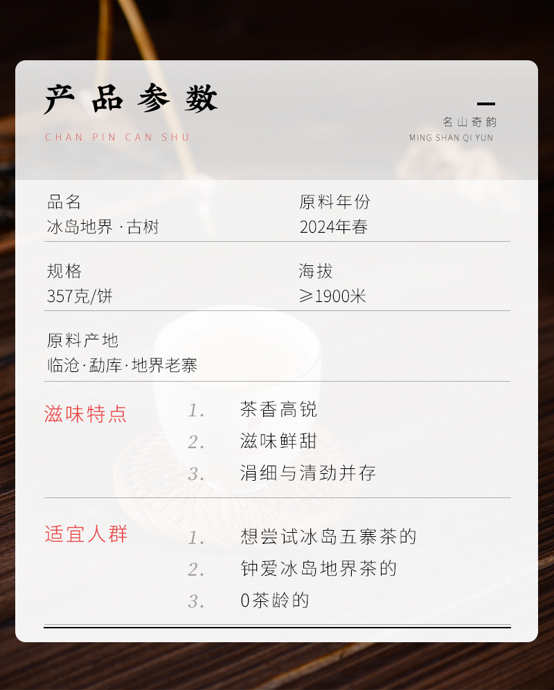 【买7送1】2024《冰岛地界》古树纯料春茶 357克*1饼 生茶
