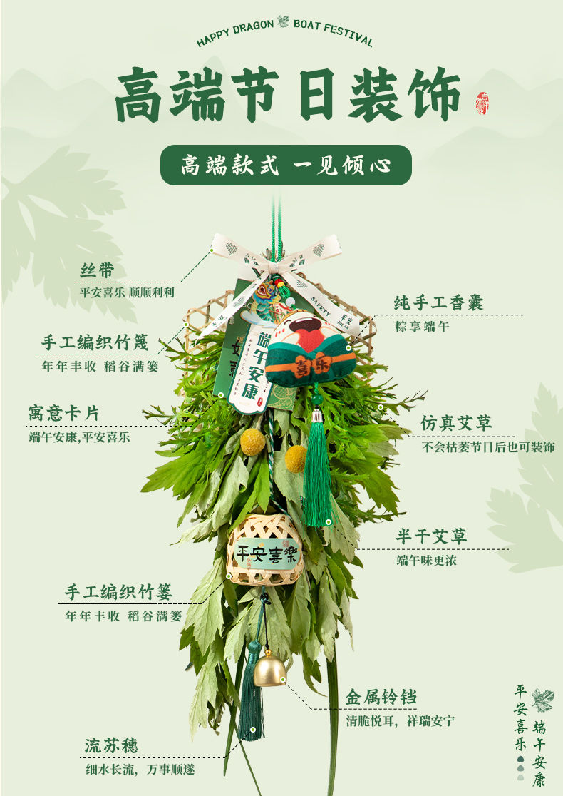 端午节门挂艾草花束diy门口挂饰香包香囊挂件礼品装饰场景布置
