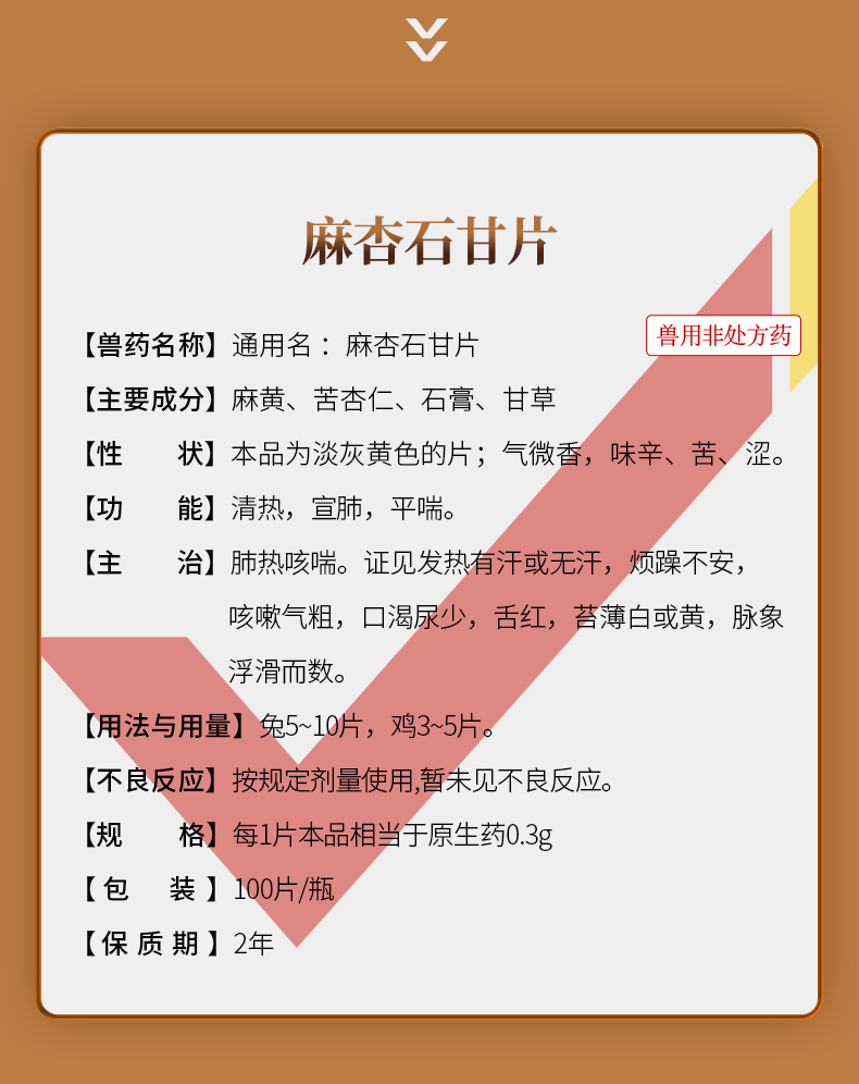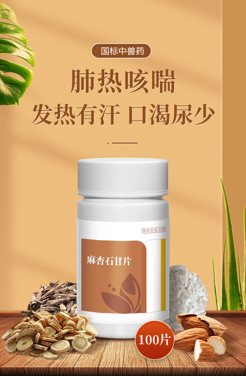 华畜兽用0.3g麻杏石甘片猪用牛羊鸡鸭鹅药肺炎咳喘清肺止咳呼吸道