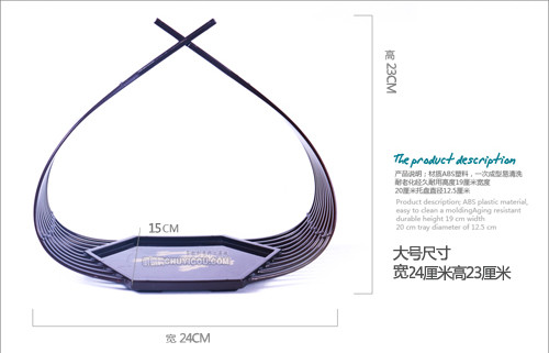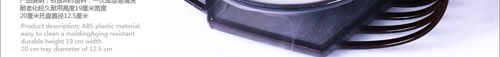 产品说明:ABS食品级塑料小号:高度19厘米/宽度20厘米/托盘直径12.5厘米,大号:高23厘米,宽度24,托盘直接15厘米。