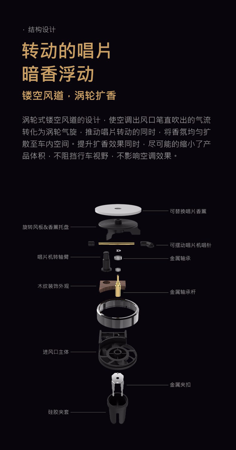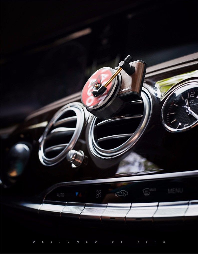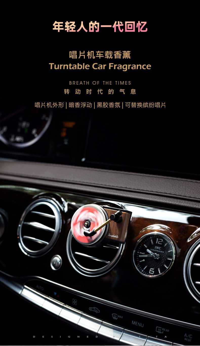 出风口车载香薰周杰伦汽车内饰摆件旋转复古唱片机持久香水香片