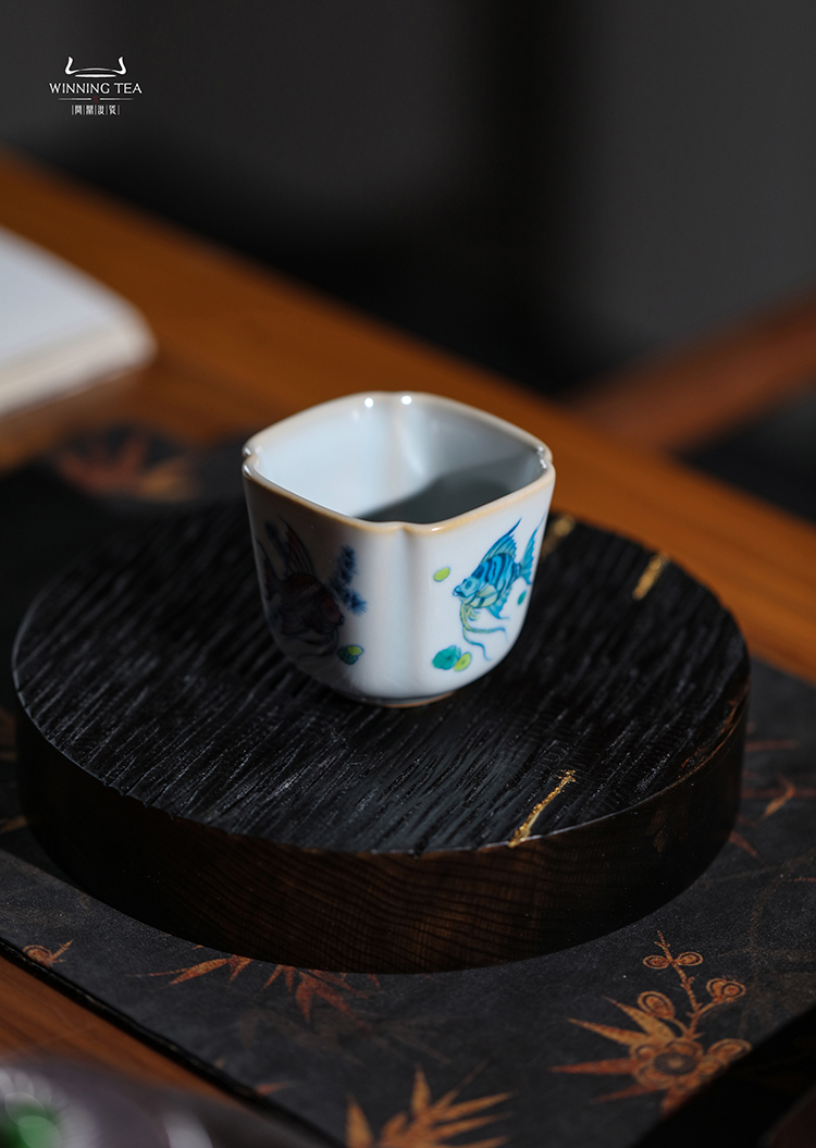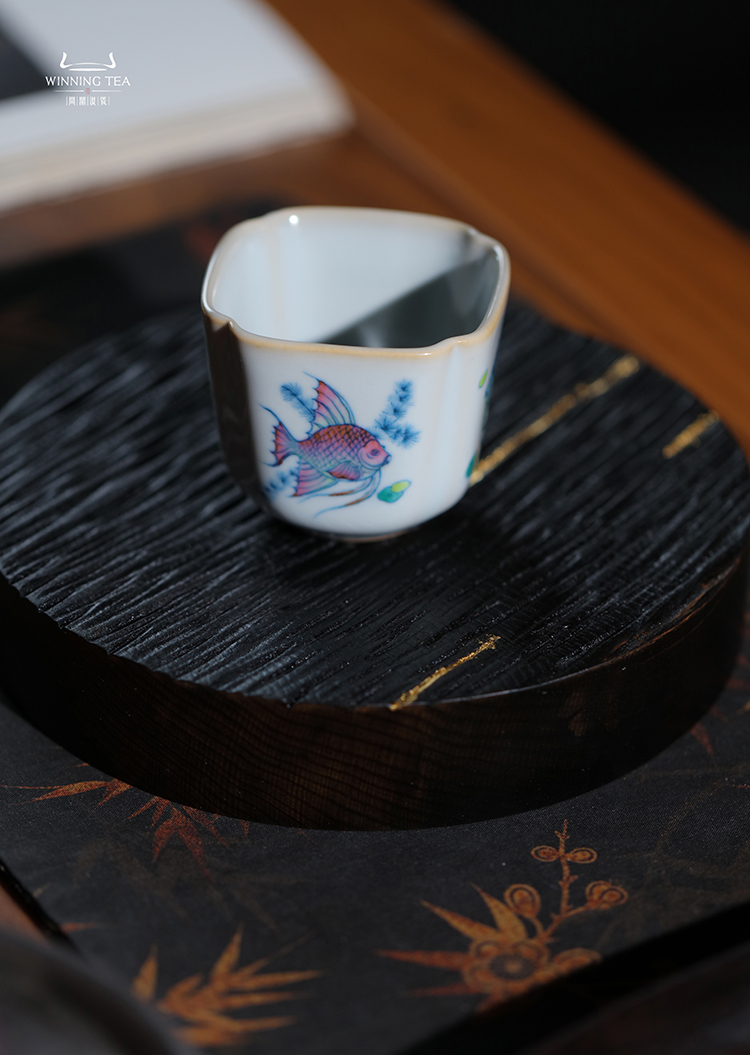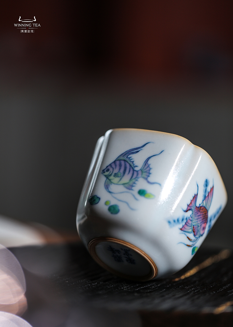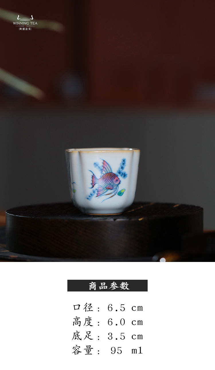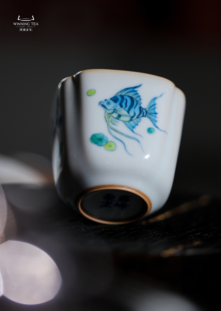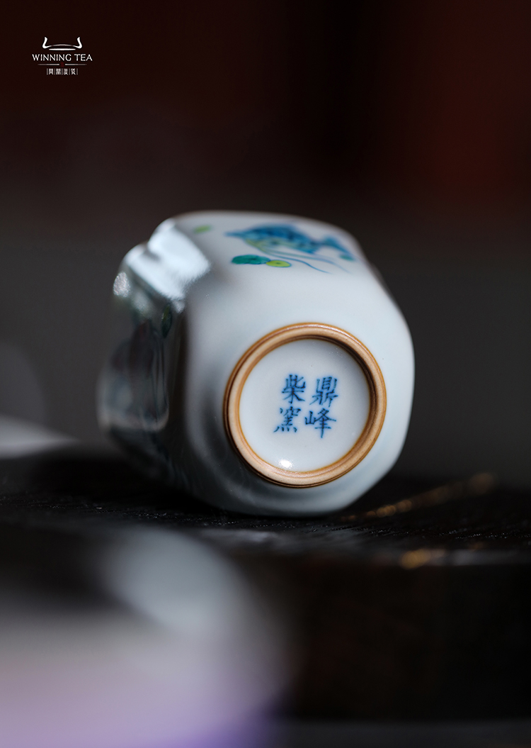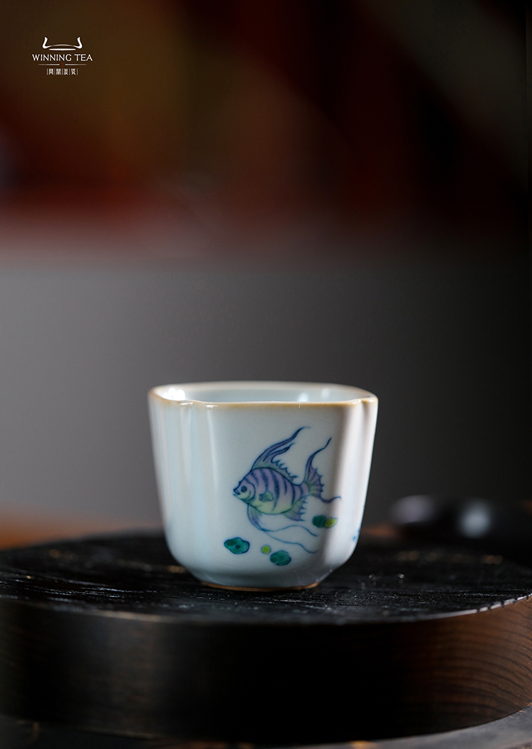 问鼎汝瓷鼎峰柴窑天青高四喜杯(鱼跃清波)