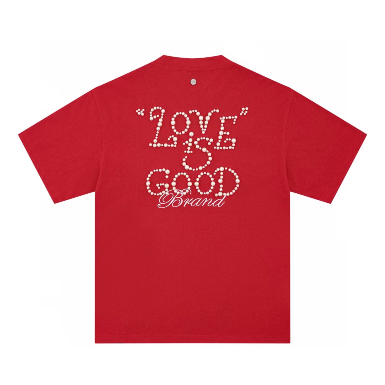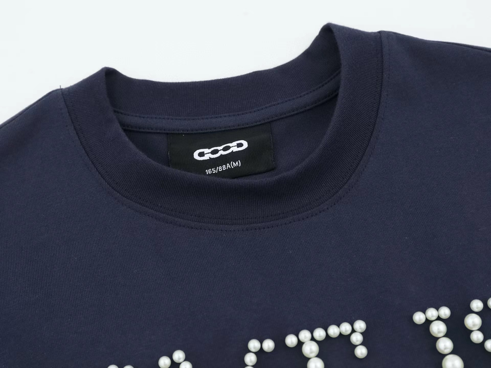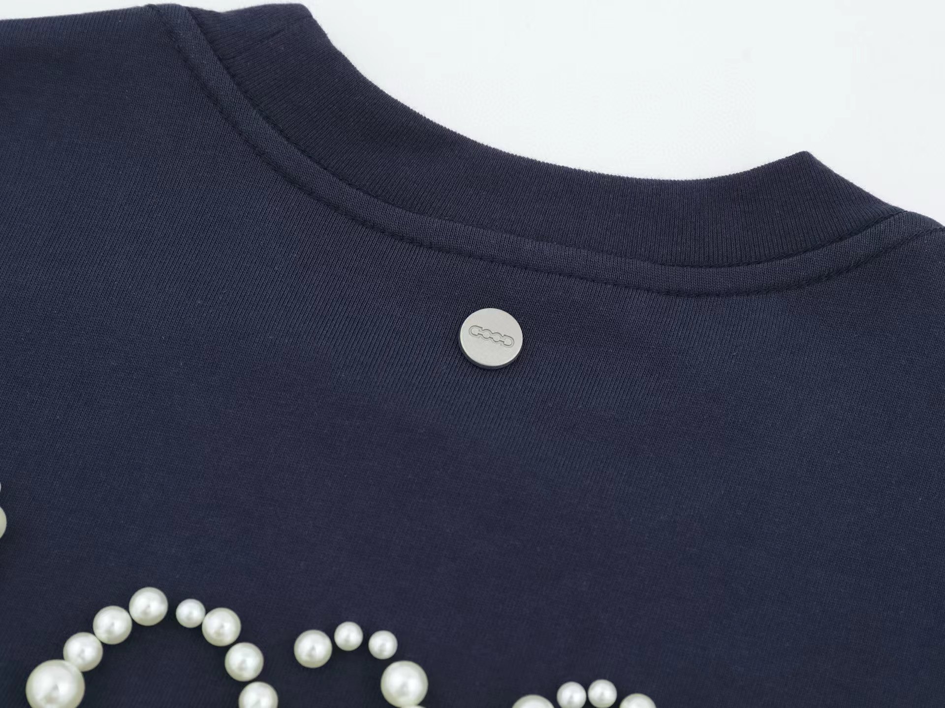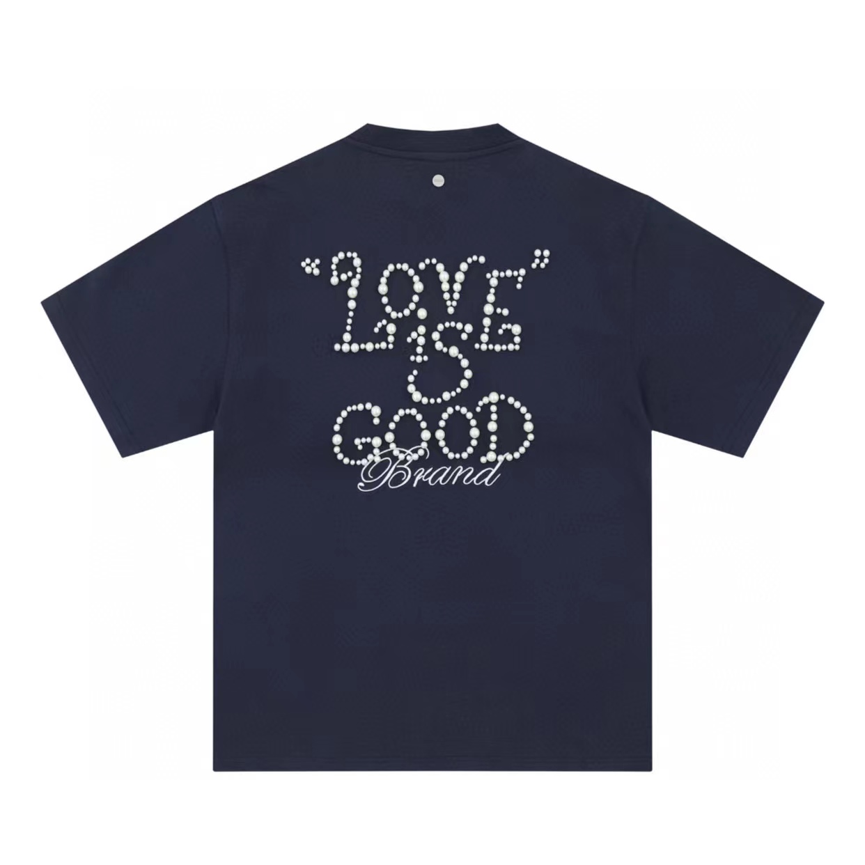 珍珠标语字母情侣圆领短袖T恤 采用32支紧密双纱280g面料 独特剪裁宽松显瘦 定织定染同版紧密螺纹~