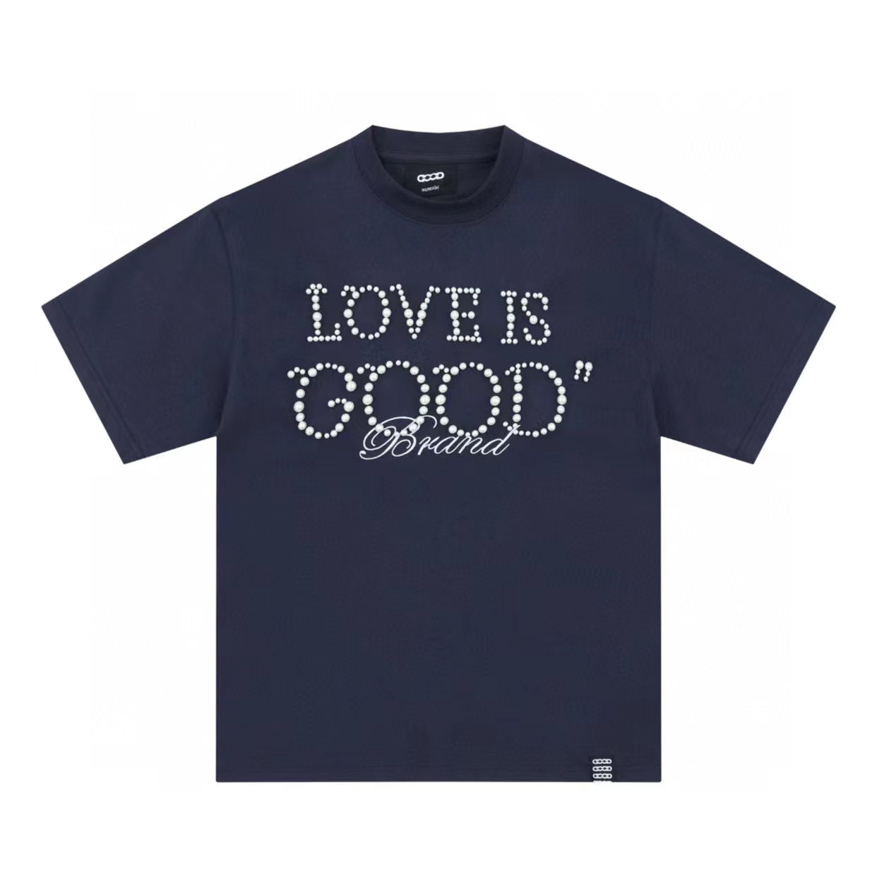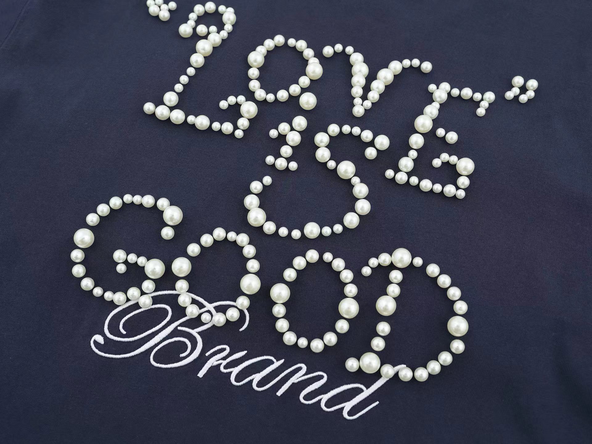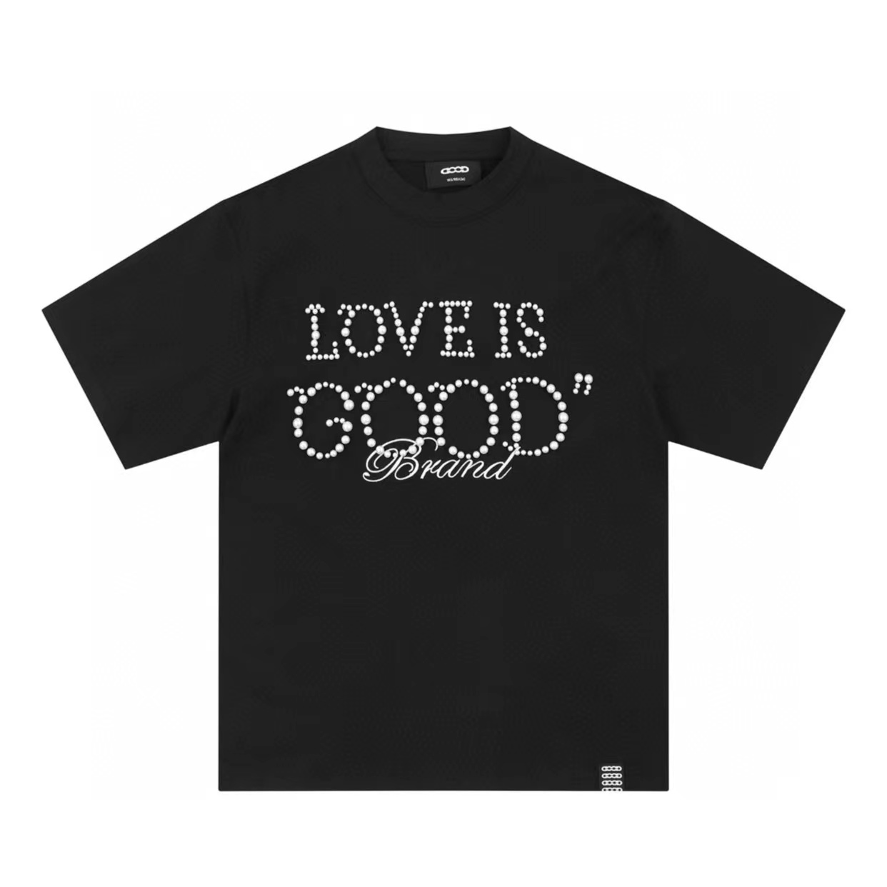 珍珠标语字母情侣圆领短袖T恤 采用32支紧密双纱280g面料 独特剪裁宽松显瘦 定织定染同版紧密螺纹~