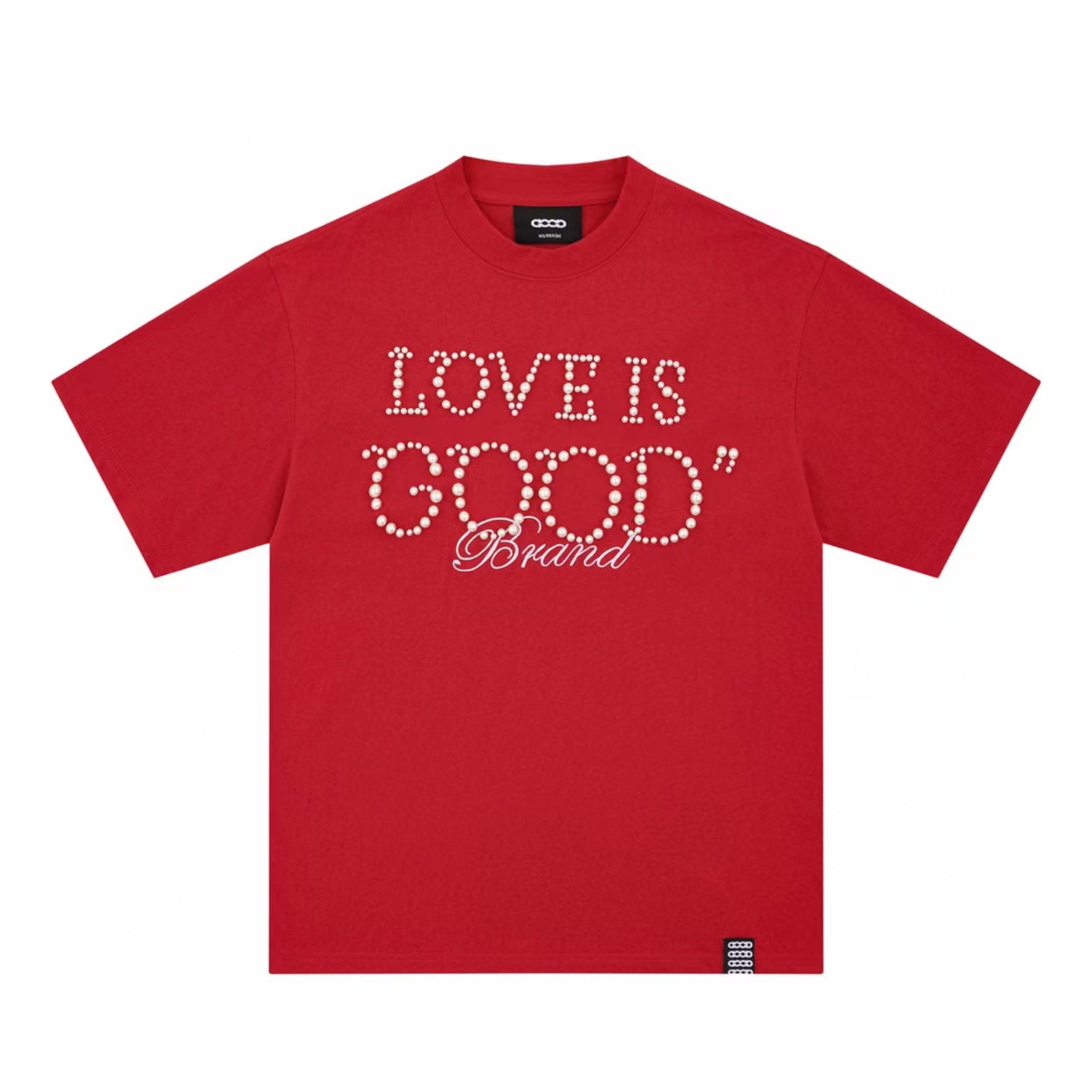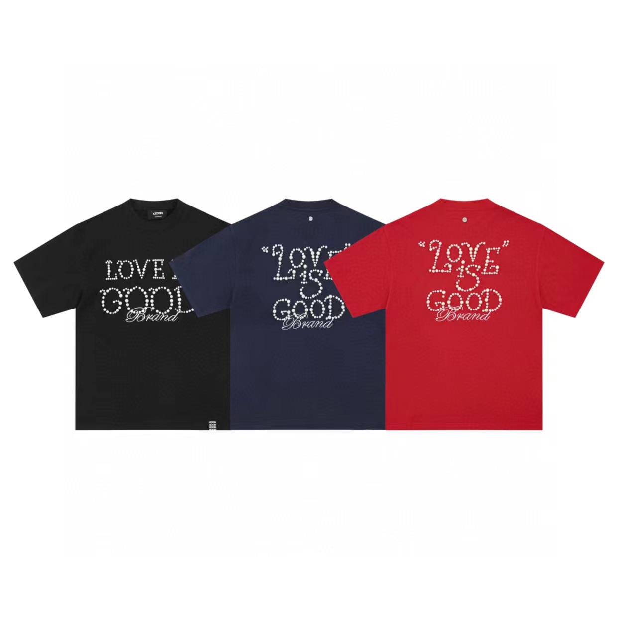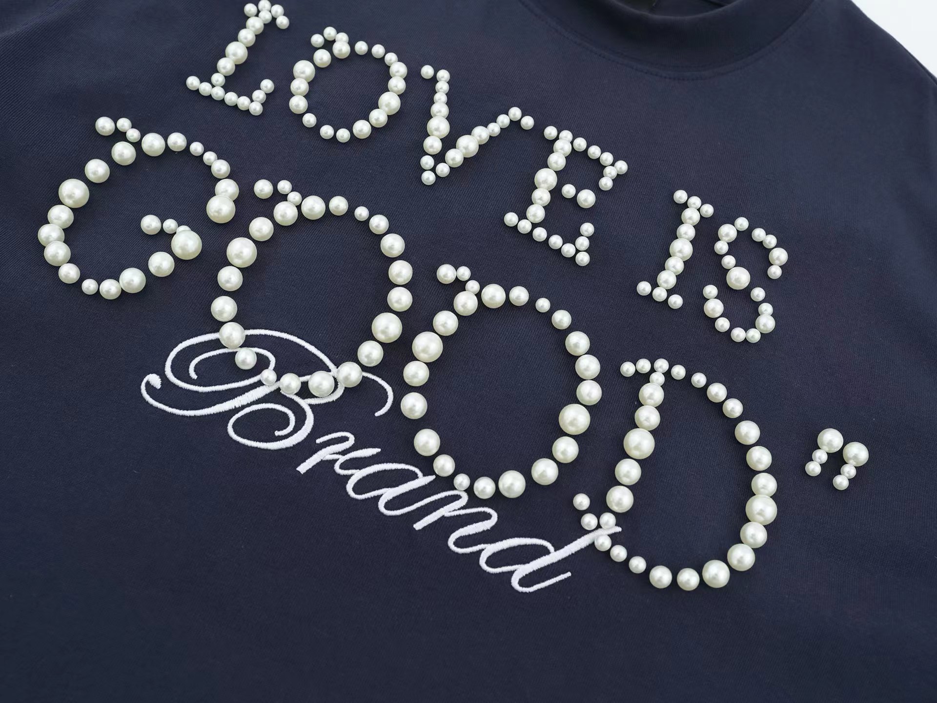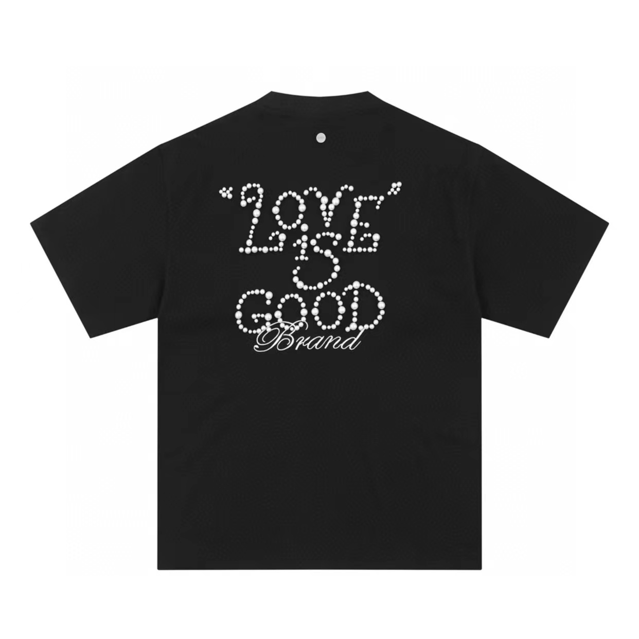 珍珠标语字母情侣圆领短袖T恤 采用32支紧密双纱280g面料 独特剪裁宽松显瘦 定织定染同版紧密螺纹~
