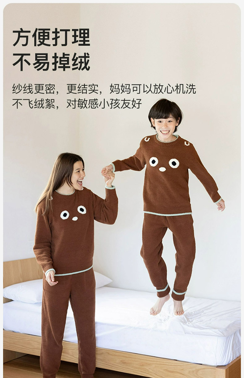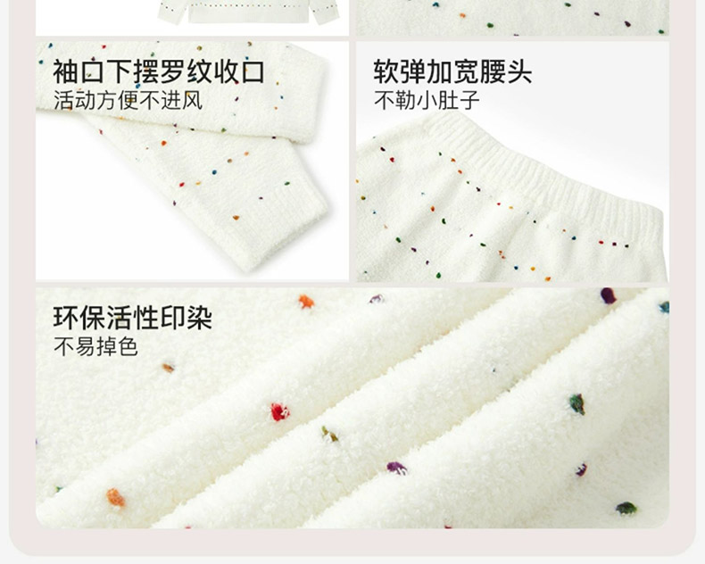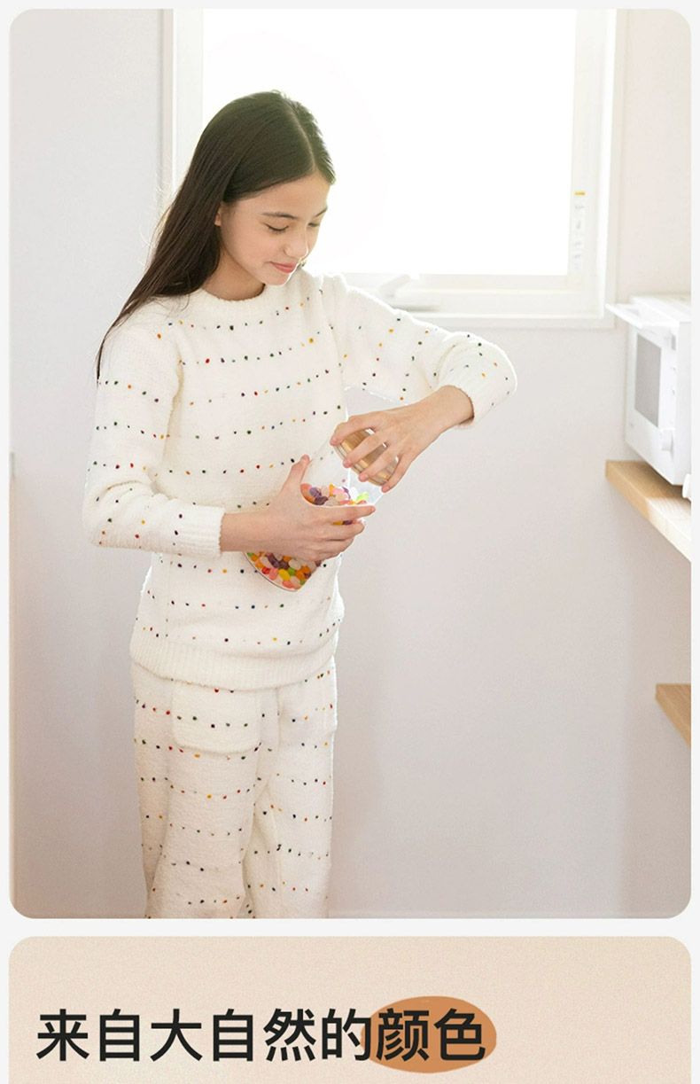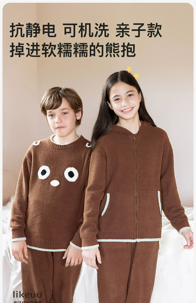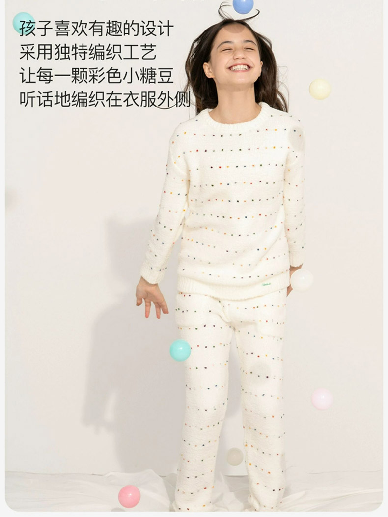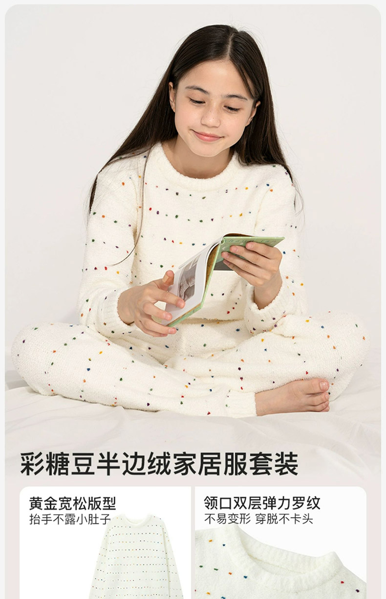 <有书独家>likeuu儿童家居服套装亲子款彩糖豆半边绒睡衣秋冬男女