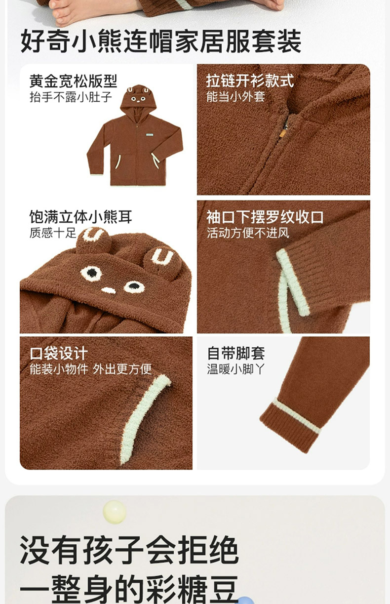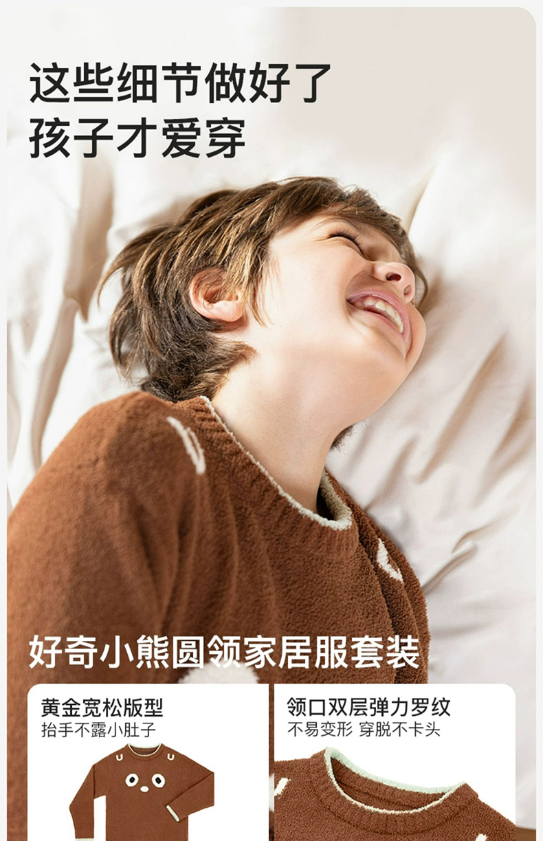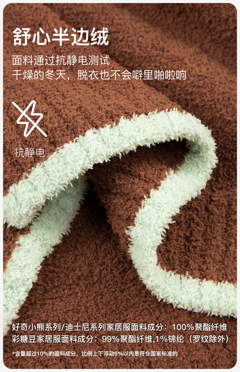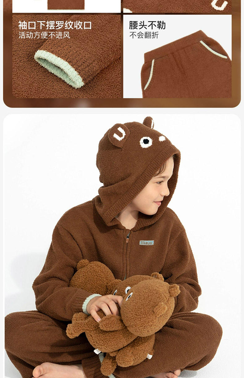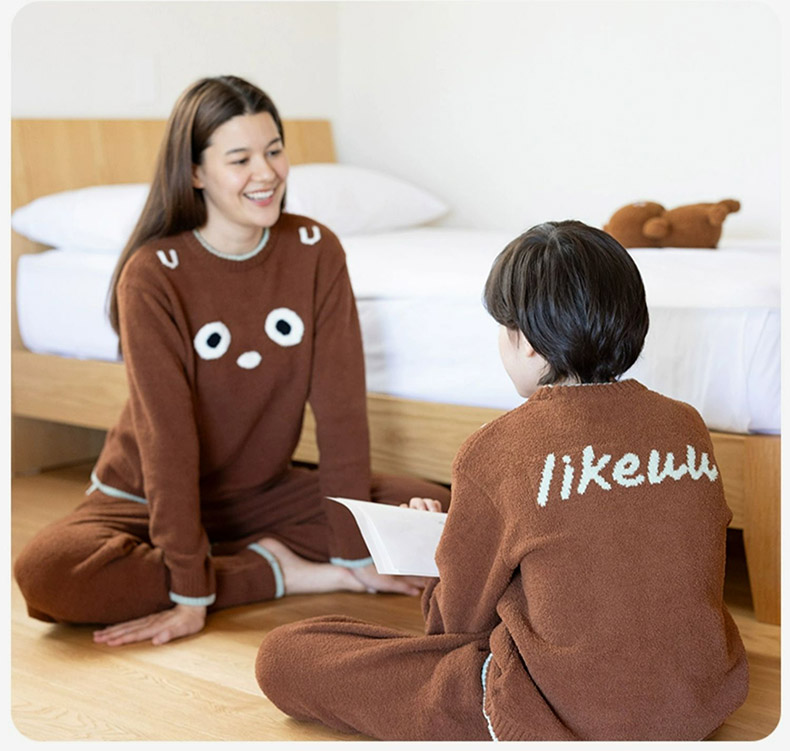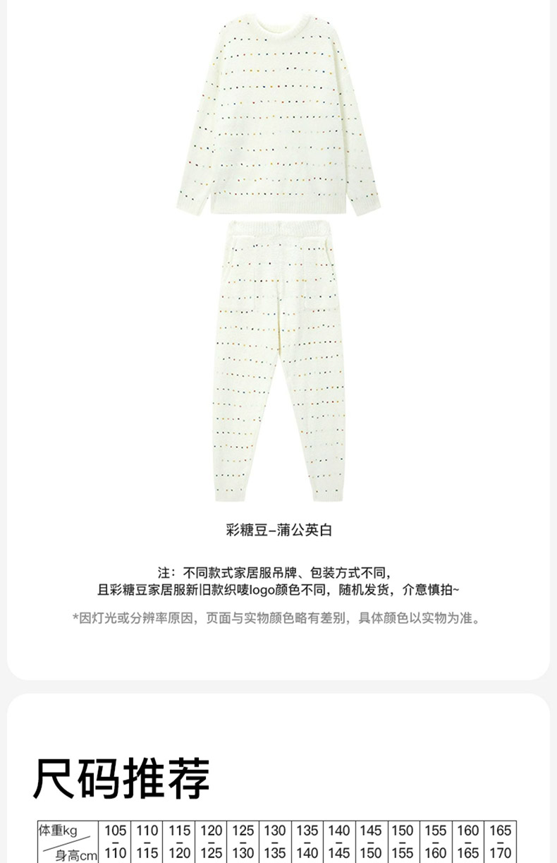 <有书独家>likeuu儿童家居服套装亲子款彩糖豆半边绒睡衣秋冬男女