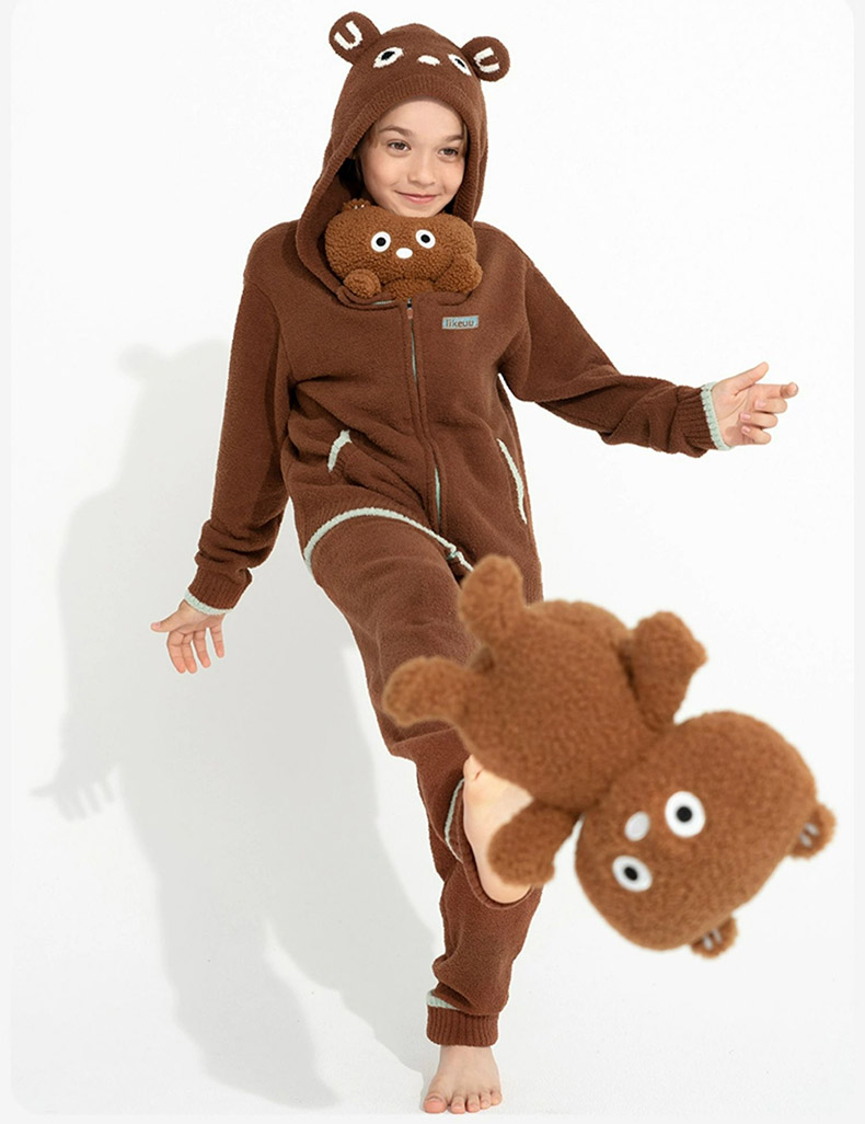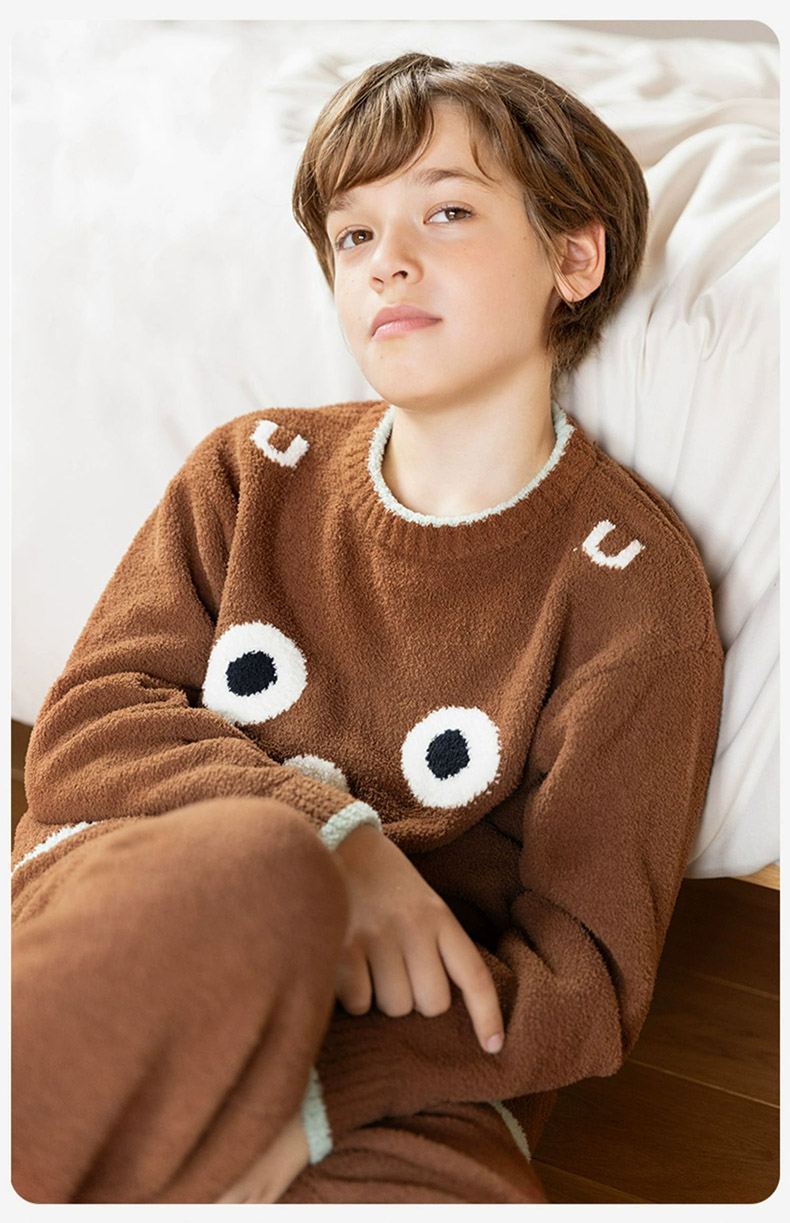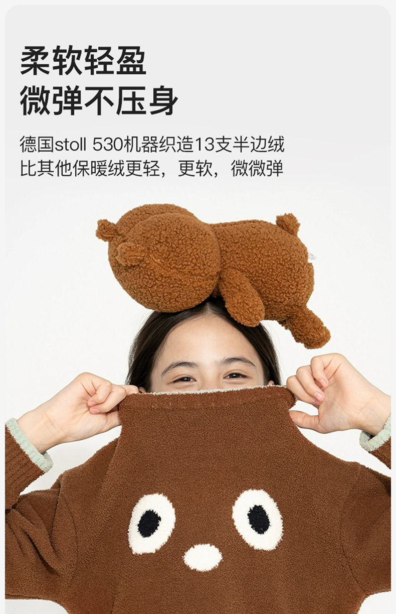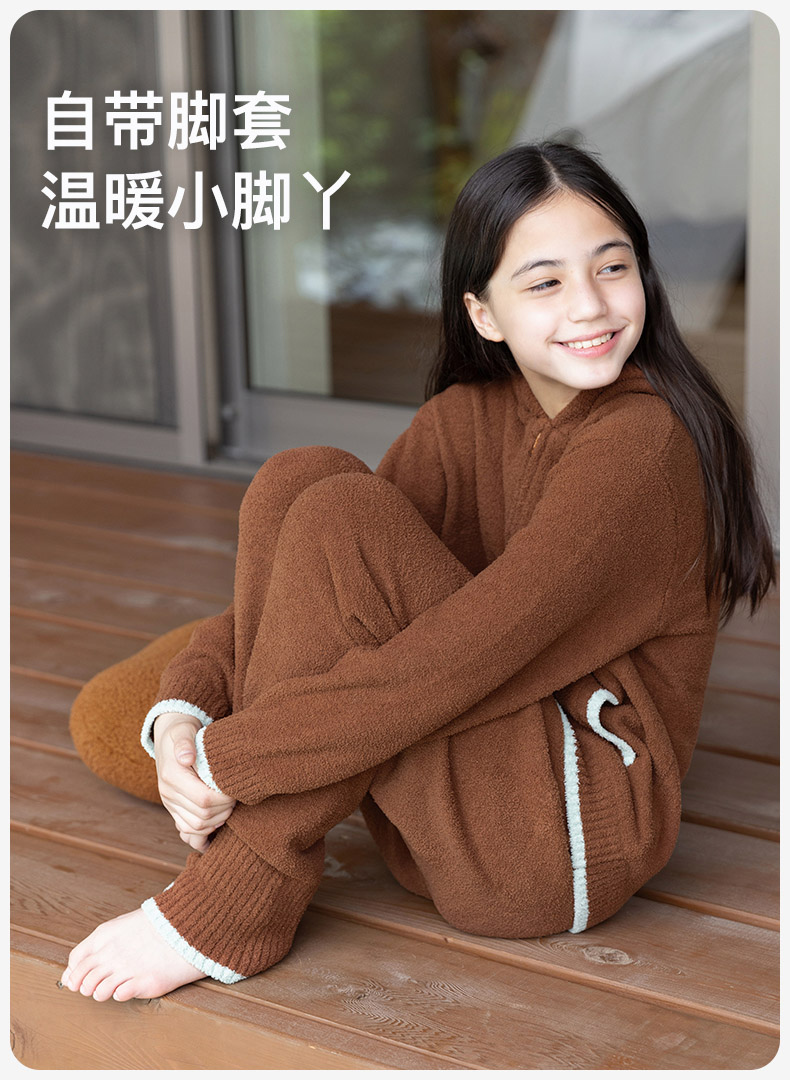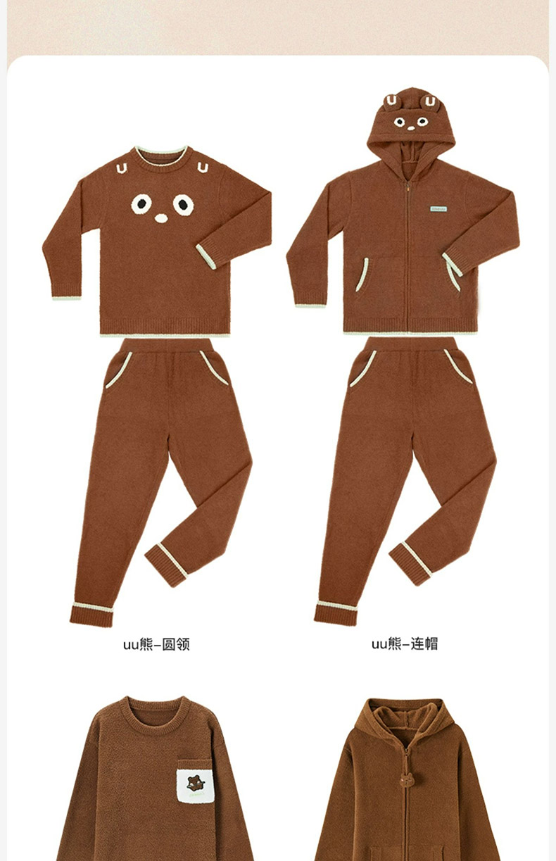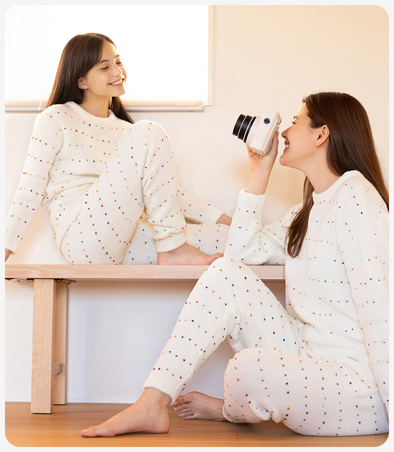 <有书独家>likeuu儿童家居服套装亲子款彩糖豆半边绒睡衣秋冬男女