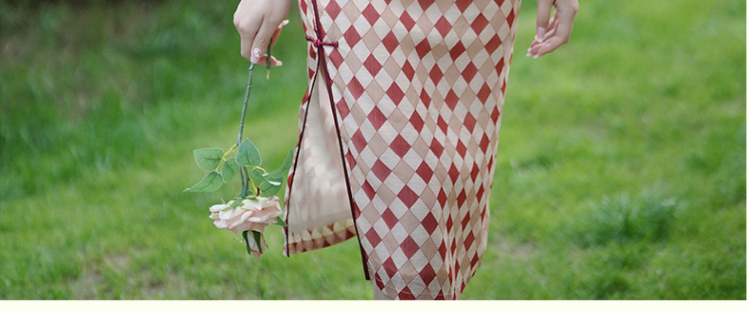 爆款推荐# 上海老画报复刻款『方仪』半透雪纺文艺格子印花旗袍,优雅迷人,带你梦回老上海!
