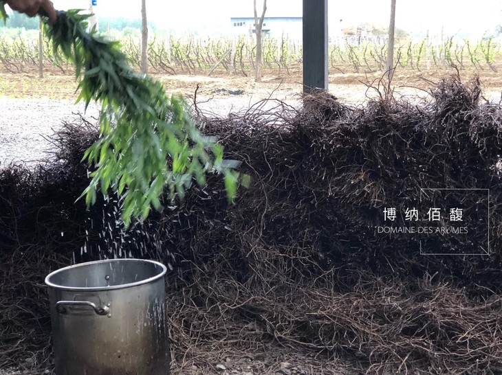 2019年的春天,我们迎来了连续20天的阴雨。在此期间,大多数酒庄出现叶片泛黄的情况。大多数葡萄种植户开始施用叶面肥,我们却认为只是由于葡萄根部由于湿度大,出现了轻度缺氧的情况。酒庄唯一的操作,是在雨期中和雨期过后,各施用了一次硅粉(生物动力法配制剂501)喷洒,引导页面与阳光进行更多交流。