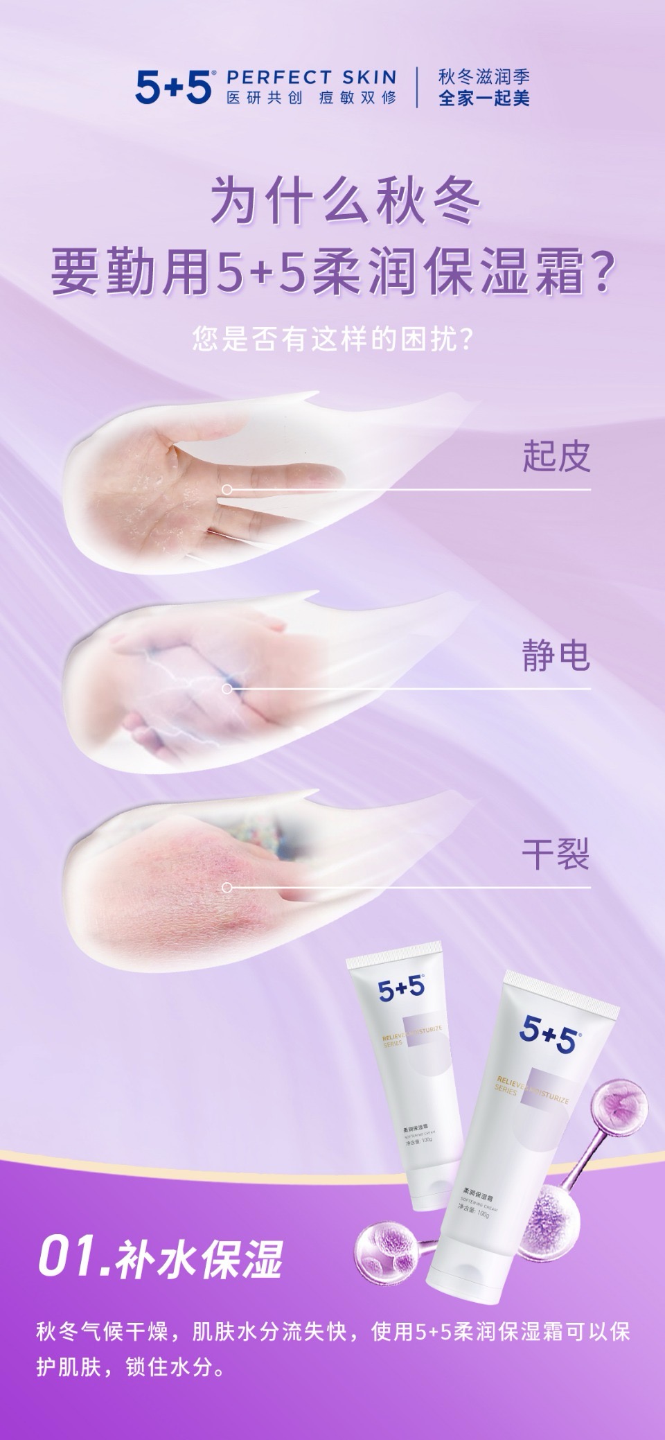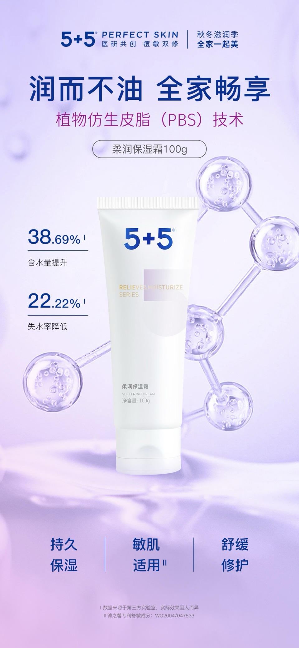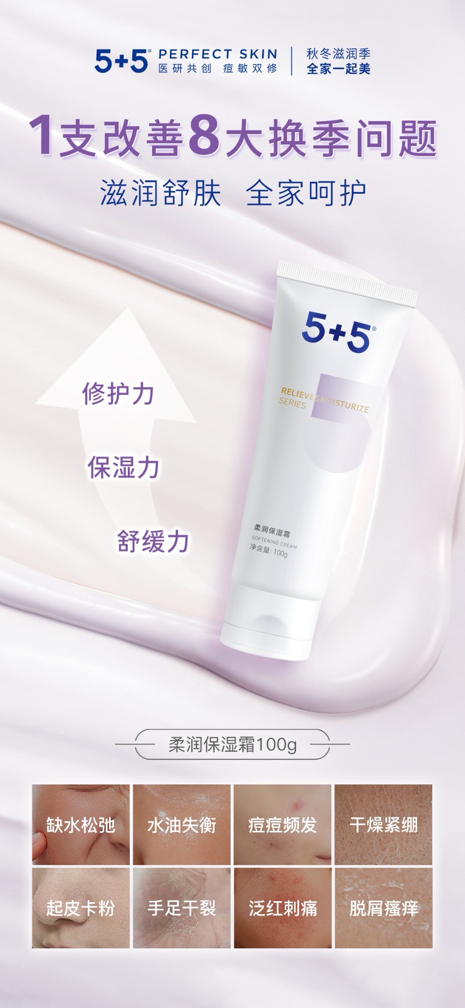 5+5柔润保湿霜100g面霜补水锁水滋润