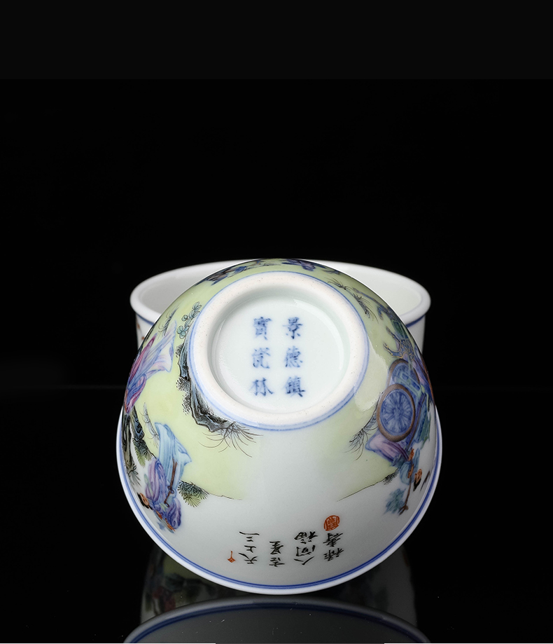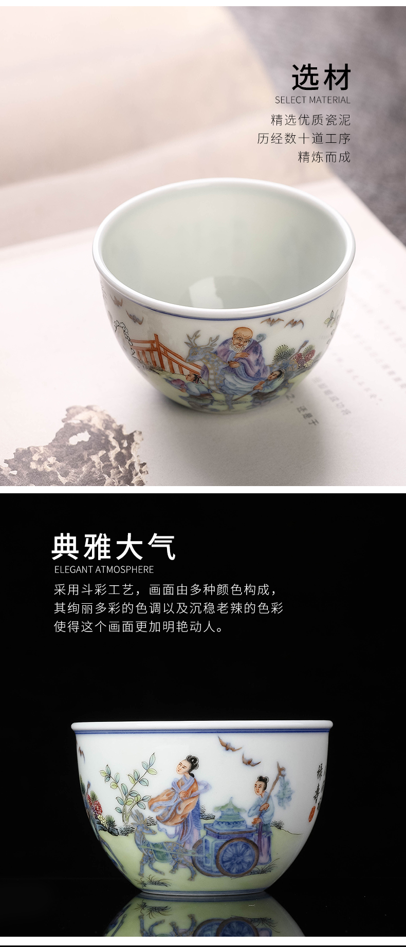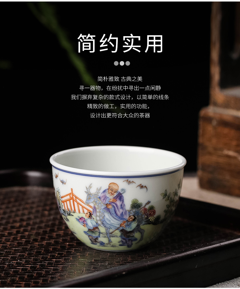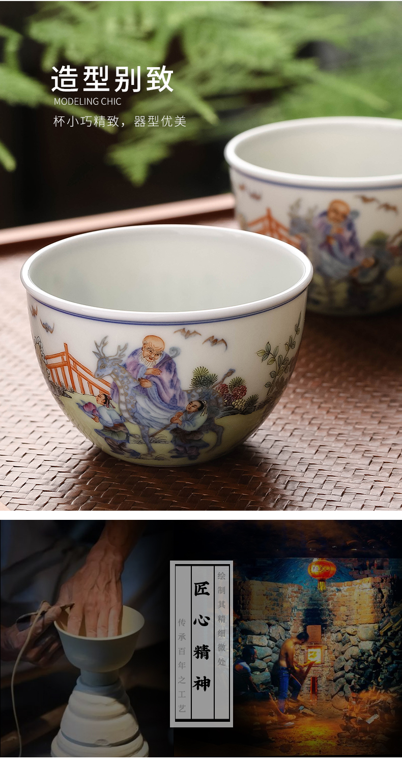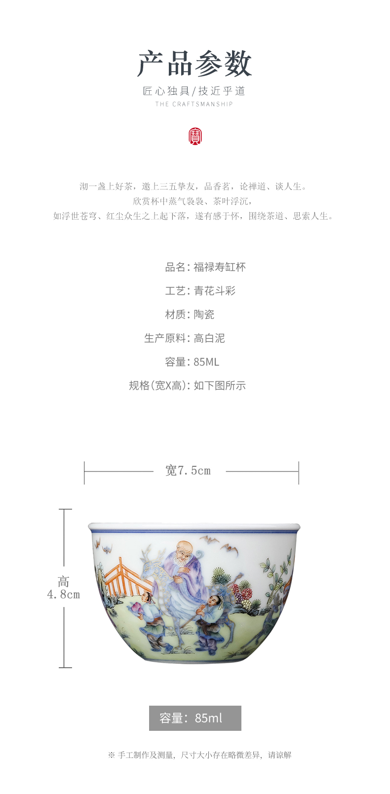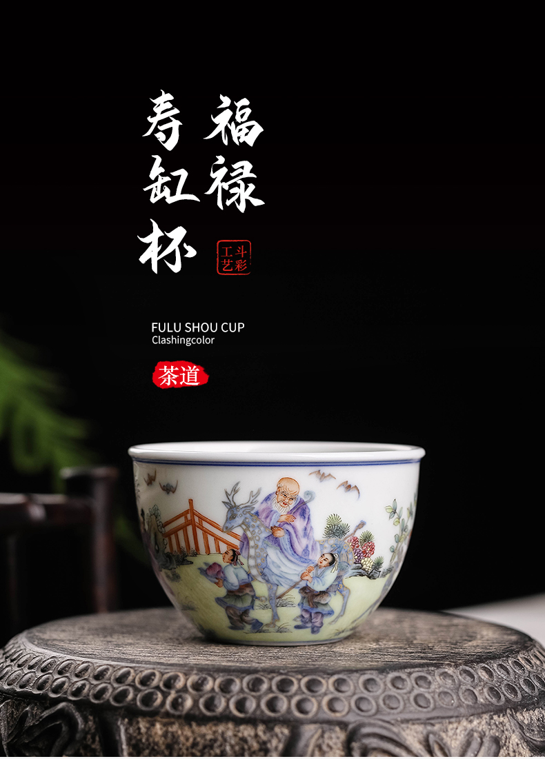 青花斗彩福禄寿缸杯