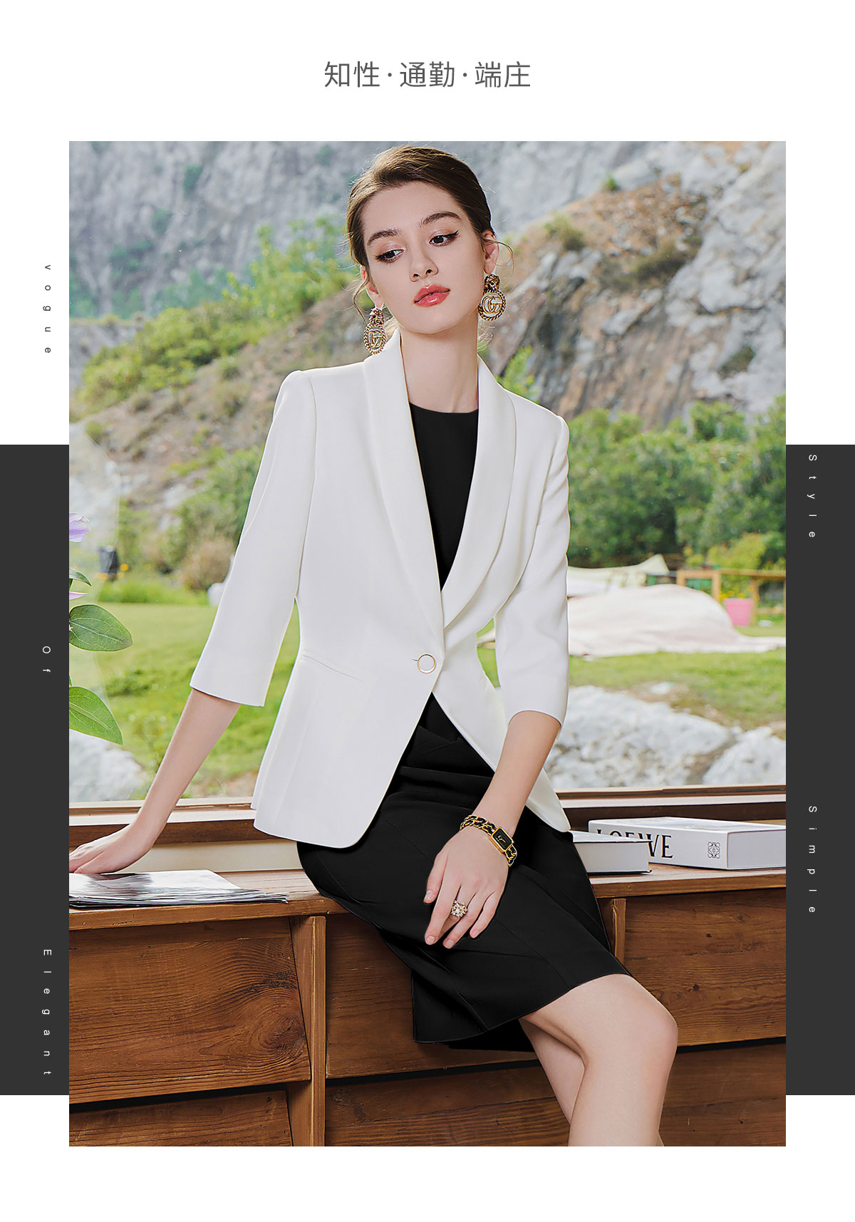 AD秋季职场两件套女2023新款职业装七分袖白色西装无袖背心连衣裙