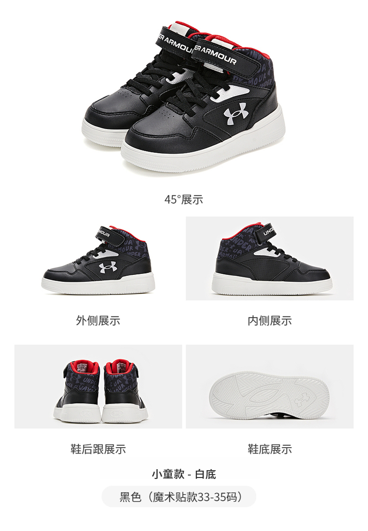 【12月-品牌福利】Under Armour安德玛儿童中帮防撞N磨运动板鞋,尺码可穿到40码 2441308
