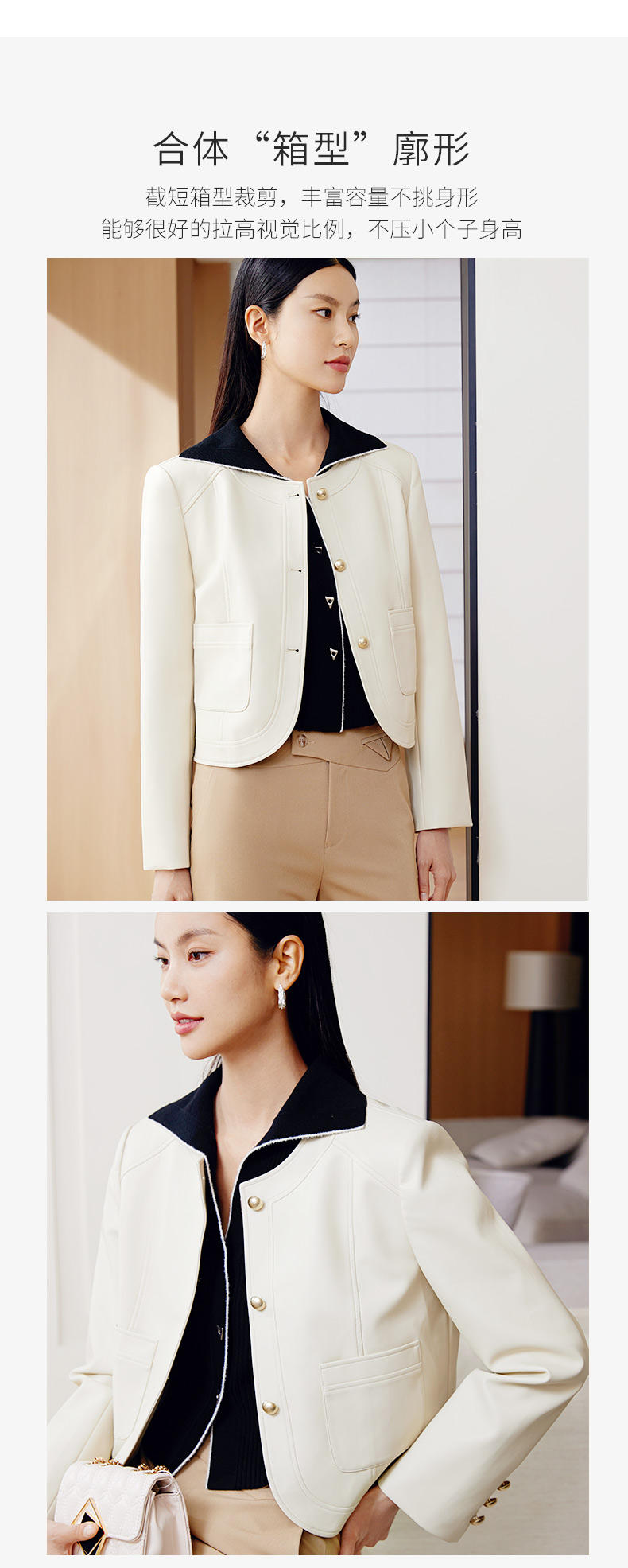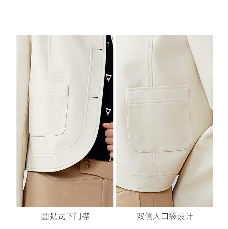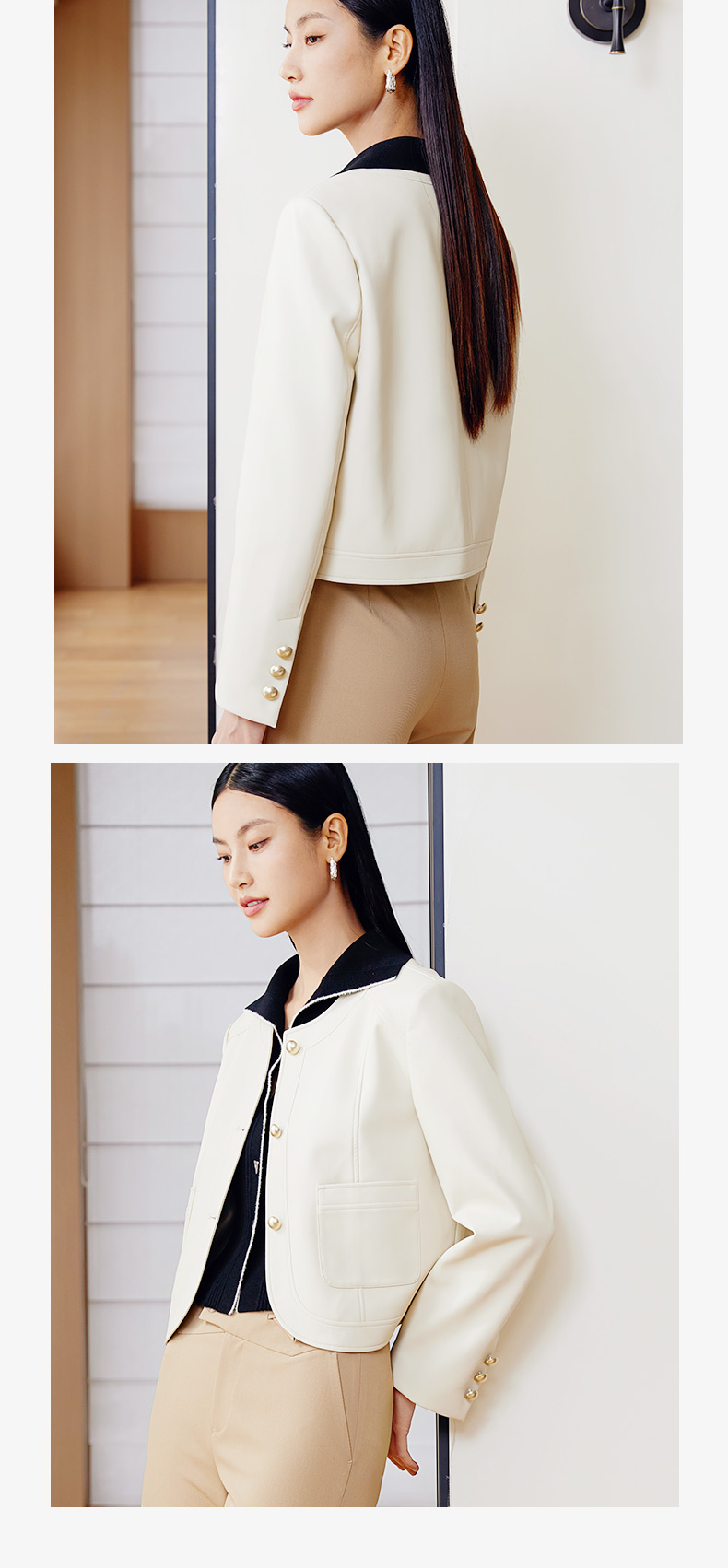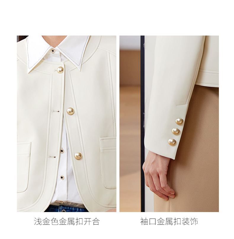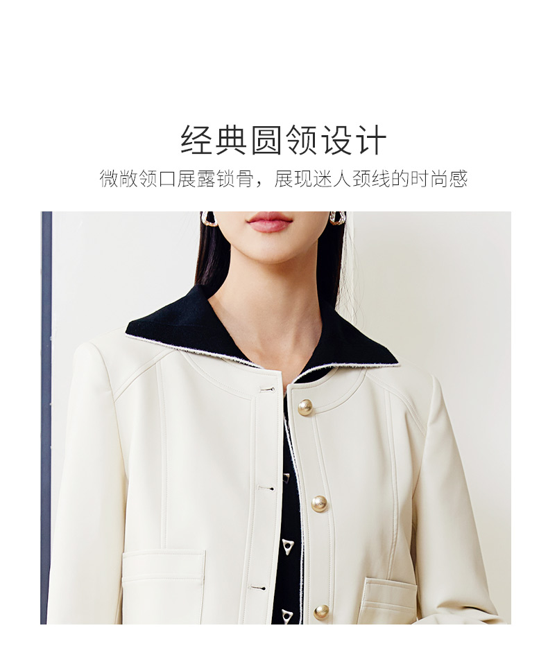 玳莎圆领高级感皮衣女2024年春季新款时尚职场通勤宽松PU皮短外套 EA37307