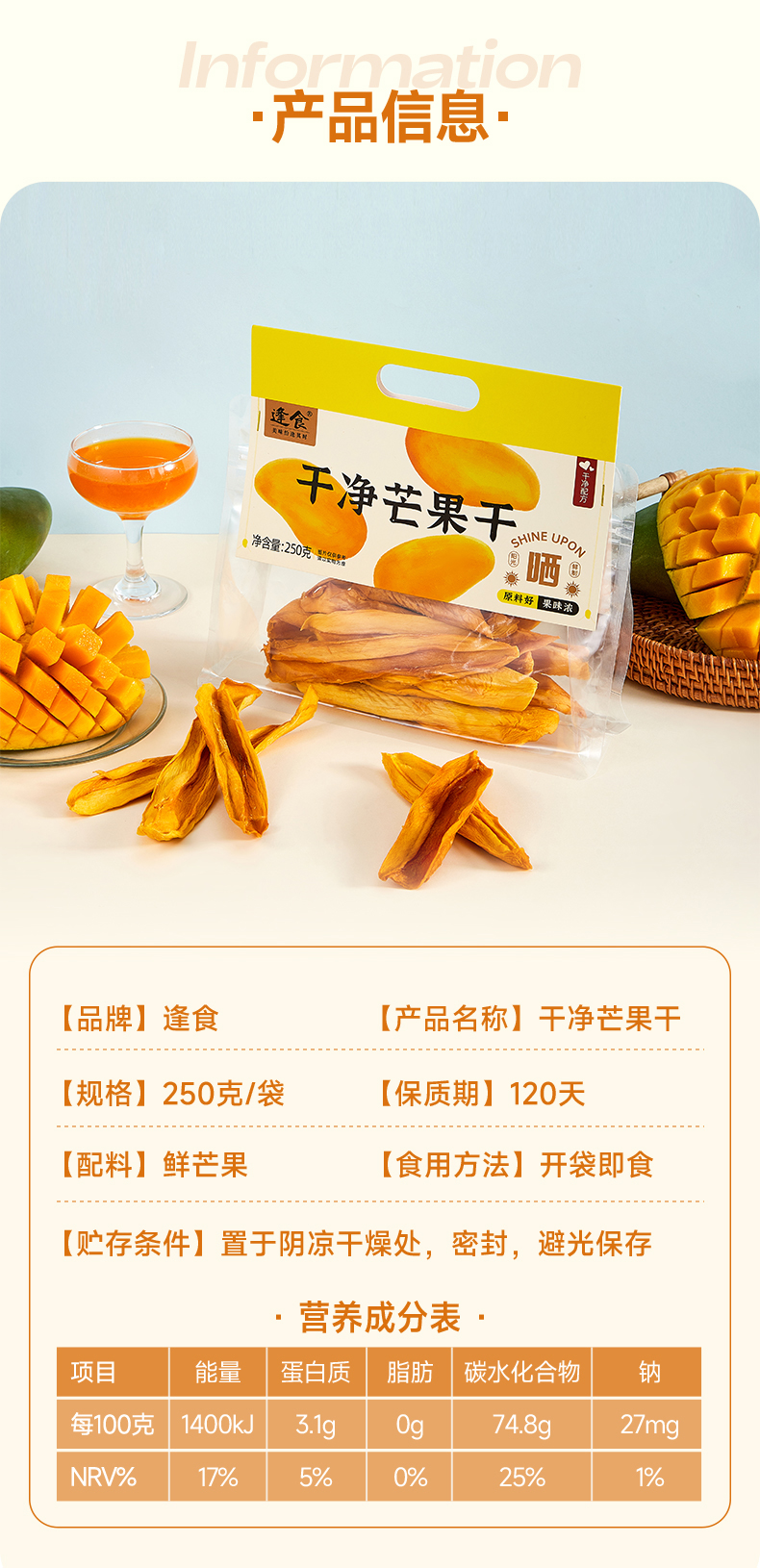 【好物推荐】芒果干鲜芒现烤 不加糖休闲蜜饯零食250g/袋
