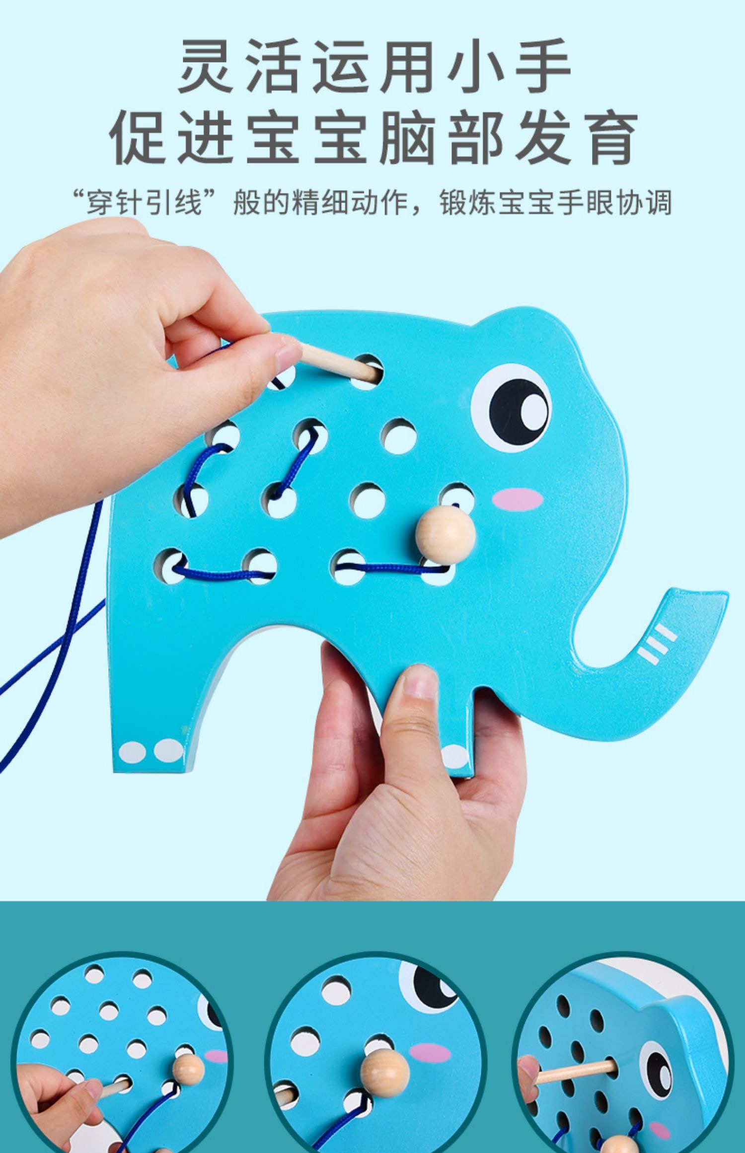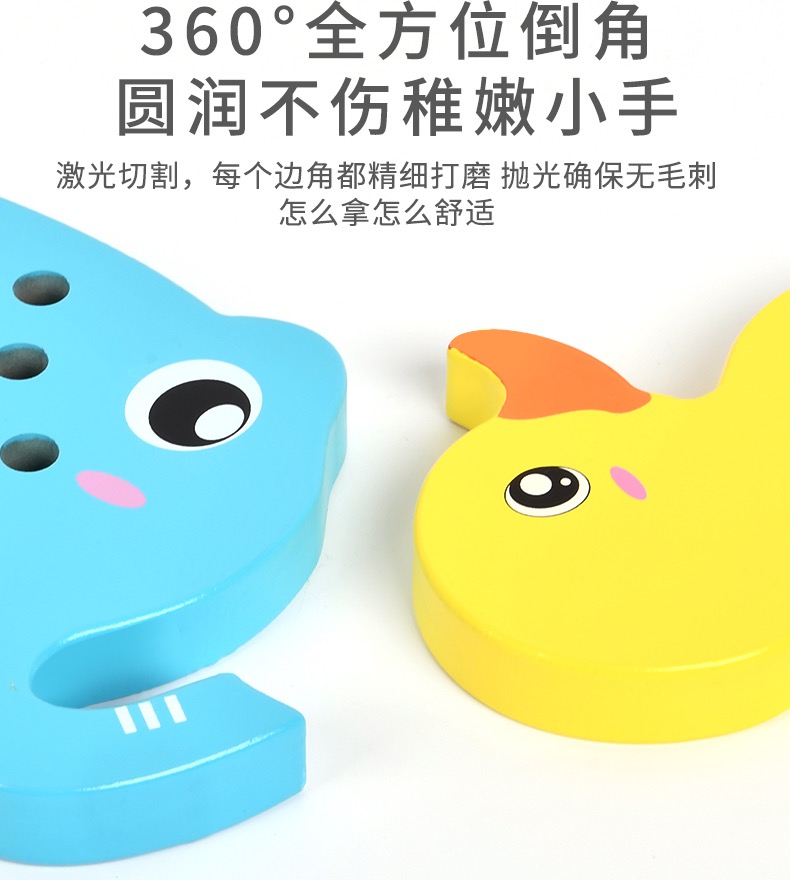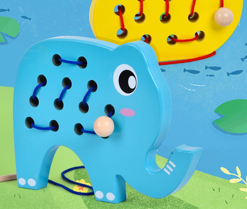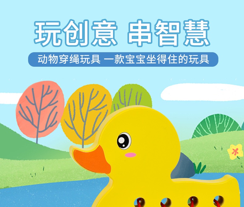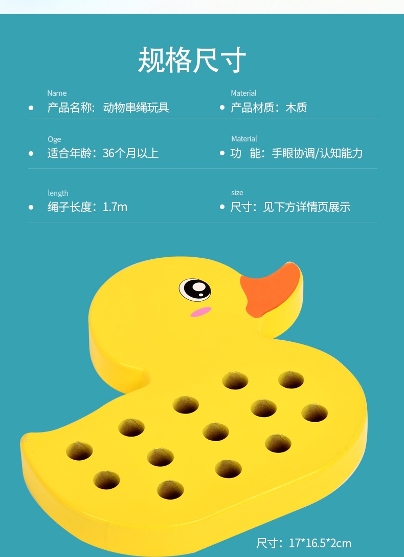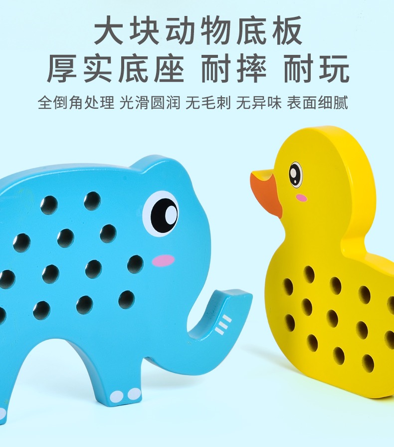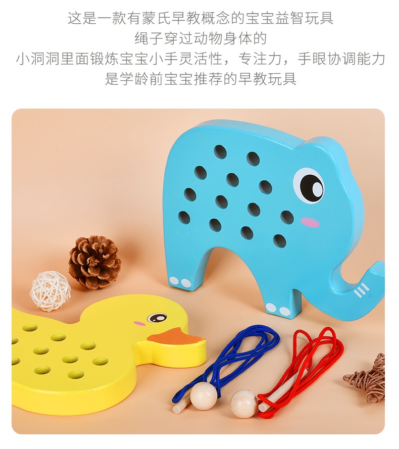 (15号16:00开抢)【2岁+】儿童大象+鸭子穿绳锻炼手眼协调能力精细动作木制玩具