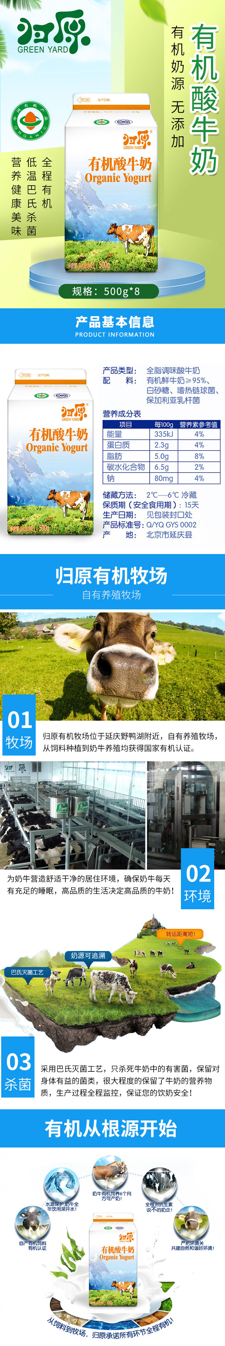 京津冀顺丰包邮 当天日期发货 归原 有机含糖酸奶500g*8盒 巴氏 无添加