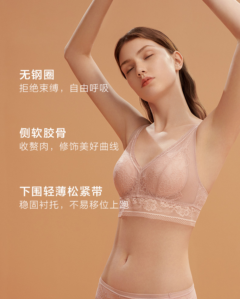 金三塔新品 真丝性感无钢圈全罩杯内衣女聚拢透气蕾丝胸罩 NZFBC303