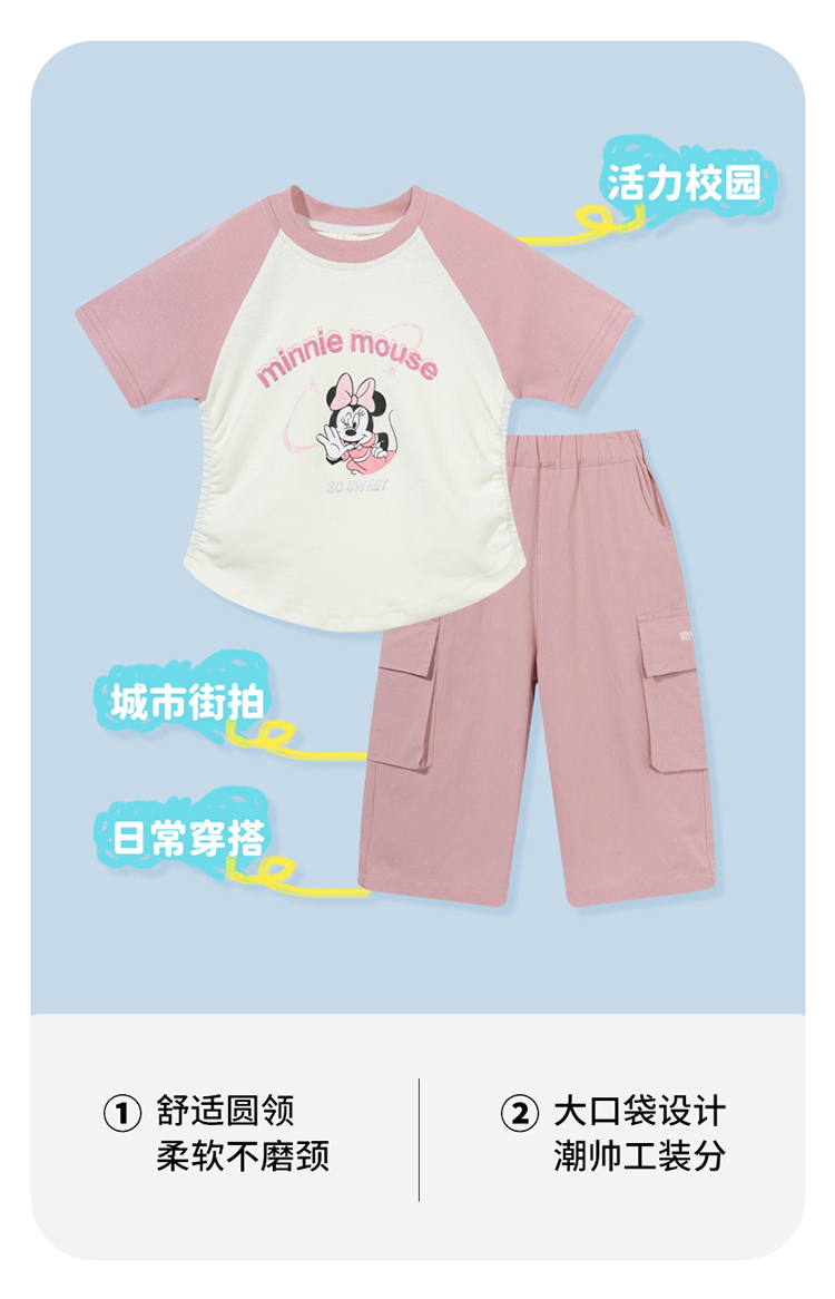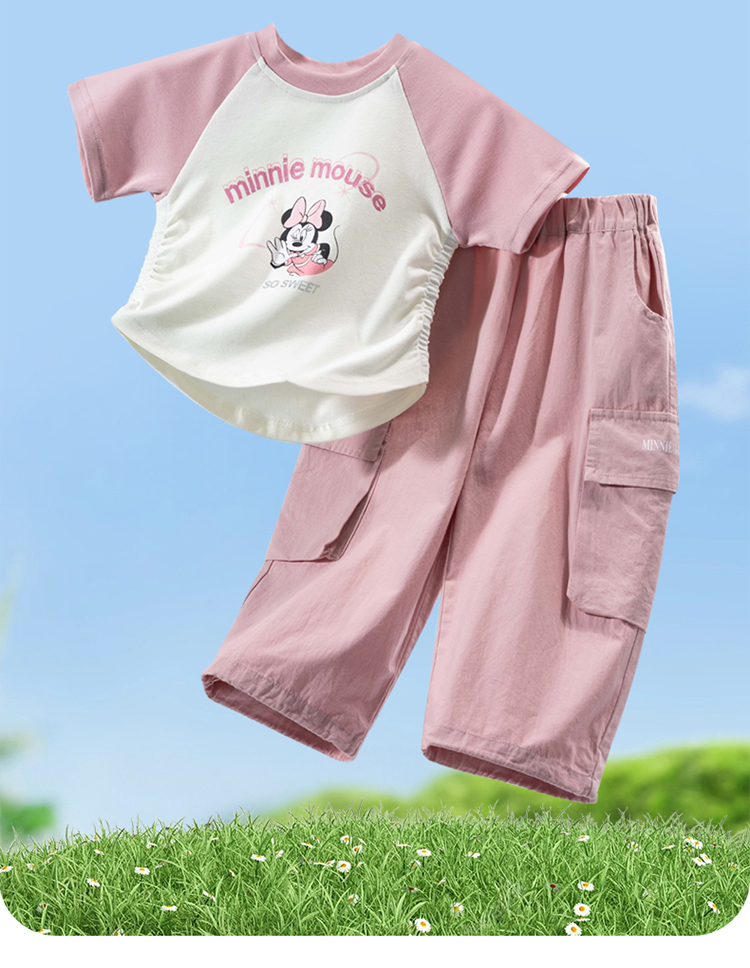 迪士尼女童短袖长裤工装套装ZD2DT058