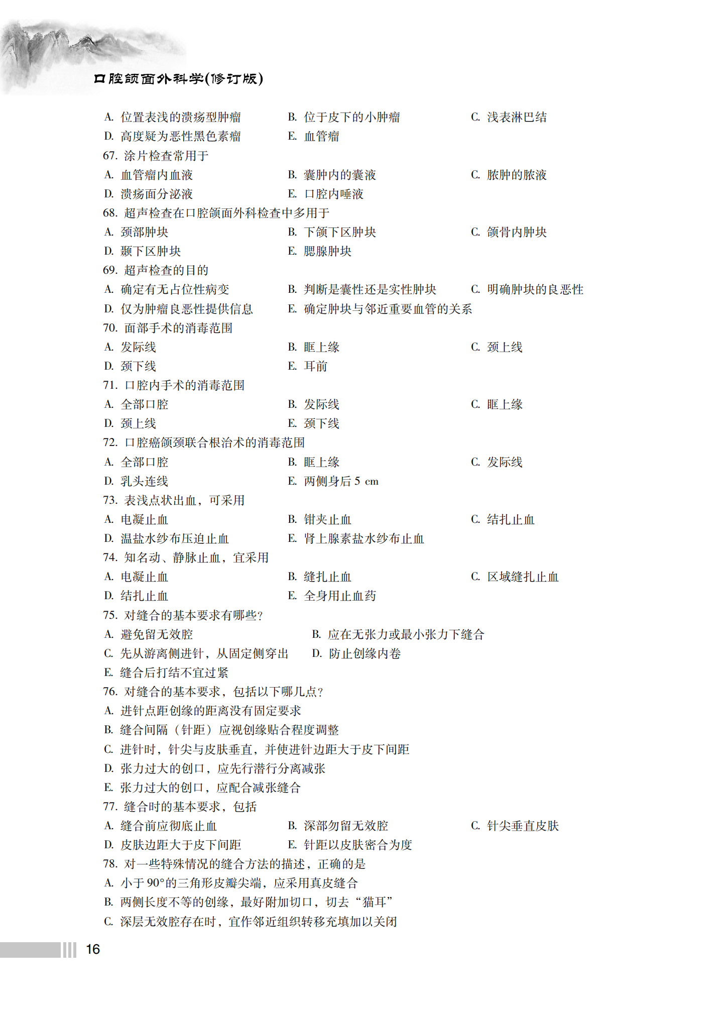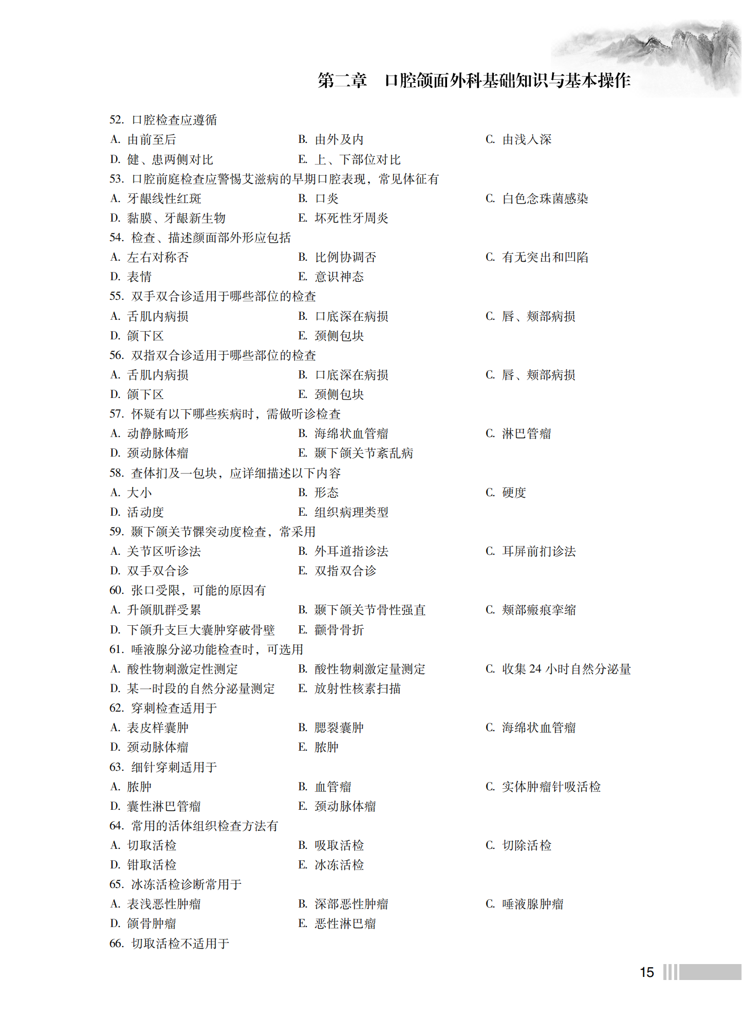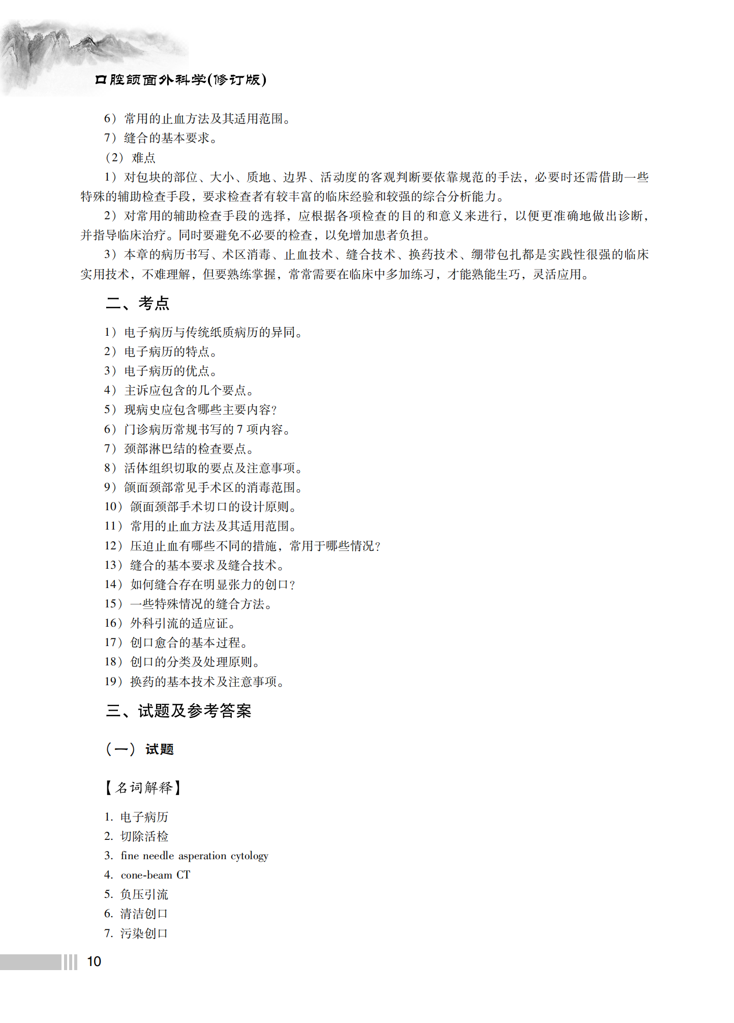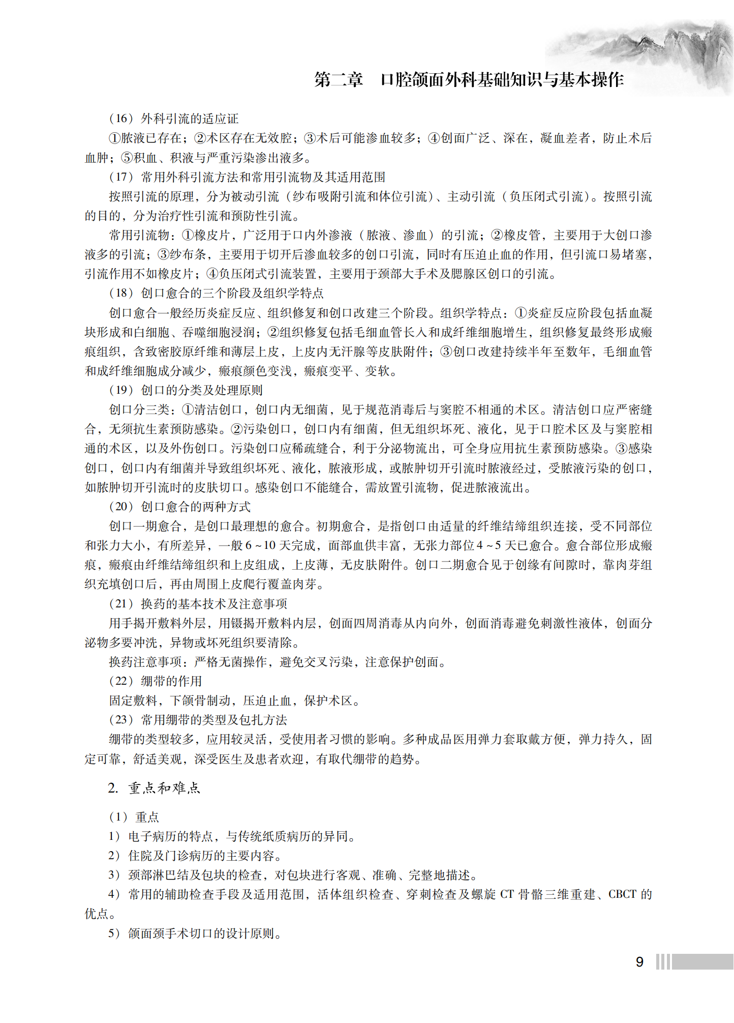 口腔颌面外科是一门专业强、技术发展迅速的医学学科,口腔颌面外科的教学培养也得到了越来越高的重视。本书第一版在教学培养中起到了重要作用,为了弥补第一版书的不足之处,以及增添近年来更新的知识点,编者们撰写了本书。本书将教学内容归纳成了知识点、重点、难点,其知识点中有大约10%是口腔颌面外科学的学科前沿新观点、新趋势,且本书特别增加了考点。本书稿大量运用知识框架图和表格描述重点内容,列举了大量考硕考博的试题,并对难题进行了解析。本书稿语言简练,条理清晰,图文并茂,易于理解。本书对初学口腔颌面外科专业课的本科生、准备硕士博士研究生入学考试以及执业医师考试、专科医师规范化培训者均有所帮助。