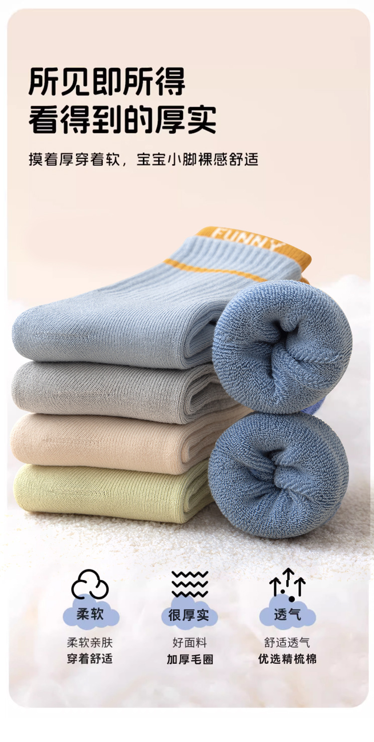 5双32.9包邮!冬季加厚保暖毛圈袜棉袜无骨高橡筋儿童袜子男女童运动抗寒25-42码亲子款