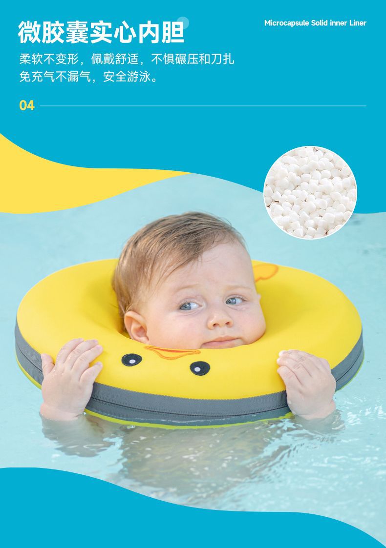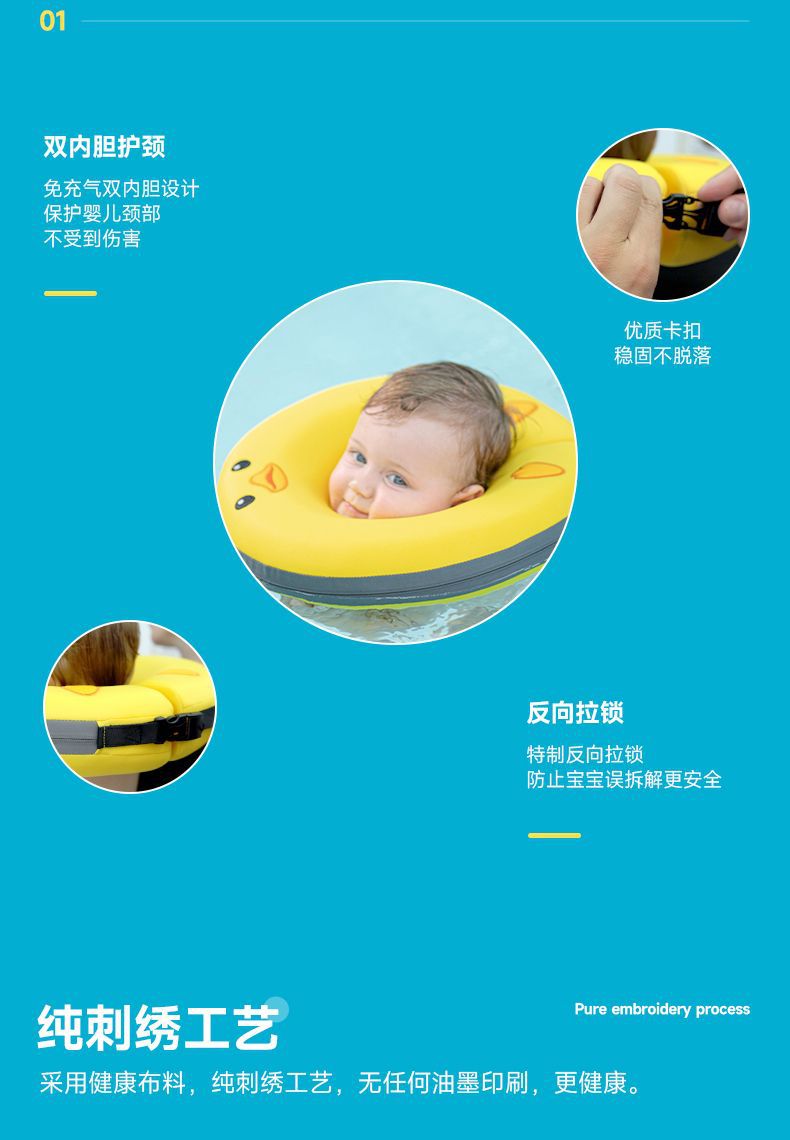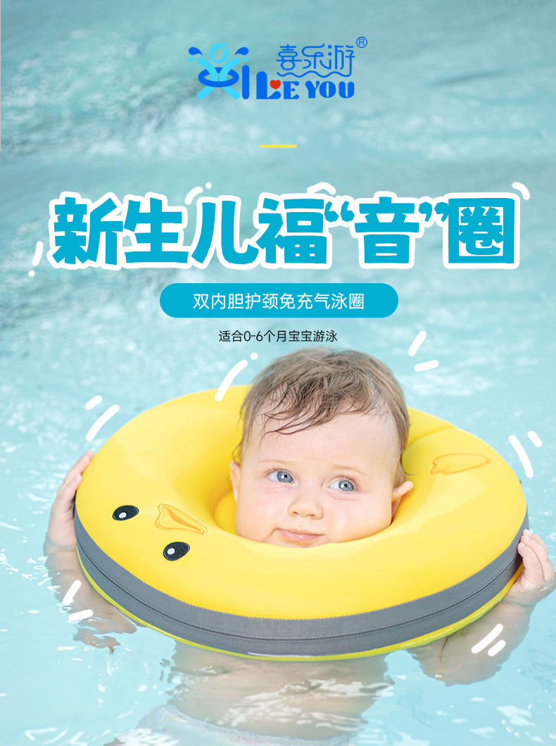 【双内胆护颈免充气】喜乐游婴儿游泳圈0-6个月宝宝免充气防侧翻新生儿游泳脖圈
