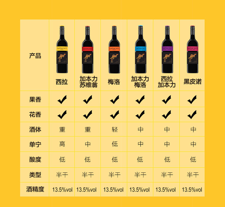 【整箱6瓶】澳洲原装进口红酒 黄尾袋鼠 葡萄酒1箱(750ml*6瓶)(多口味可选)