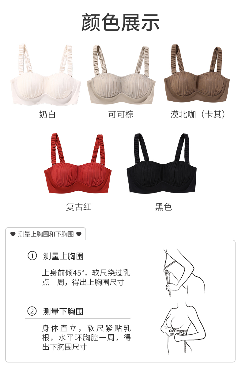 雅黛丽内衣女聚拢小胸无痕薄款抹胸无钢圈收副乳防下垂美背文胸罩