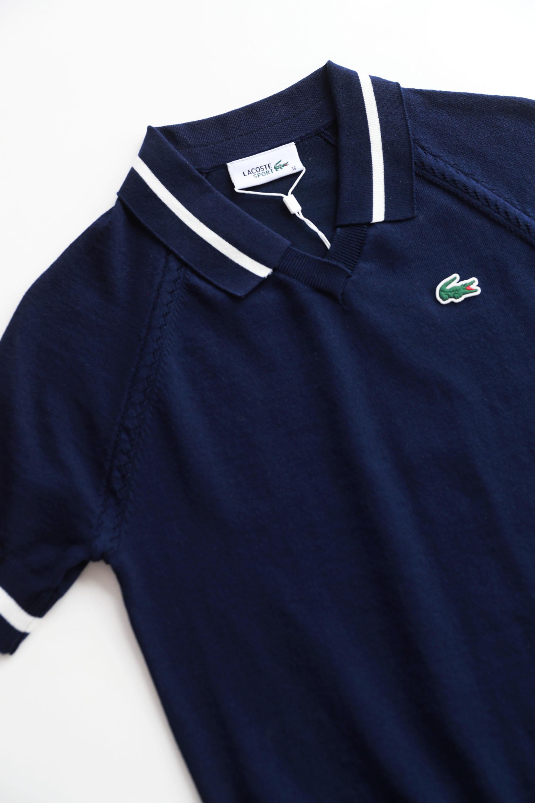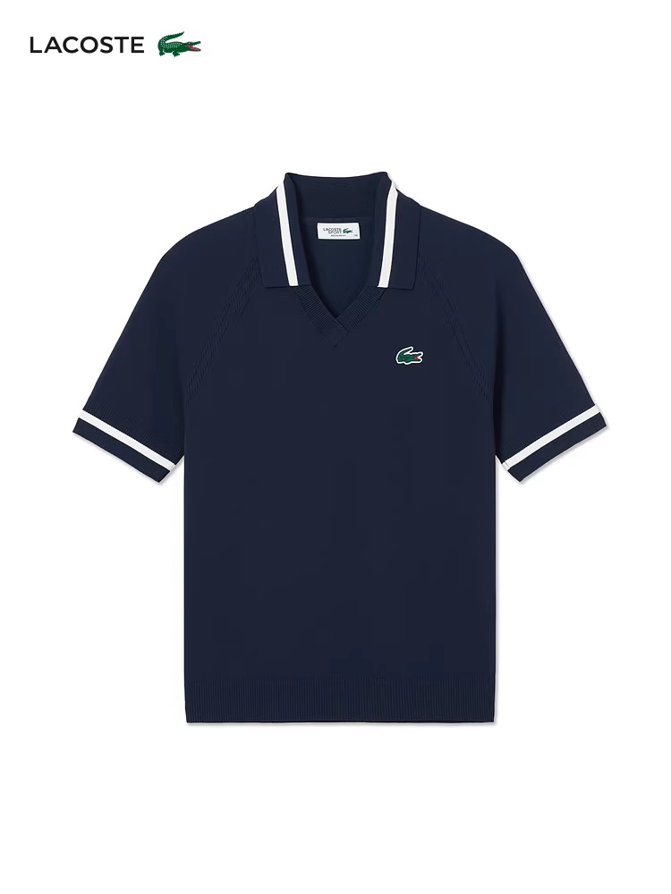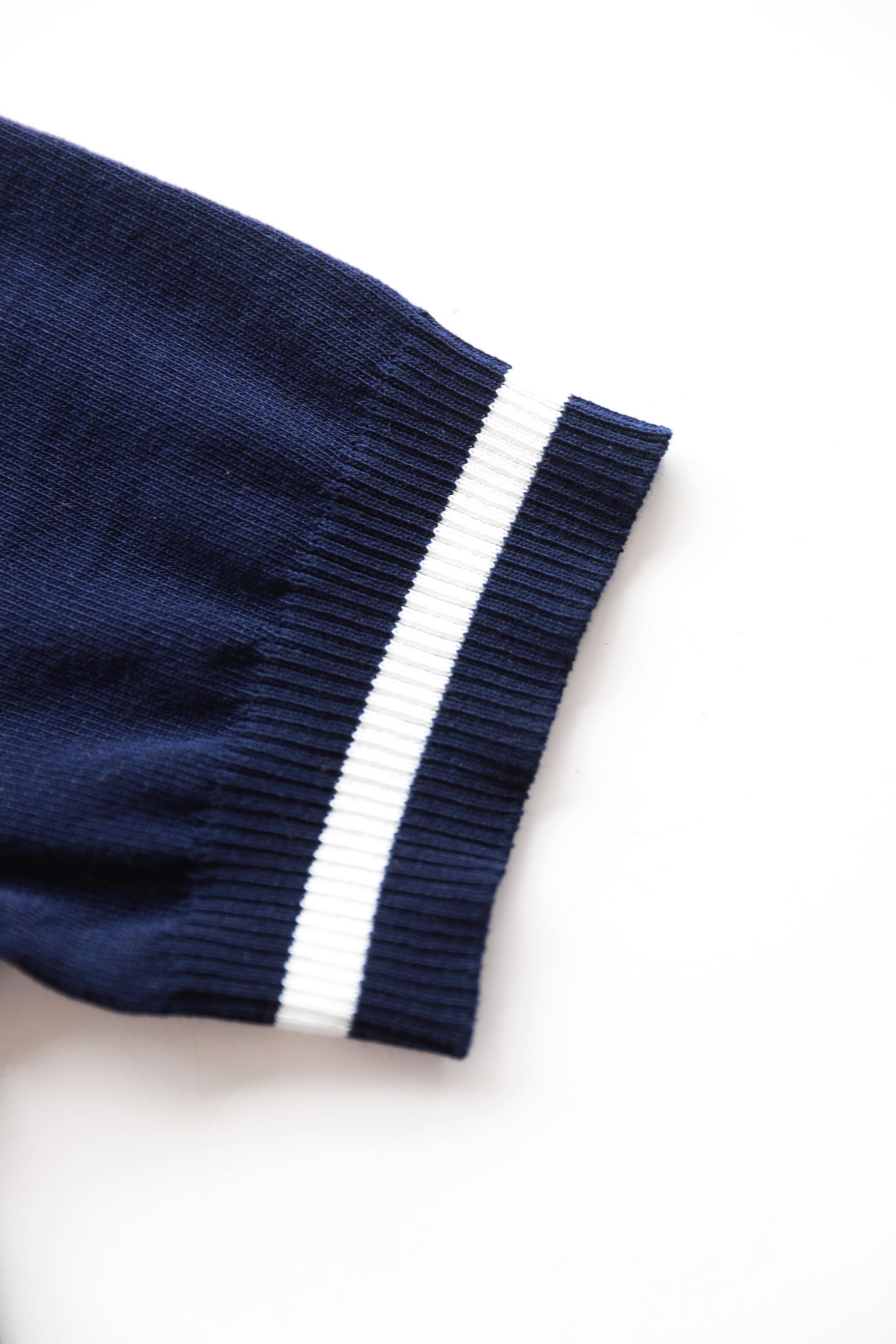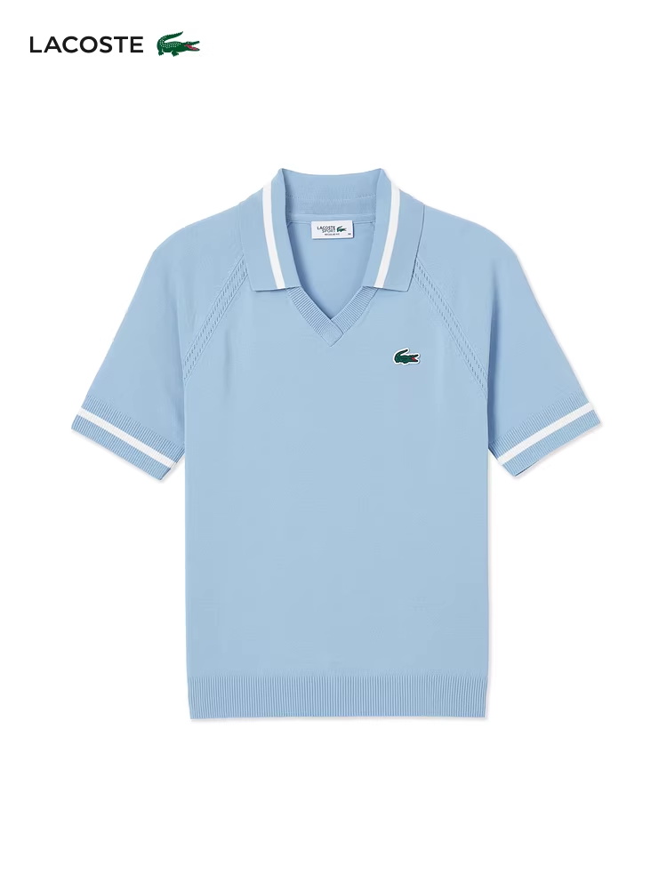 高尔夫针织衫,胸口小标工艺。刺绣设计条纹翻领气质PoloE040288