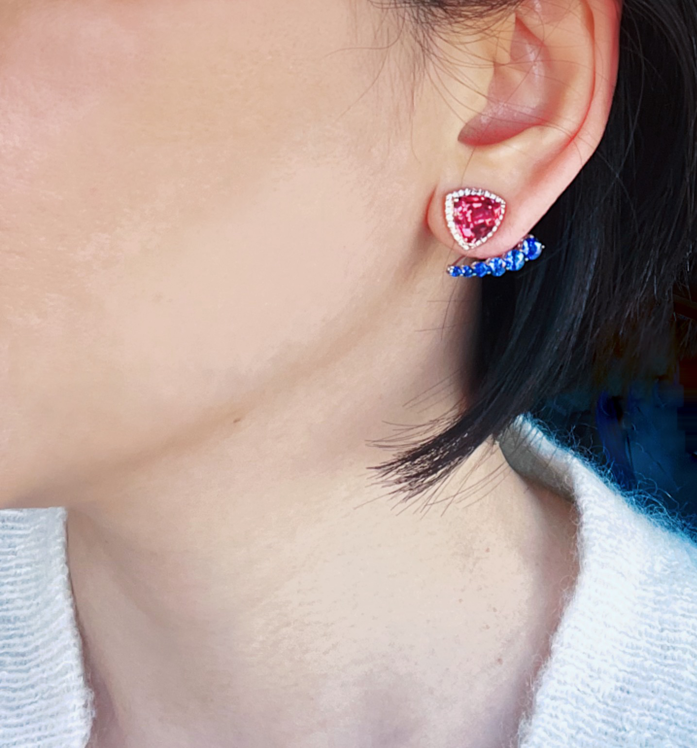 ONLY系列 18K镶钻石、蓝宝石和碧玺 拆分式两用 耳环