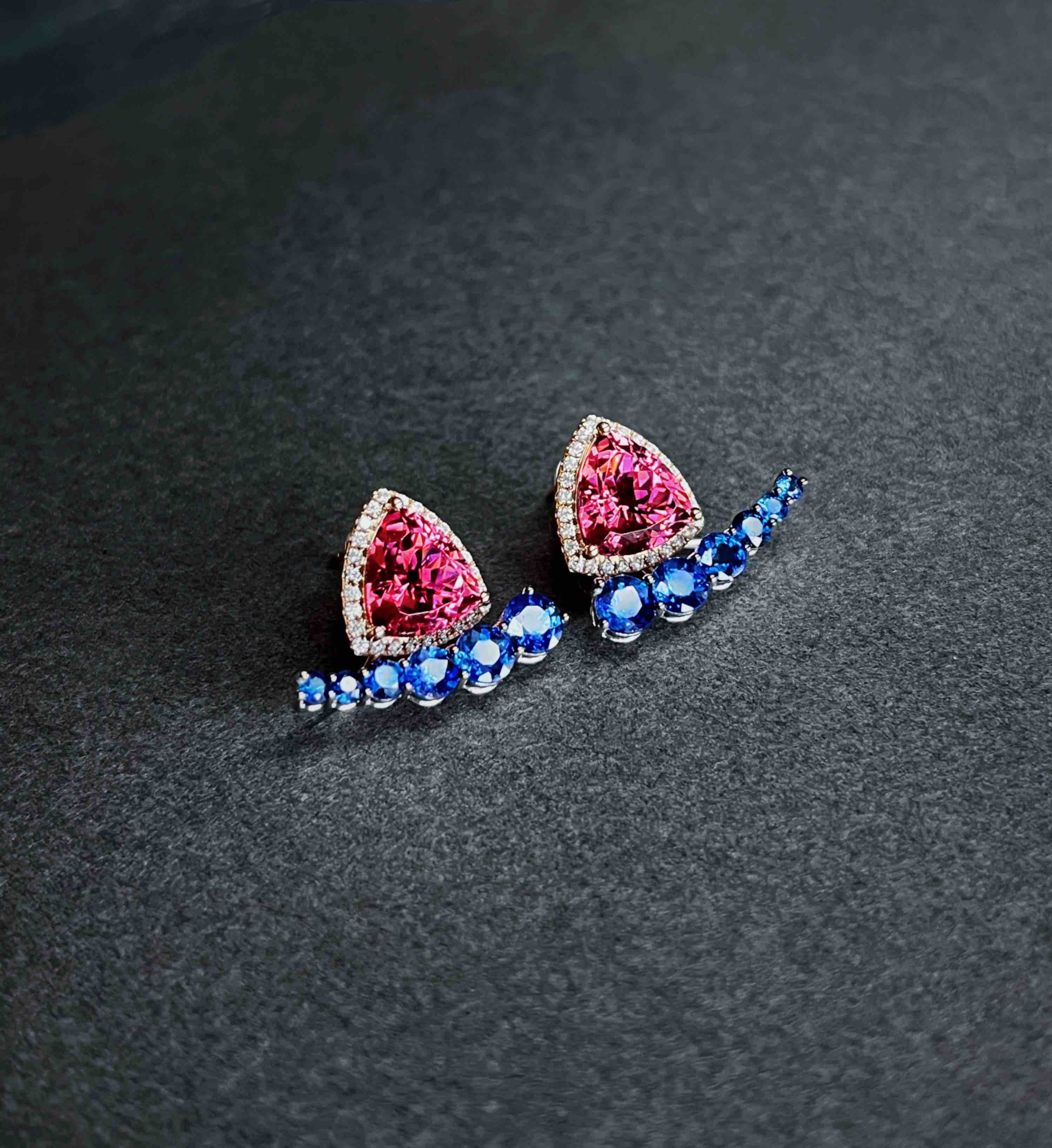 作品名称:18K镶钻石、蓝宝石和碧玺 耳环