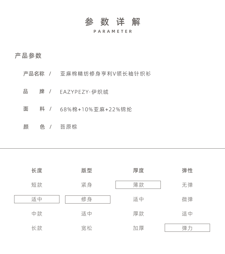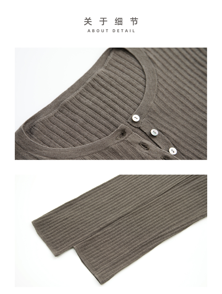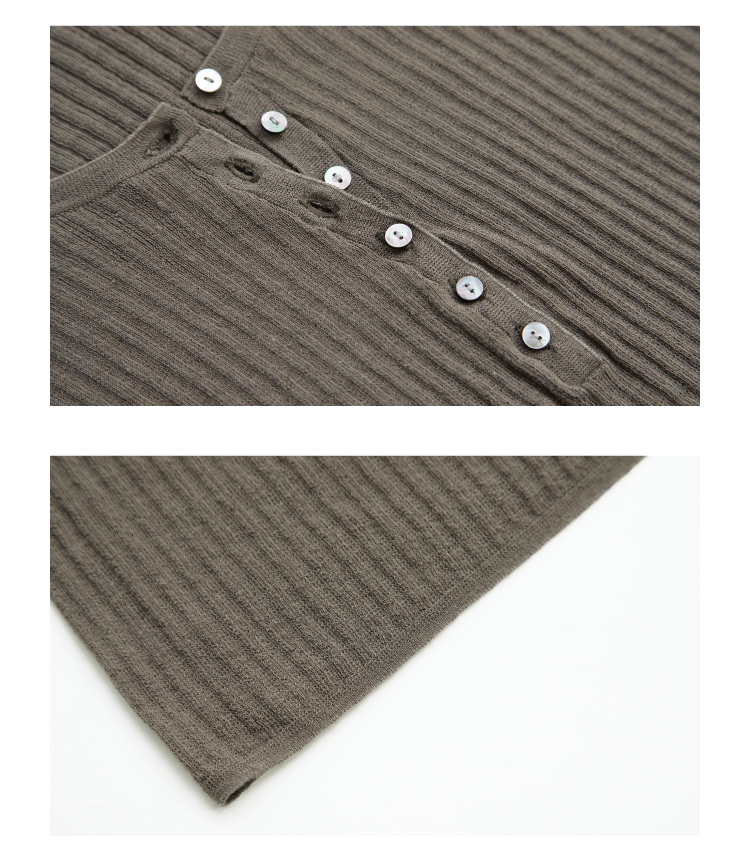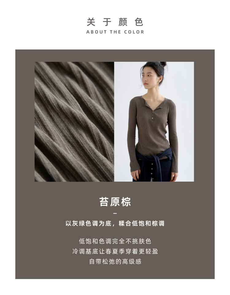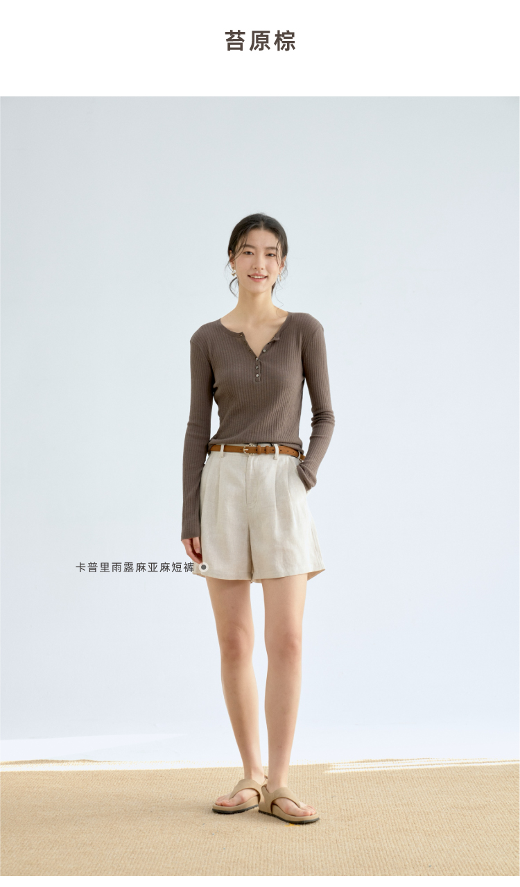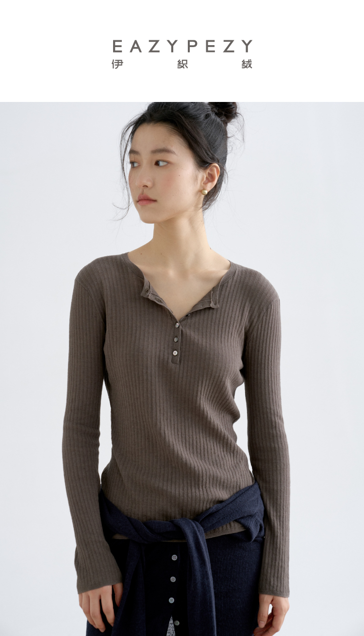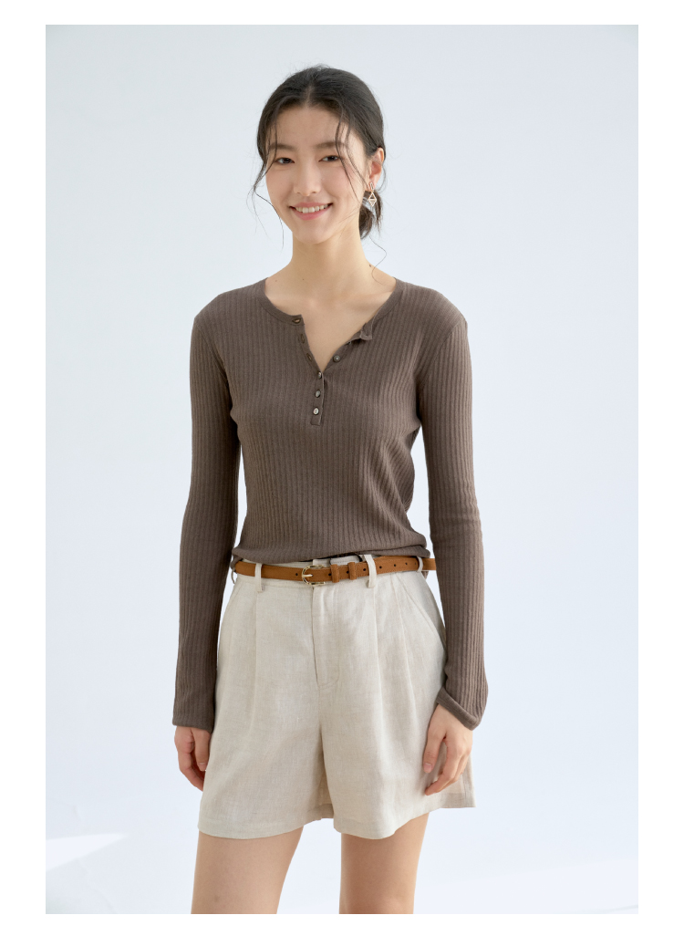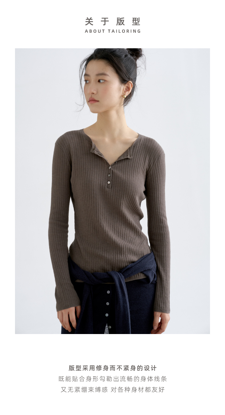 亚麻棉精纺修身亨利V领长袖针织衫