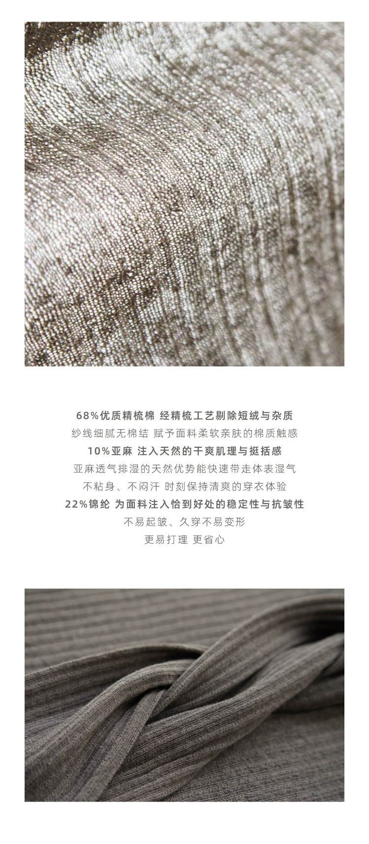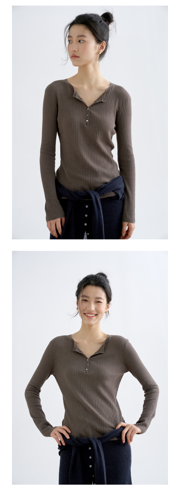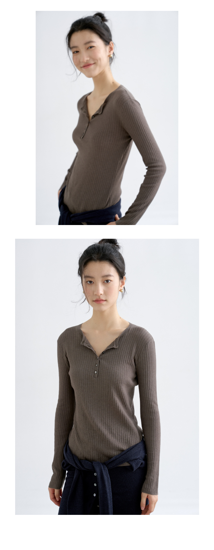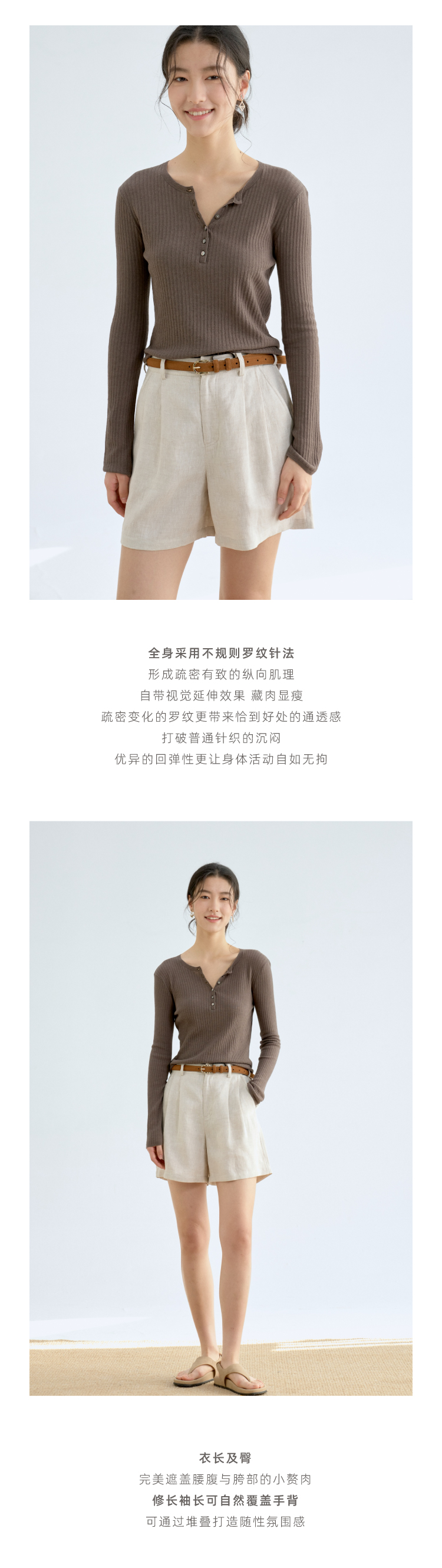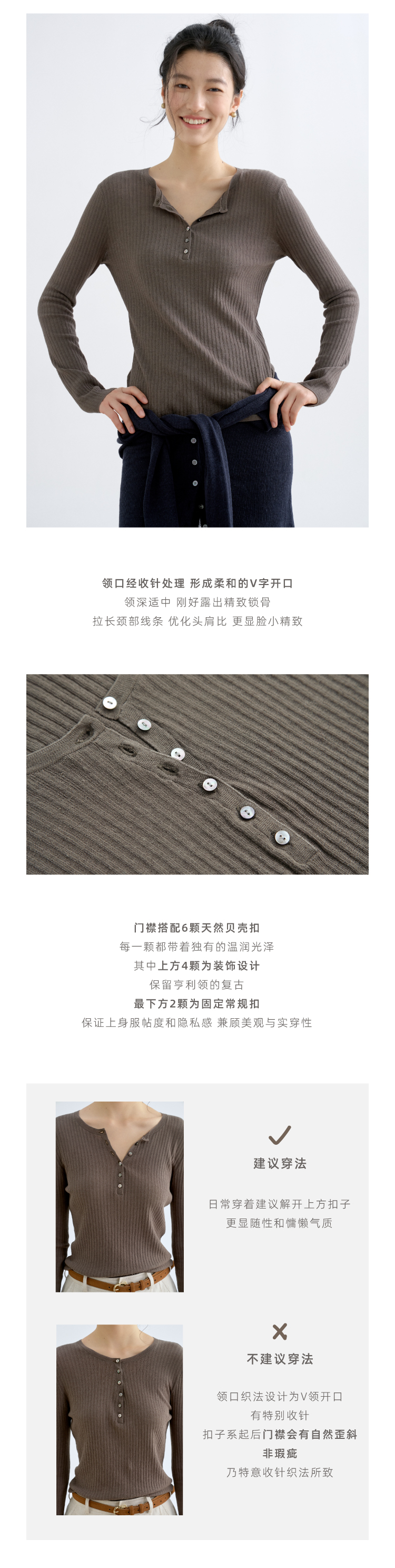 亚麻棉精纺修身亨利V领长袖针织衫