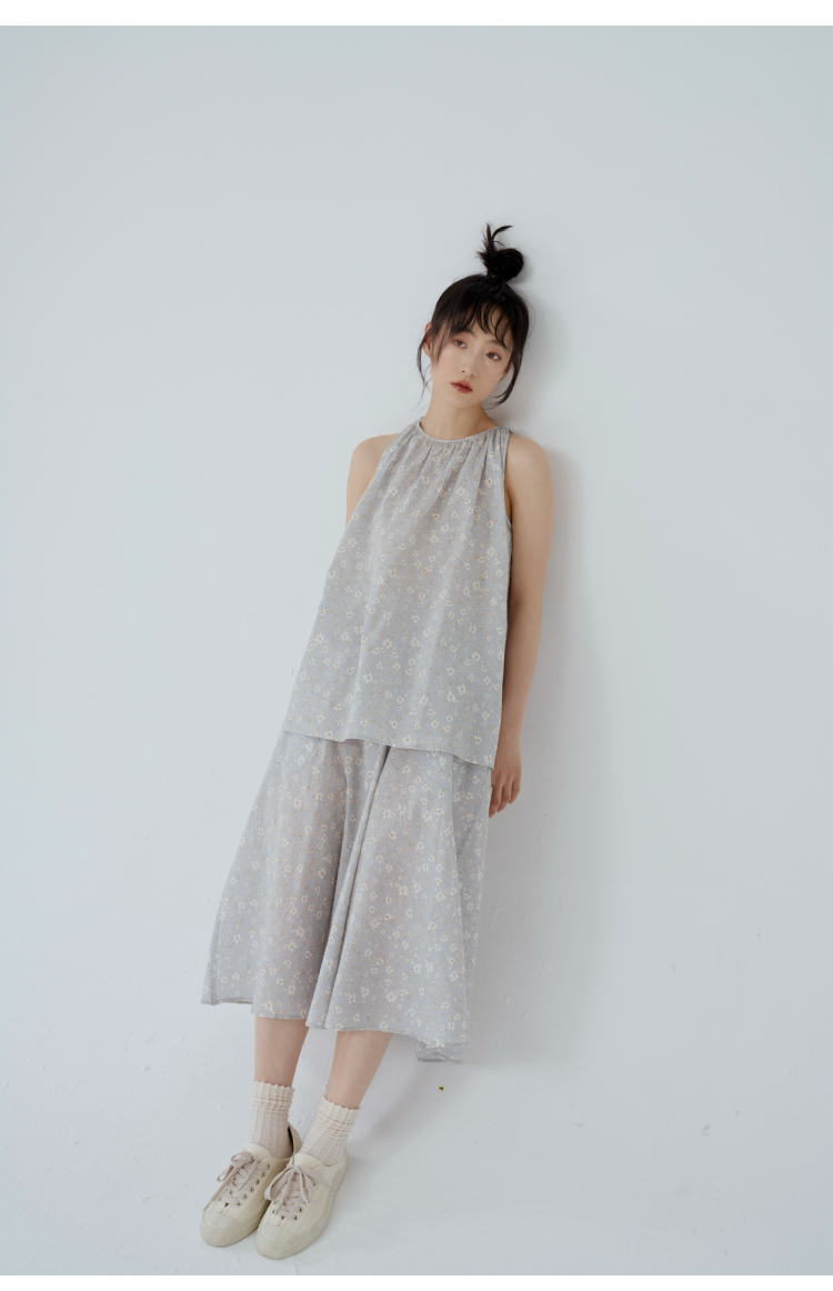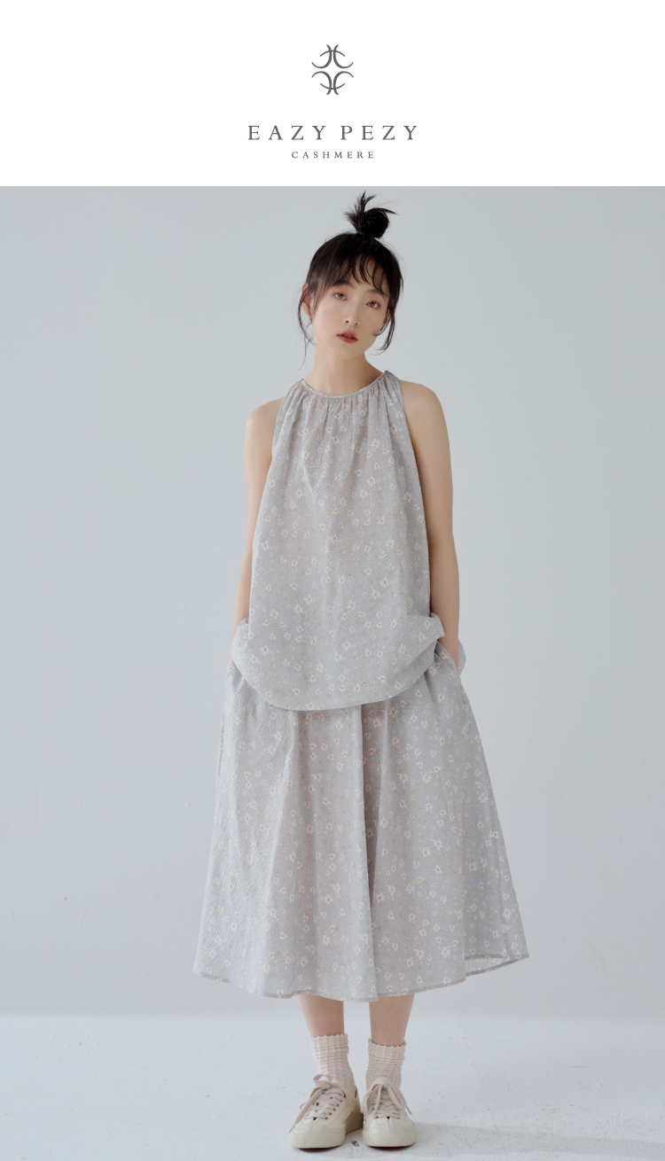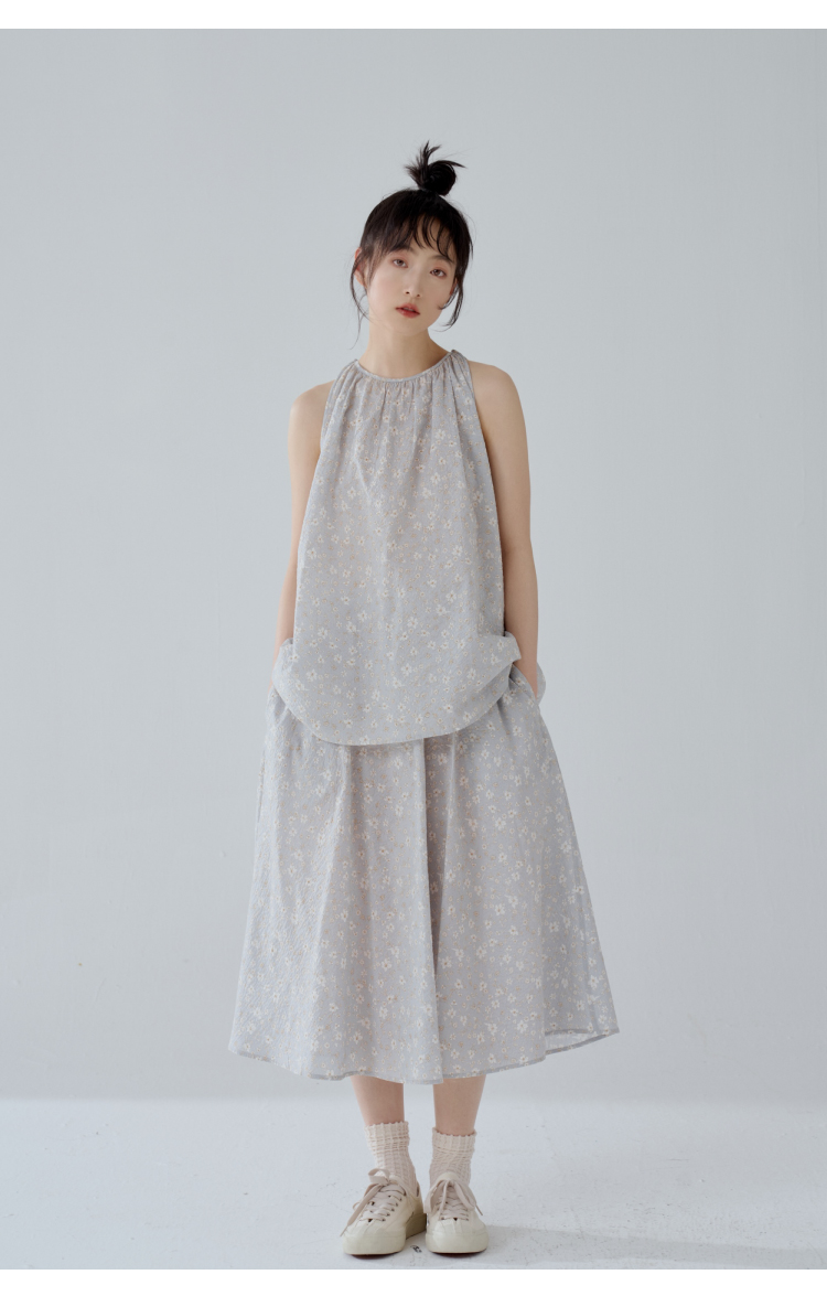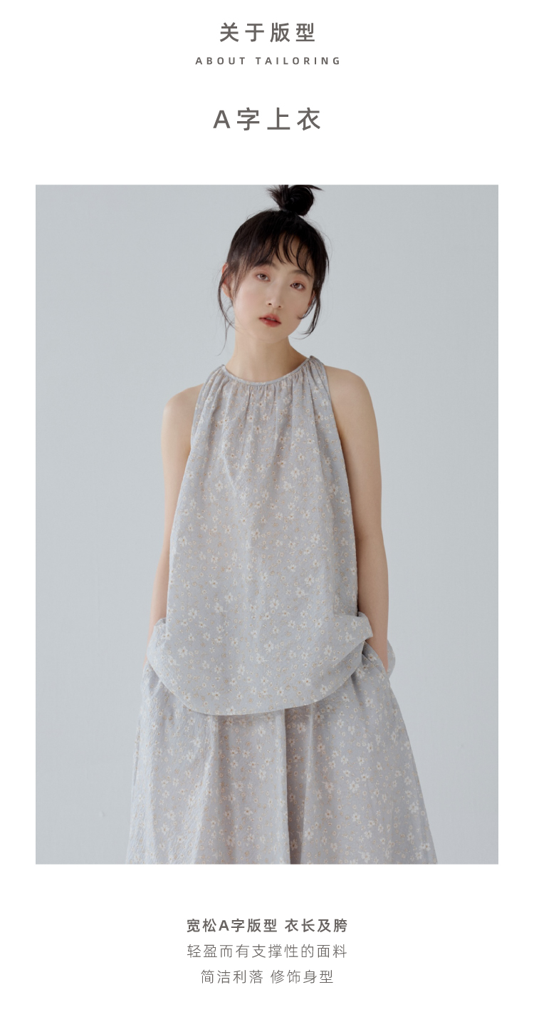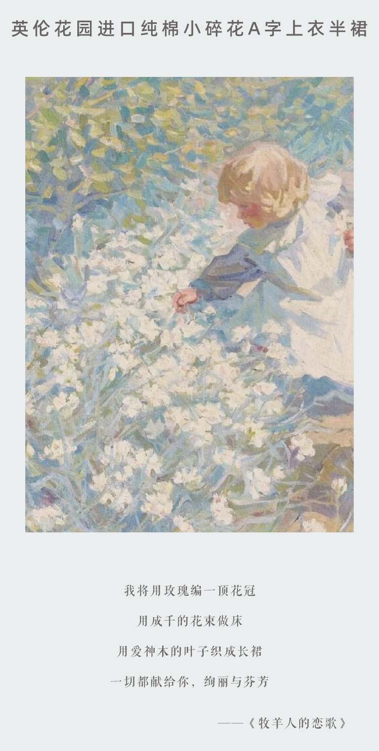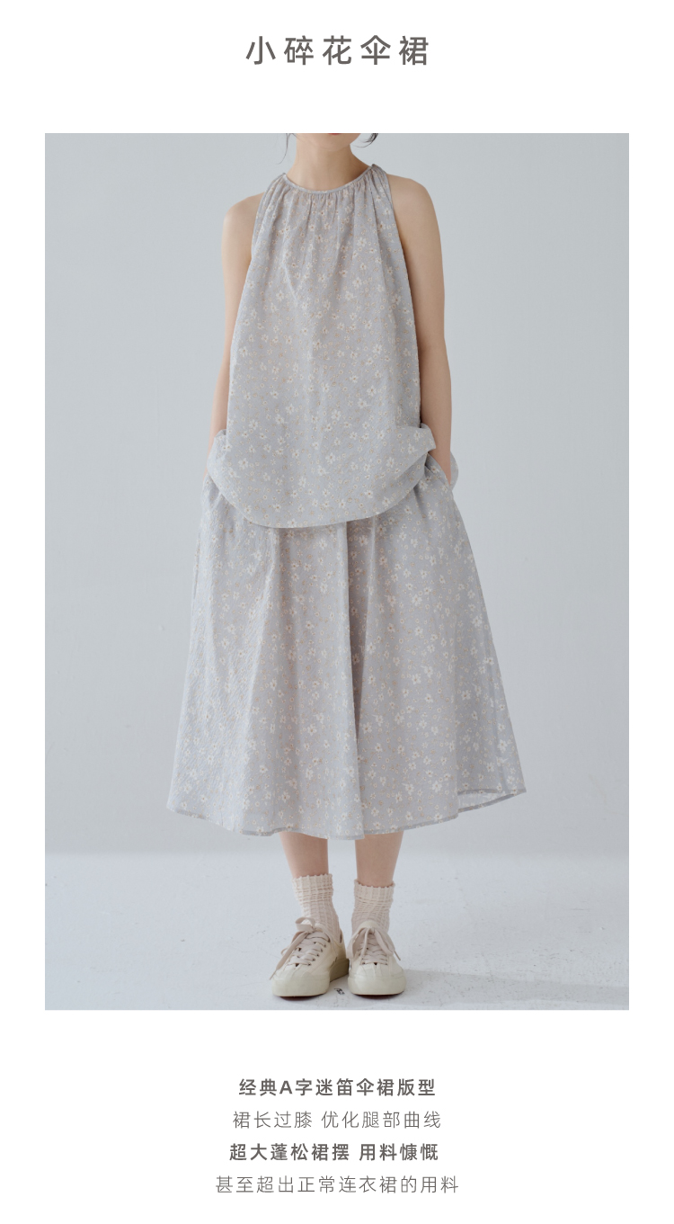 24SS 英伦花园进口纯棉小碎花A字上衣半裙套装