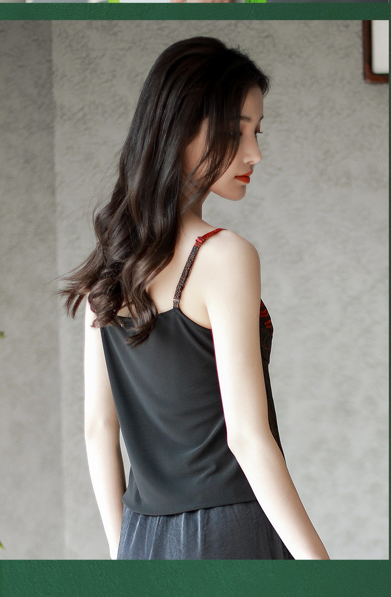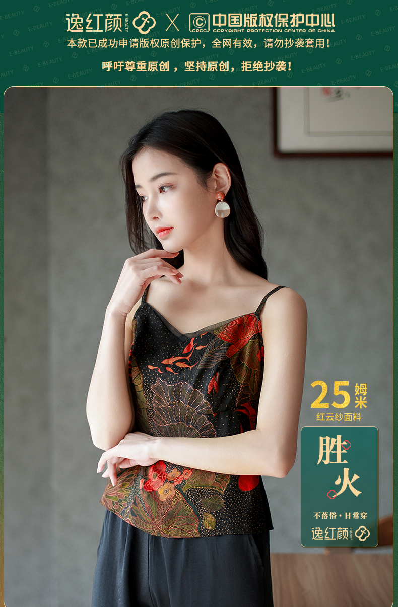 逸红颜吊带背心上衣2025新款锦鲤 胜火 别致仙气锁骨香云纱高级感
