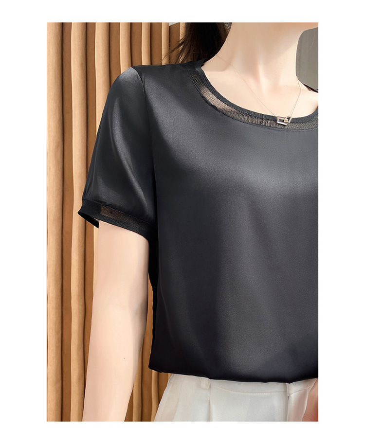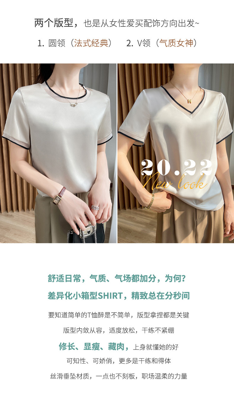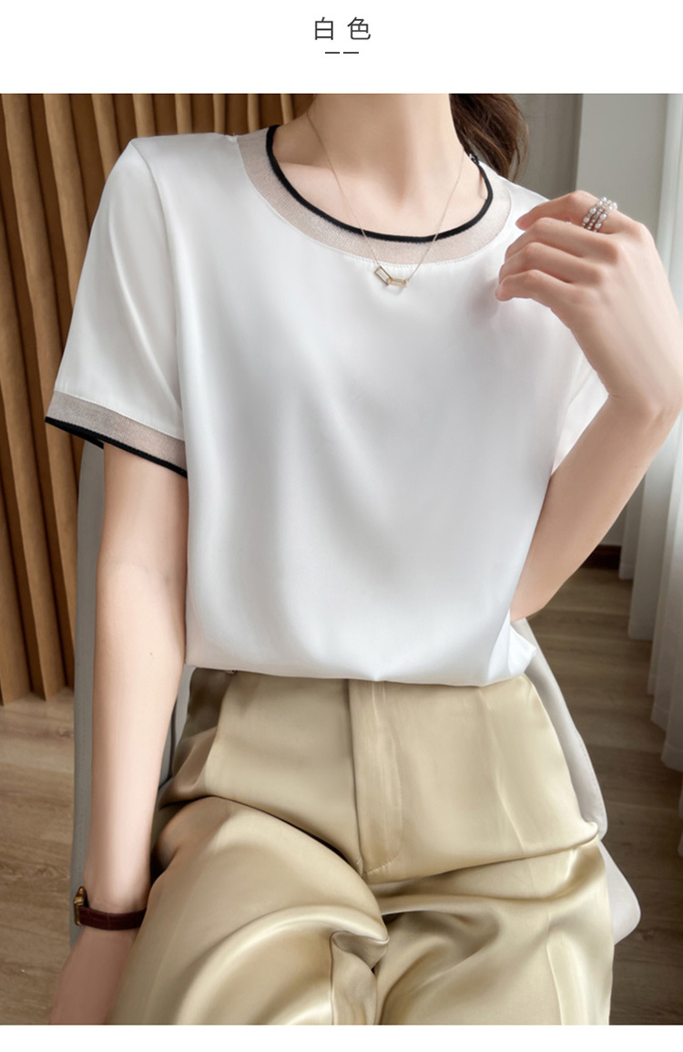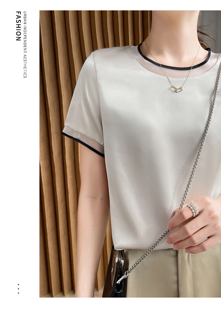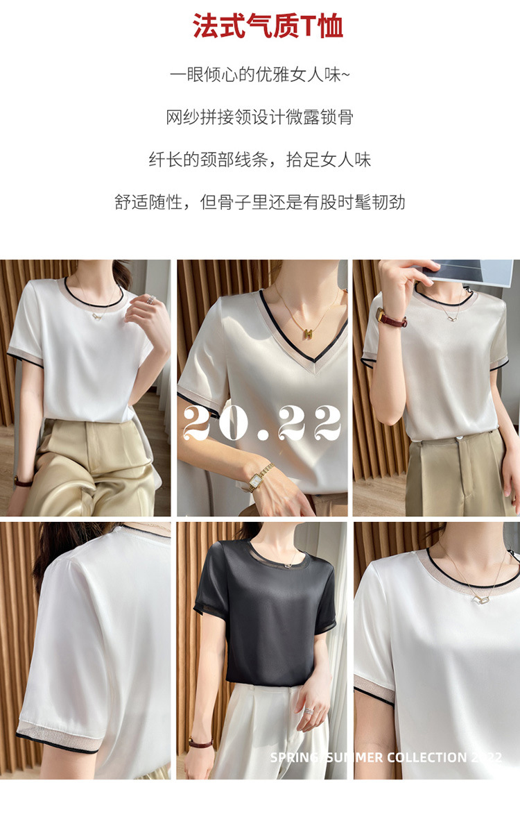 【凉快显气质 】绸缎网纱拼接短袖 仿真丝 独特光泽感 高级感爆棚 不勾丝 不起球