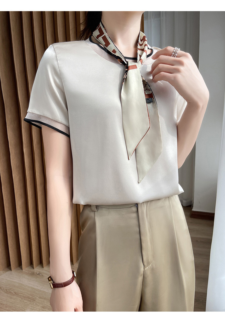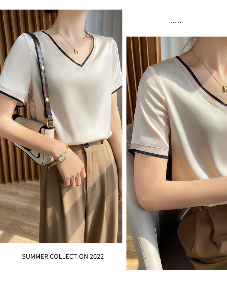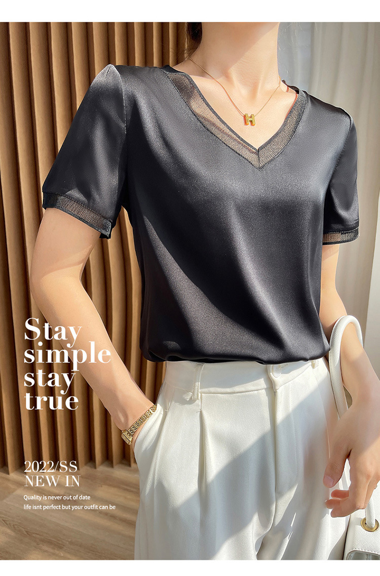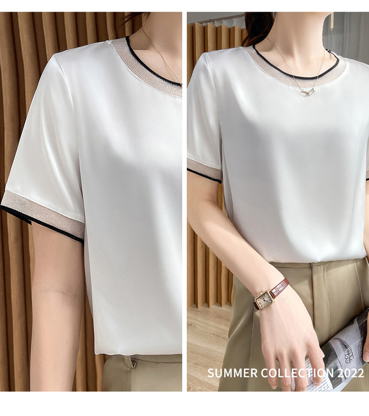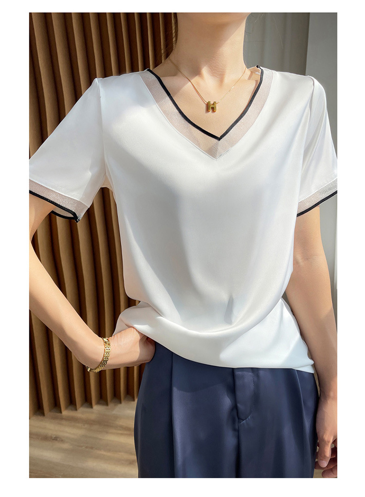 【凉快显气质 】绸缎网纱拼接短袖 仿真丝 独特光泽感 高级感爆棚 不勾丝 不起球