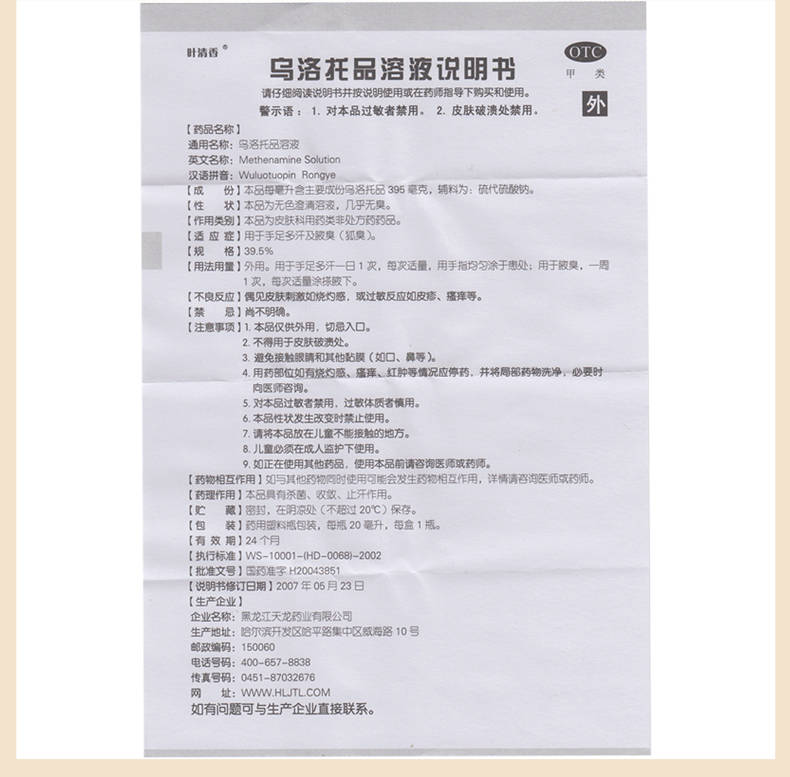 叶清香 乌洛托品溶液喷雾药20ml 正品男女士手足止汗去狐臭腋臭