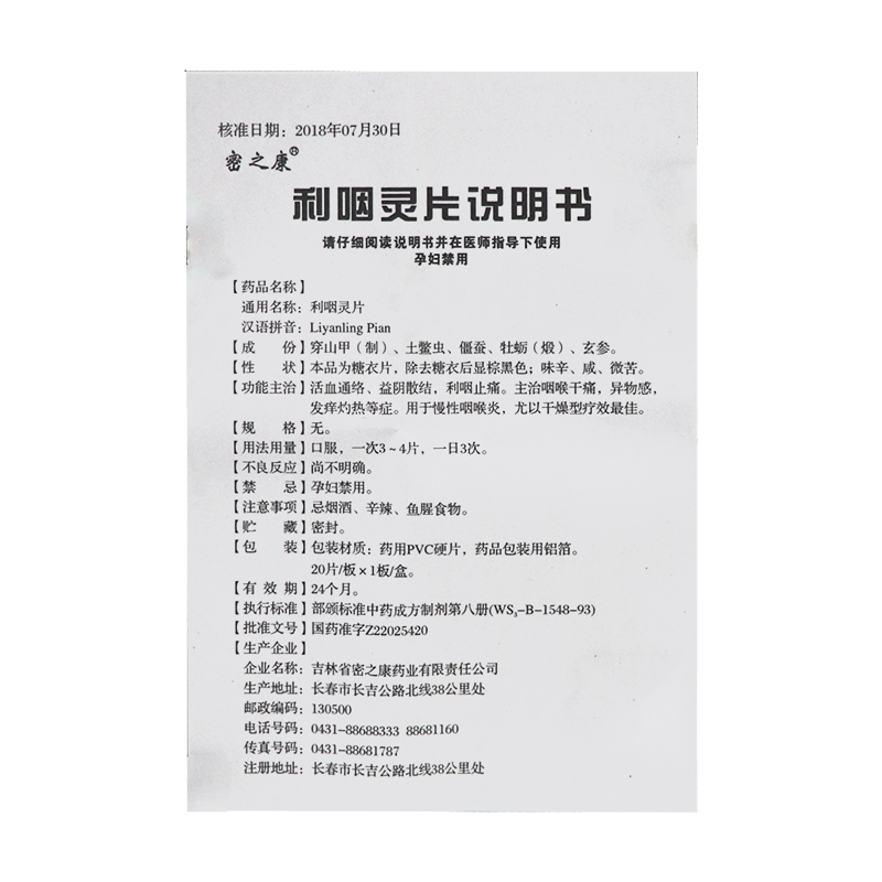 密之康 利咽灵片 20片/盒通络 益阴散结 利咽喉止痛 咽喉干痛 异物感 发痒灼热等症 用于慢性咽喉炎