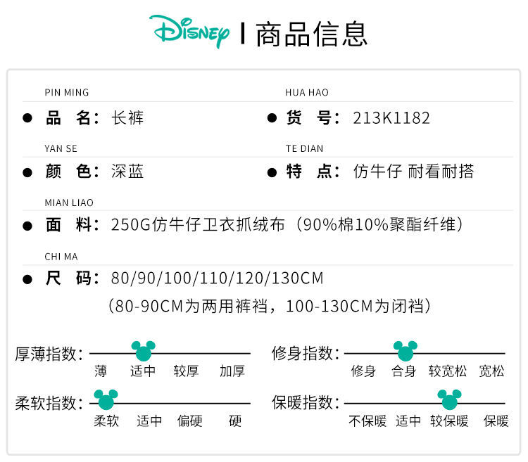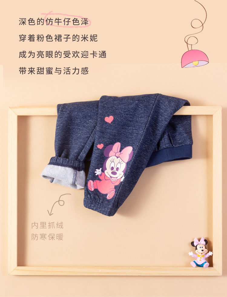 迪士尼童装女童加绒裤子秋冬外穿儿童休闲裤小童宝宝女加厚洋气213K1182