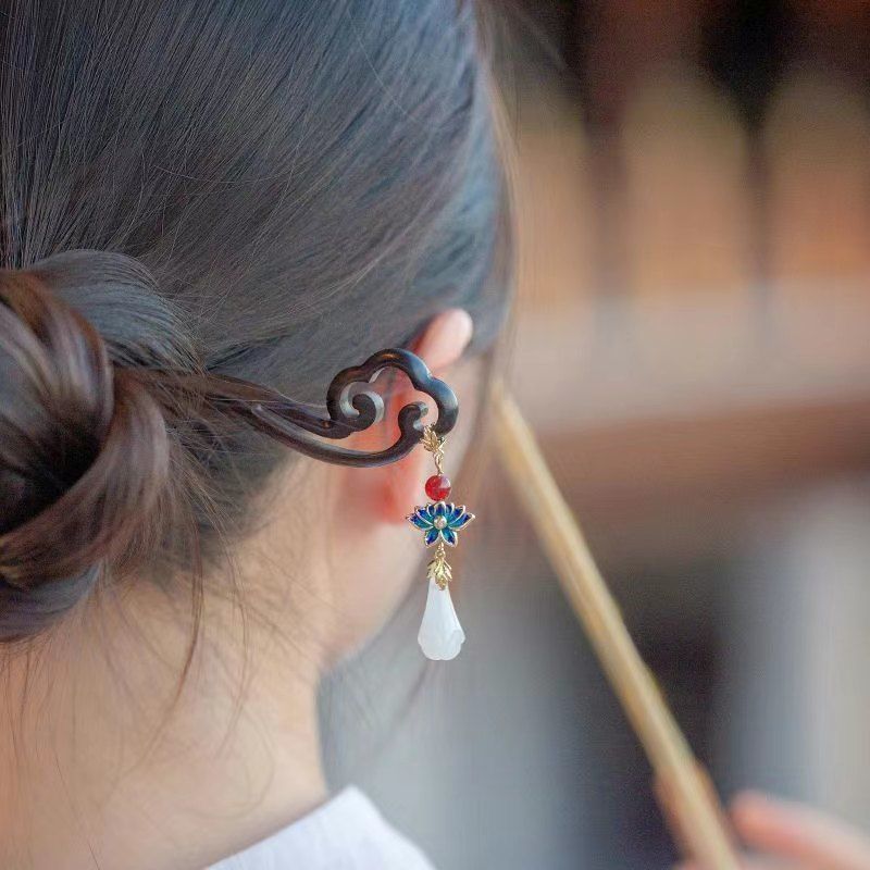 盘发木簪古风简约现代日常黑檀木发簪步摇挽发发钗木质发簪