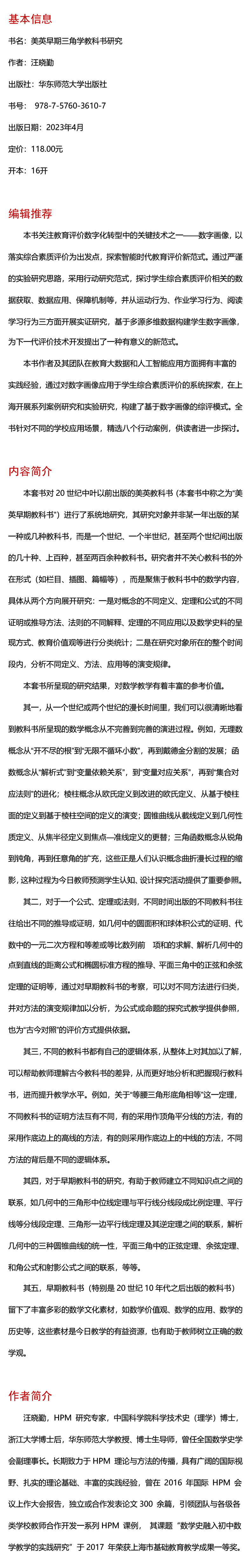 美英早期三角学教科书研究 中学数学教材研究 HPM教学研究 汪晓勤