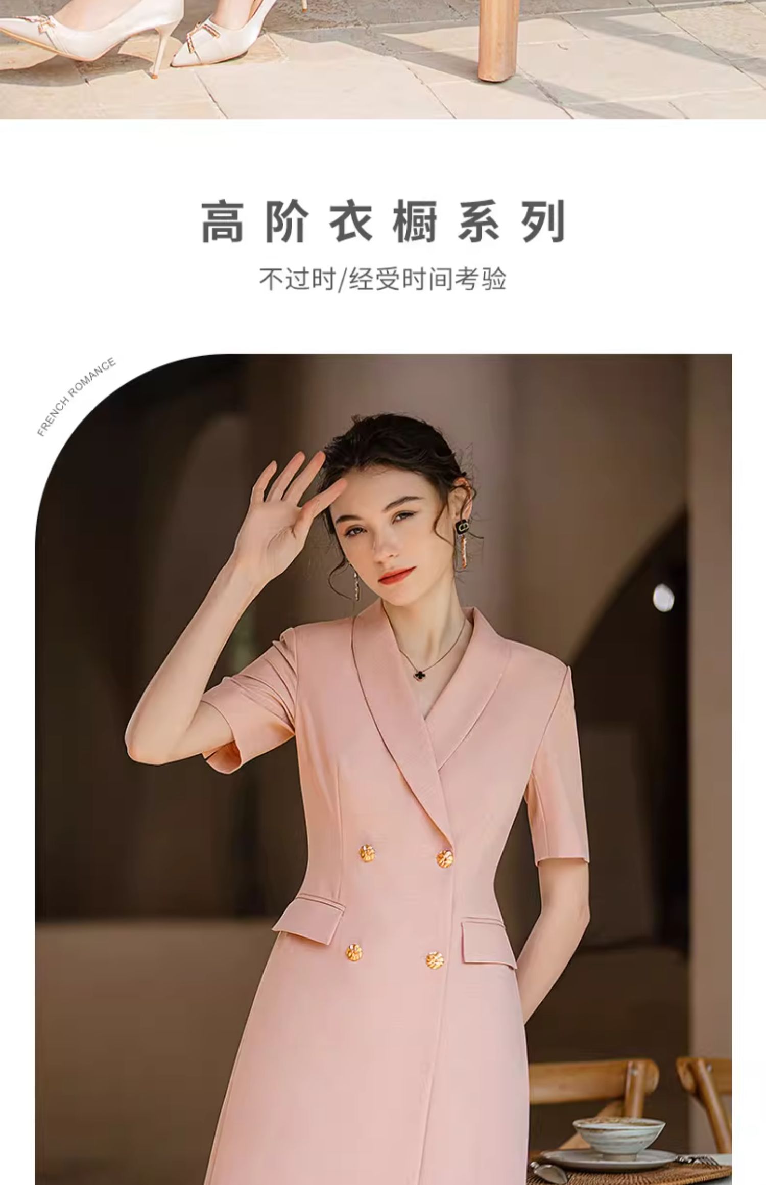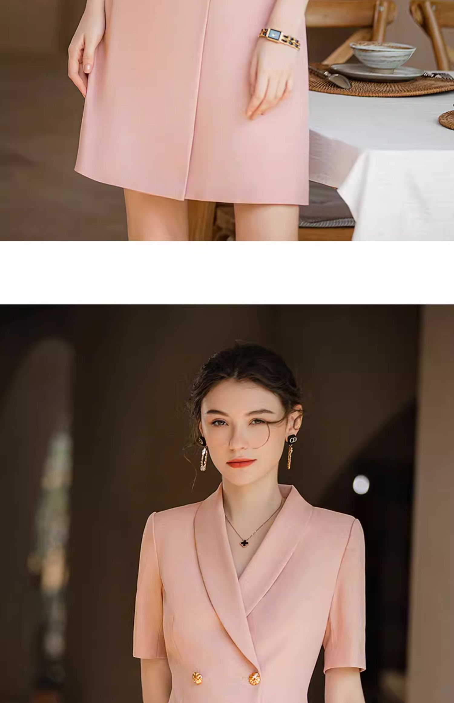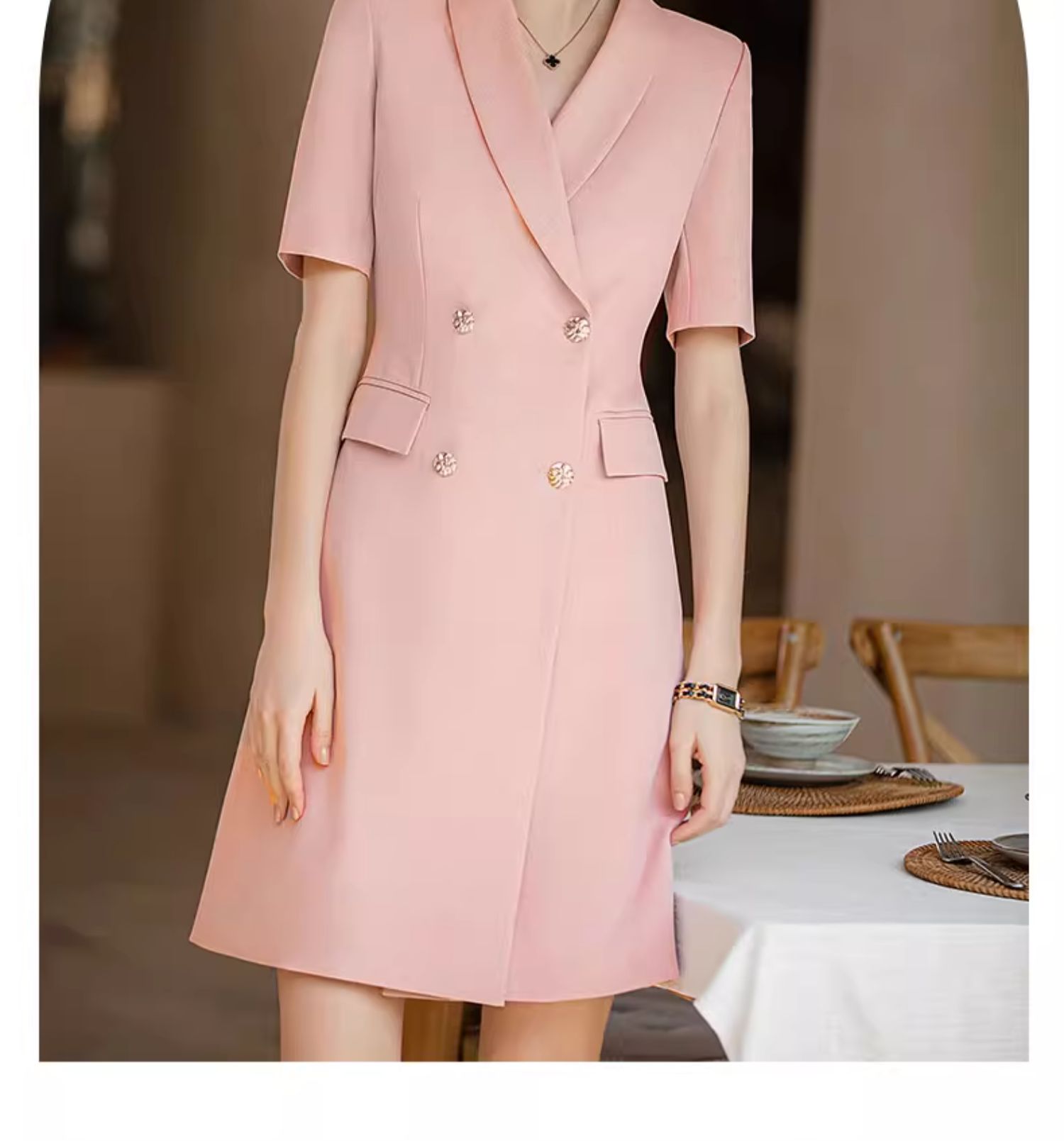AD夏季粉色职业连衣裙女气质通勤OL西装裙百搭双排扣主持人正装裙 商品图0
