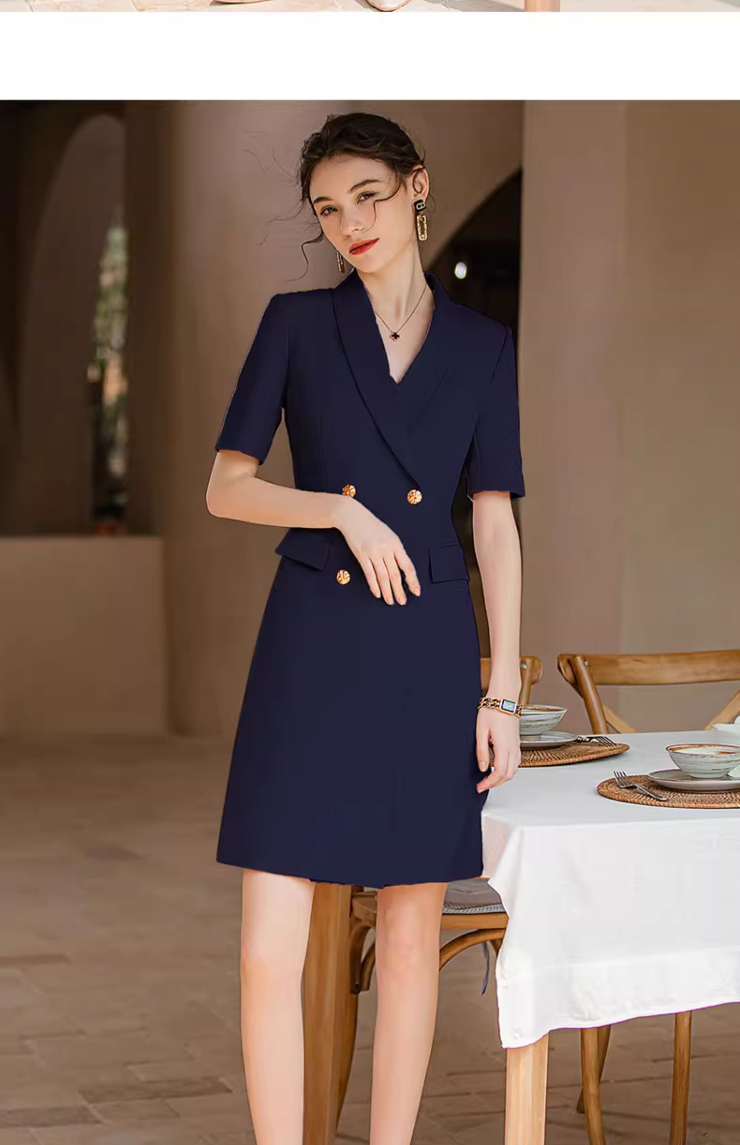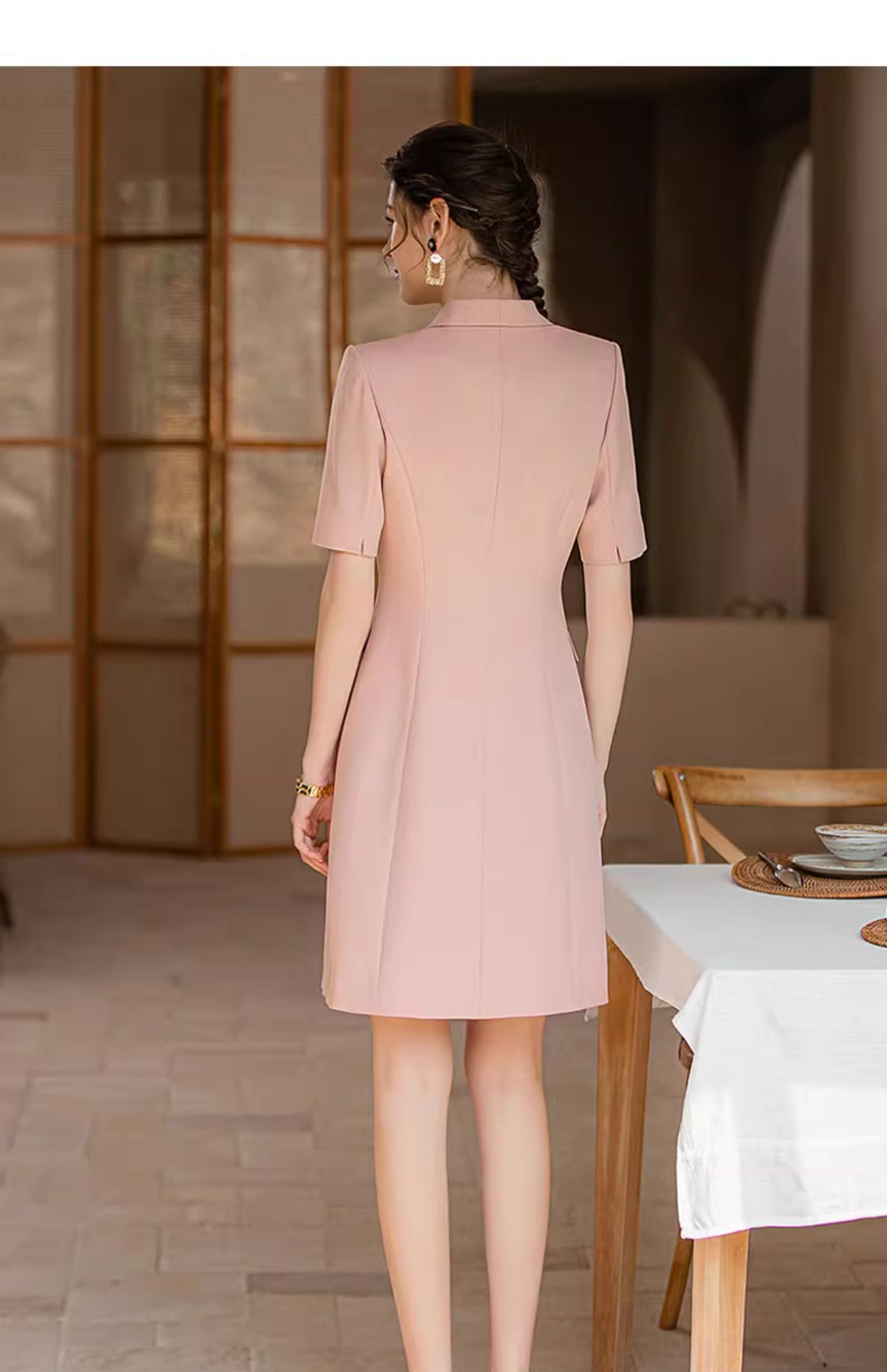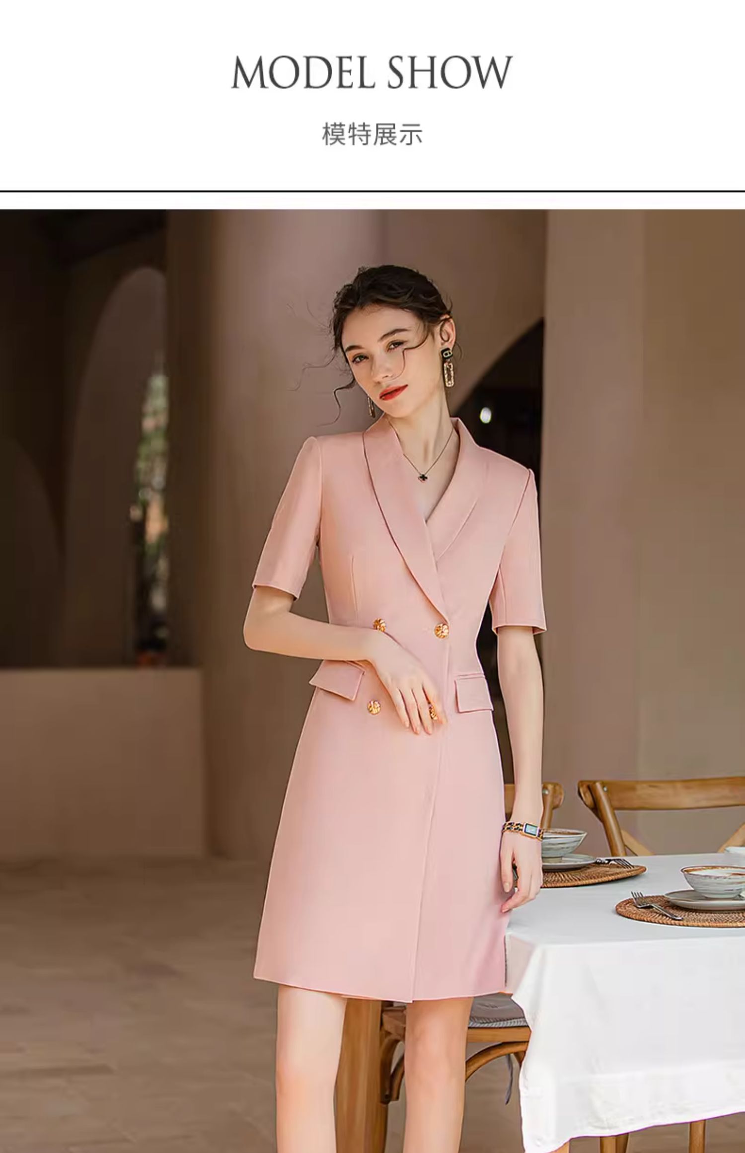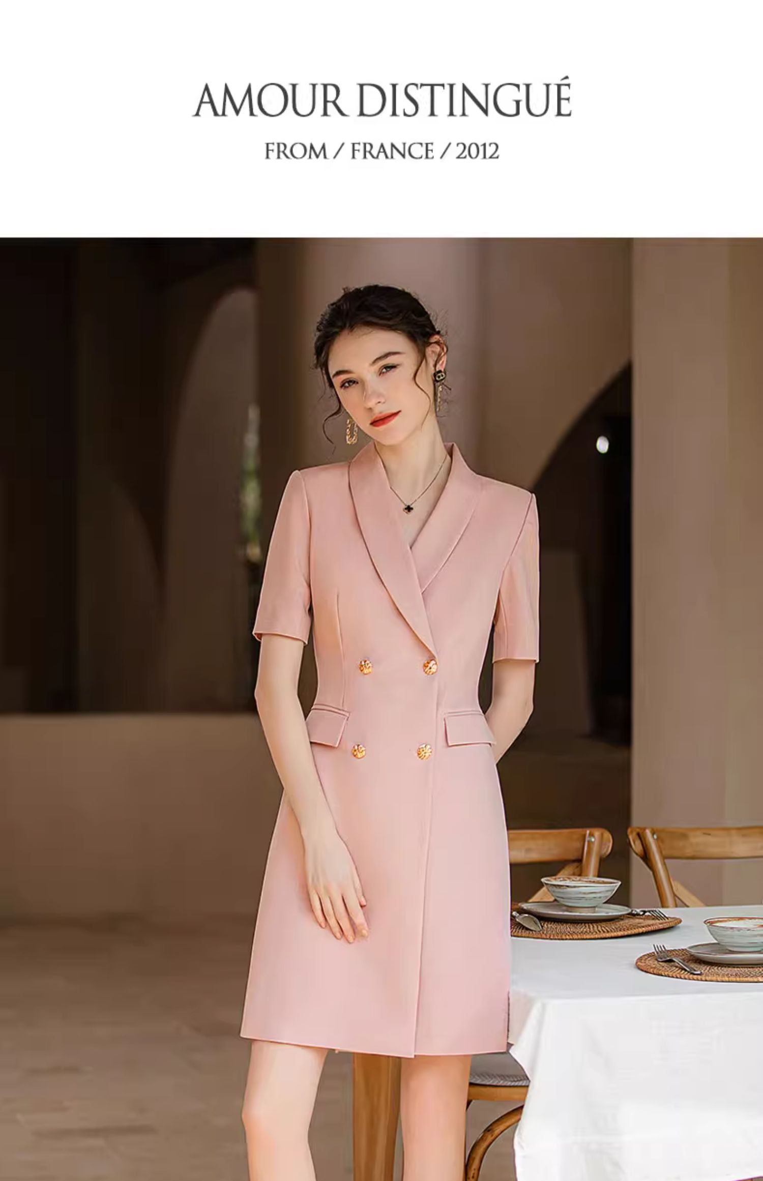 AD夏季粉色职业连衣裙女气质通勤OL西装裙百搭双排扣主持人正装裙 商品图0