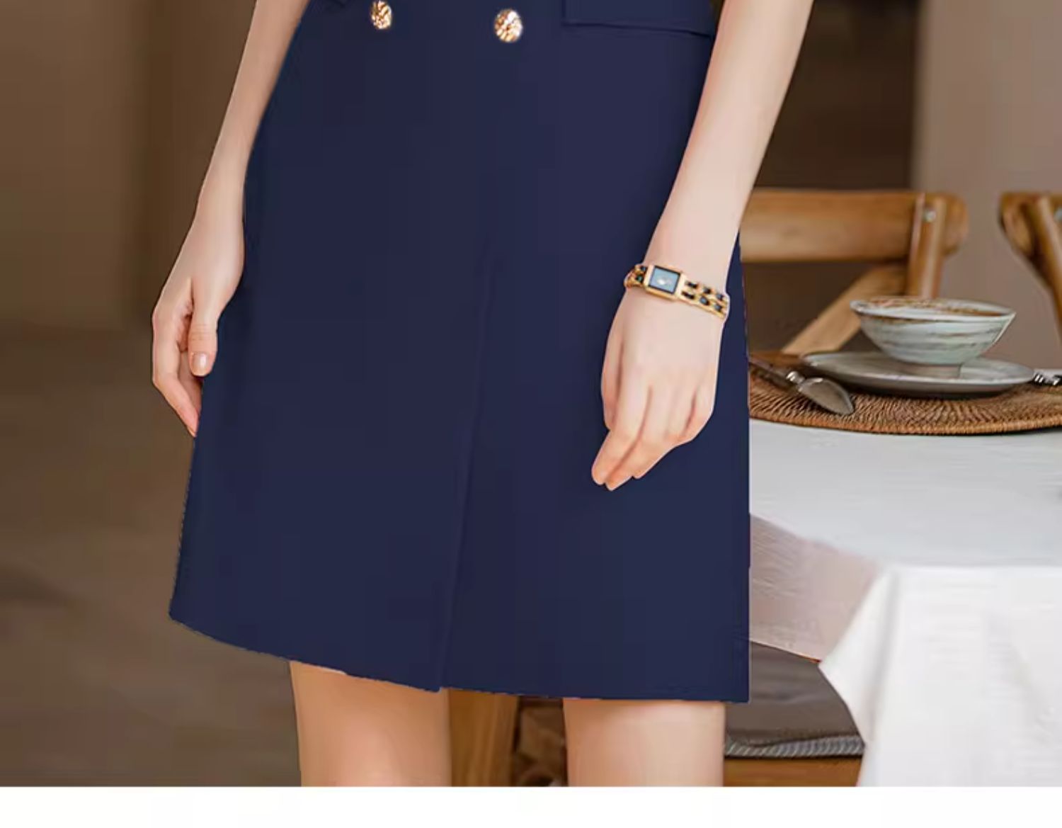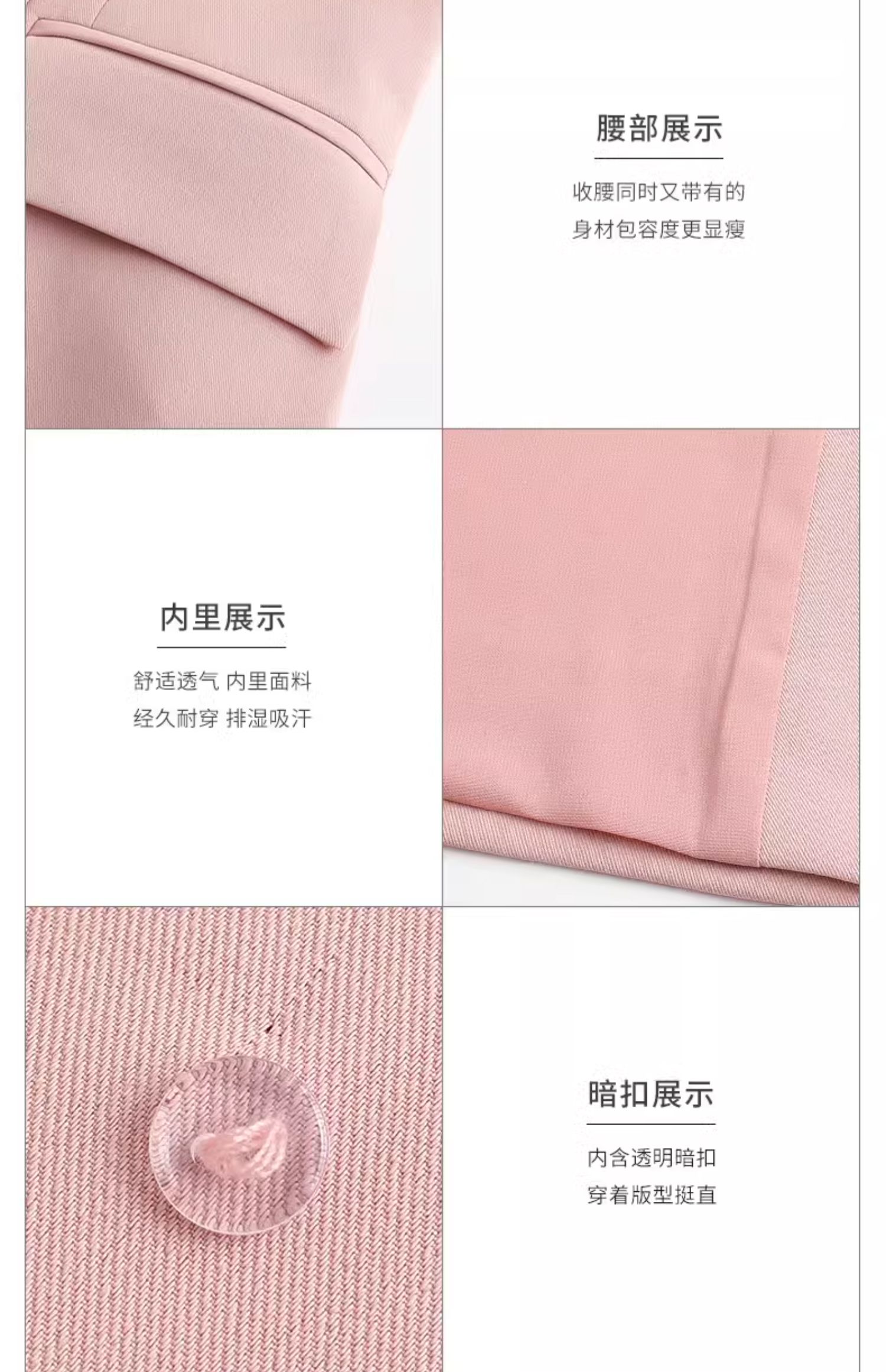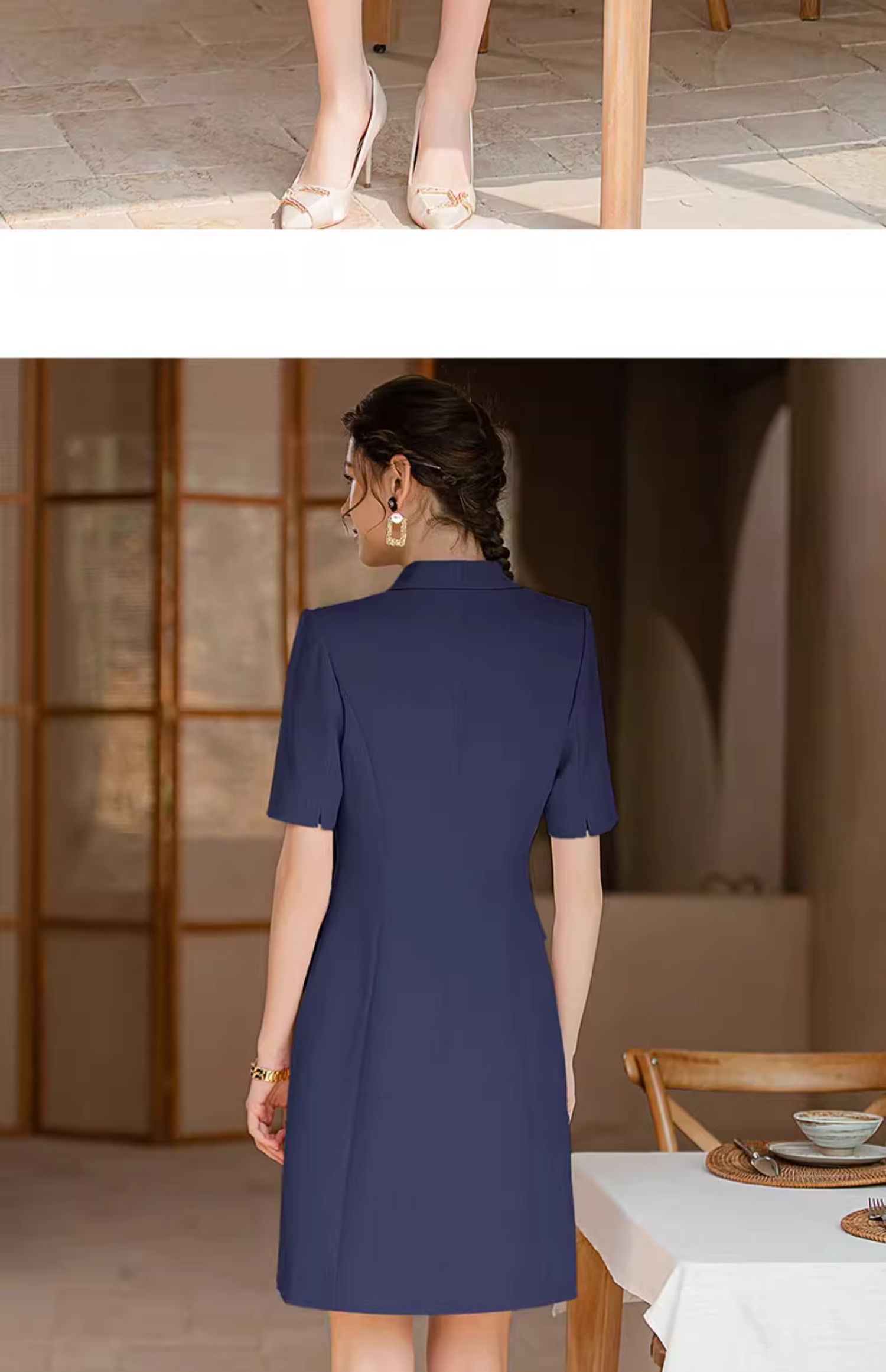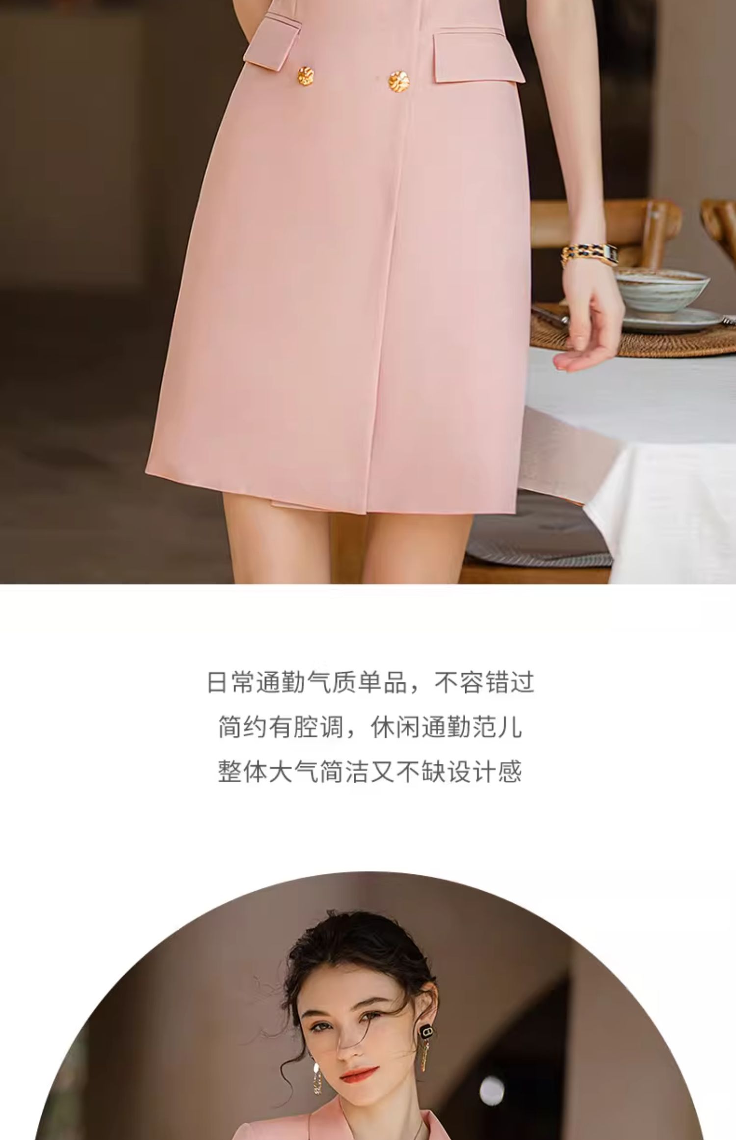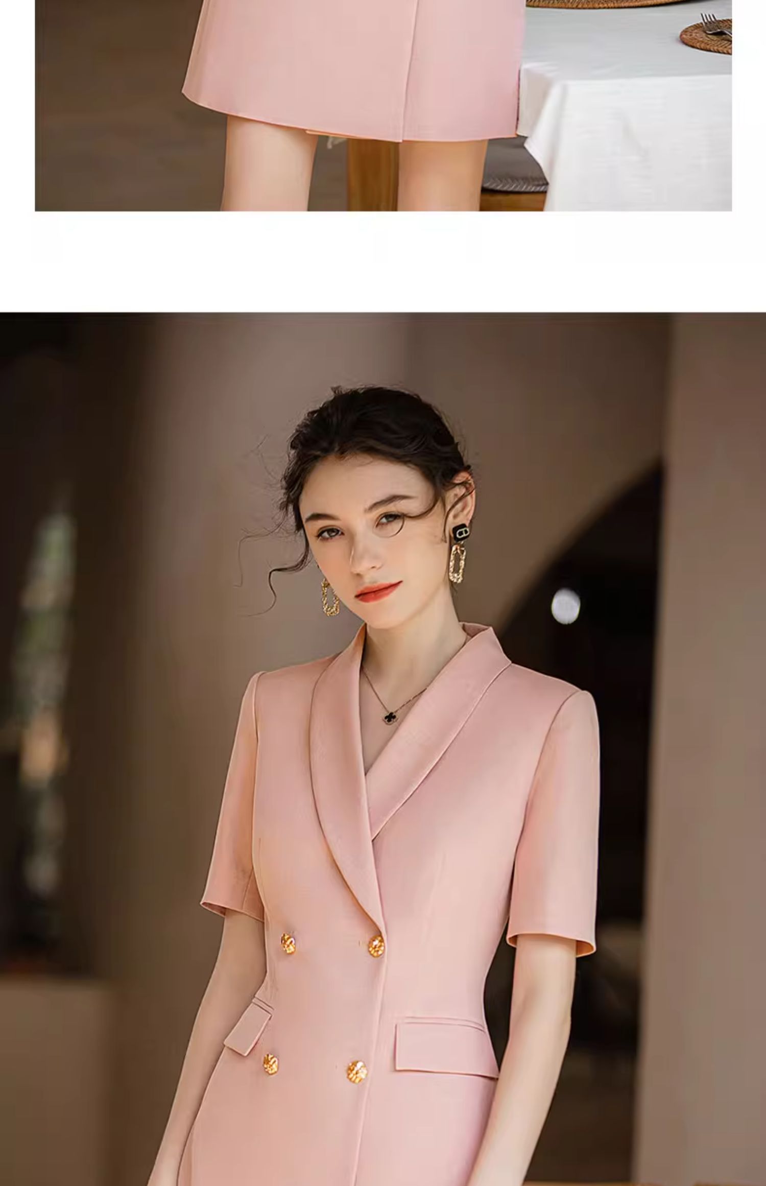 AD夏季粉色职业连衣裙女气质通勤OL西装裙百搭双排扣主持人正装裙 商品图4