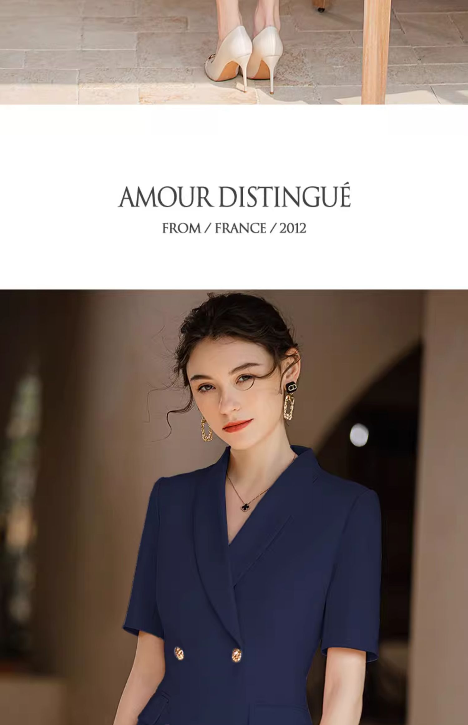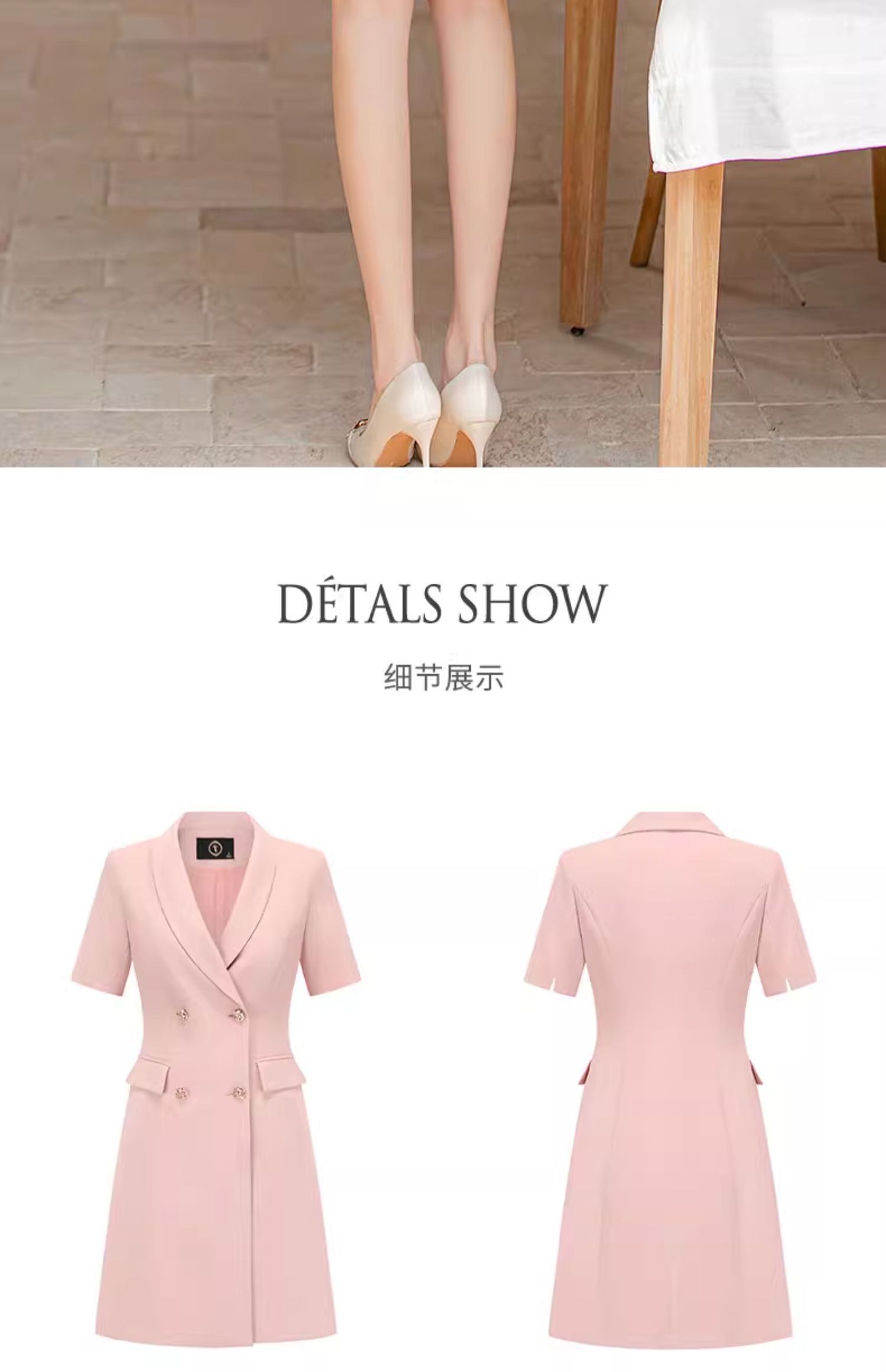 AD夏季粉色职业连衣裙女气质通勤OL西装裙百搭双排扣主持人正装裙 商品图2