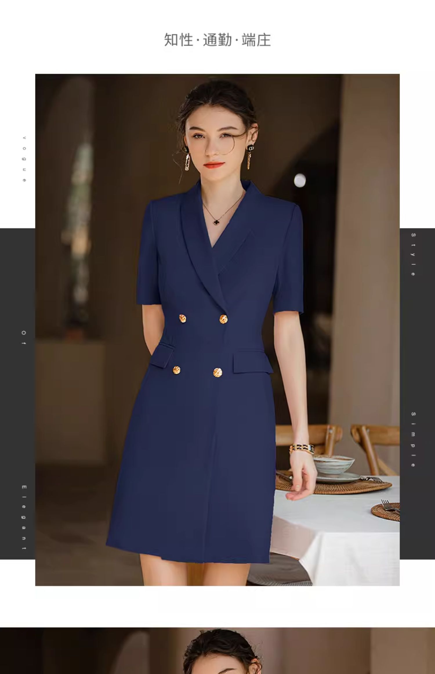 AD夏季粉色职业连衣裙女气质通勤OL西装裙百搭双排扣主持人正装裙 商品图3